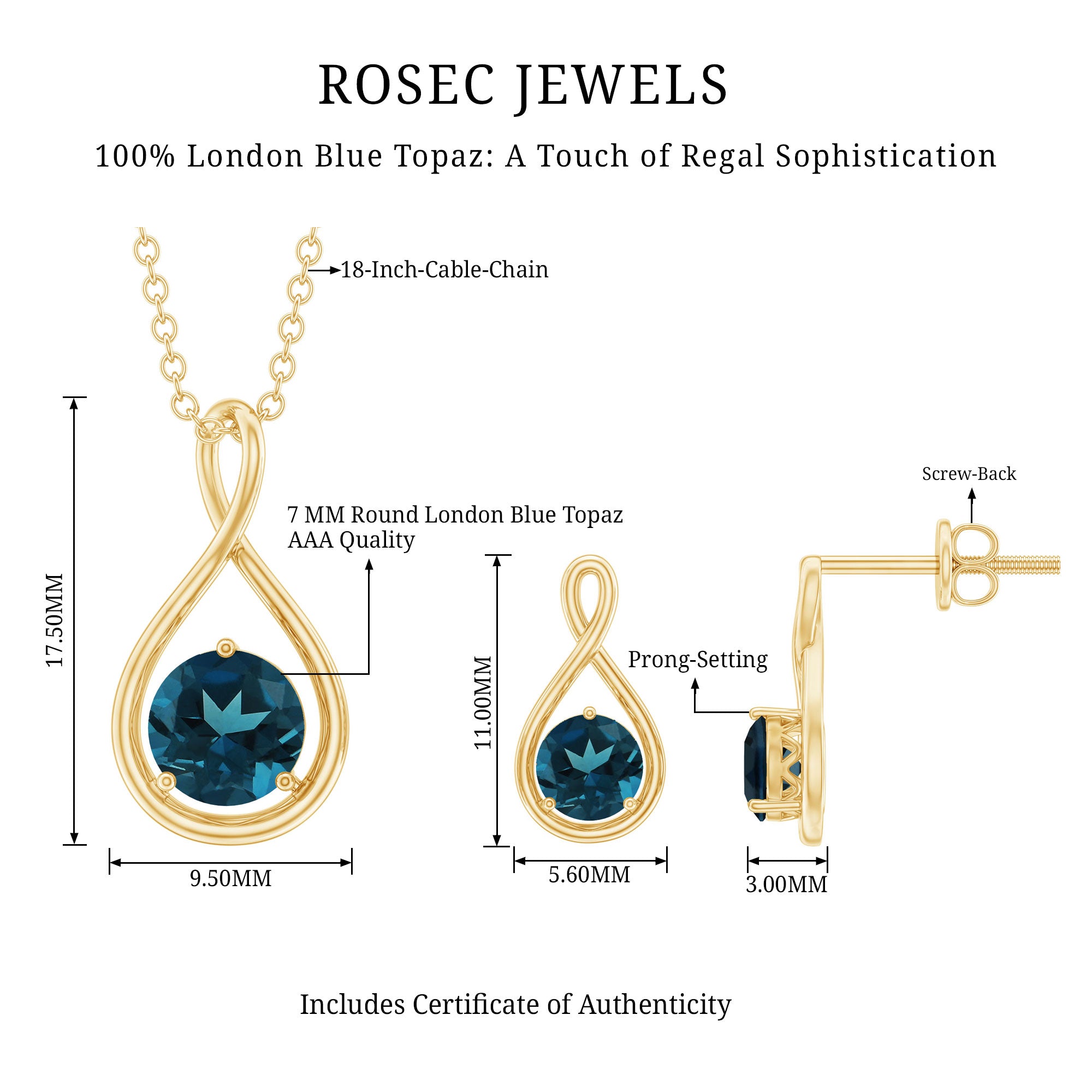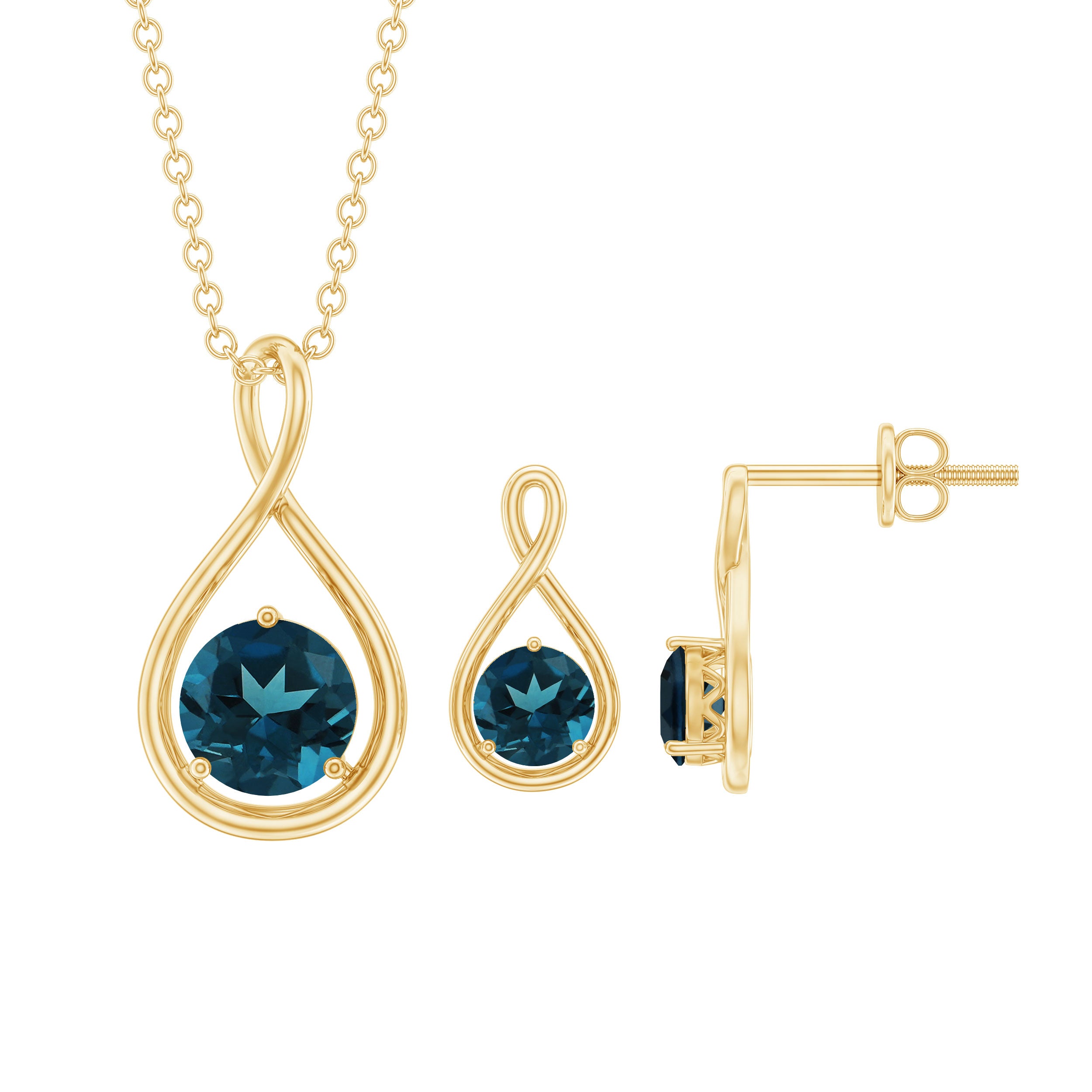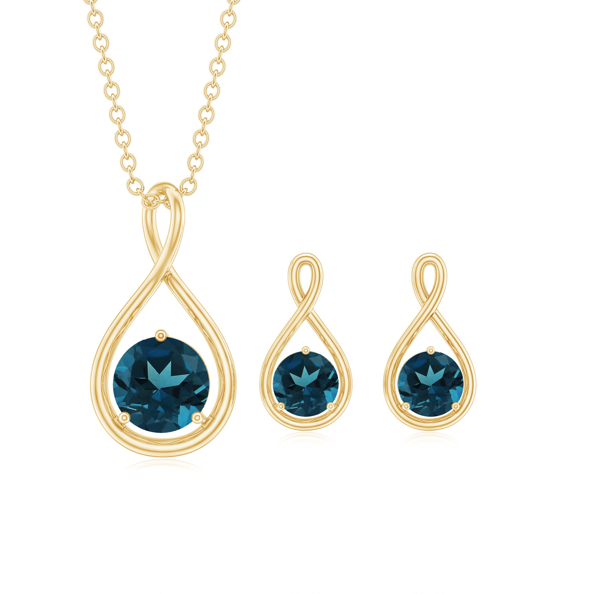 London Blue Topaz Solitaire Pendant and Earring Set with Infinity Design