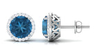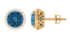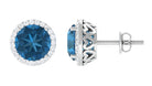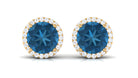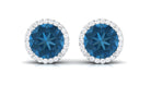 London Blue Topaz Stud Earrings with Diamond Halo