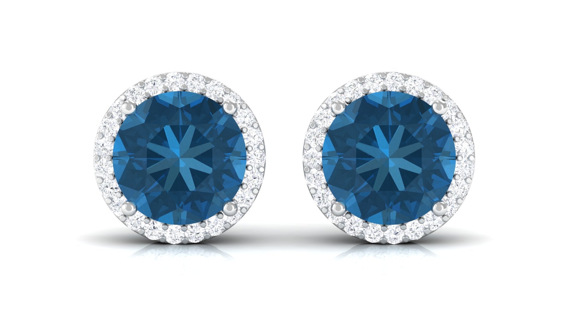 London Blue Topaz Stud Earrings with Diamond Halo