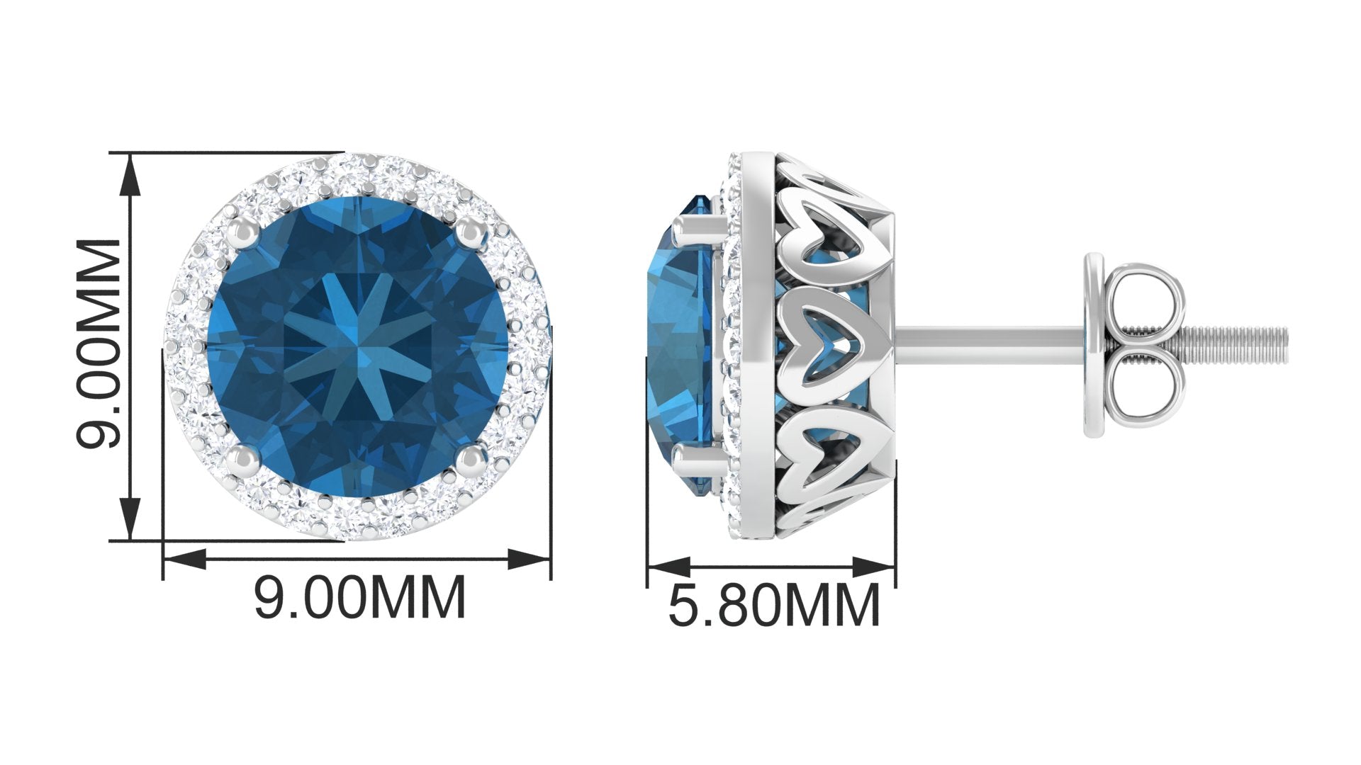 Create a unique style statement with these stud earrings adorned with round-shaped london blue topaz set in a prong setting while the diamond shimmers around it. From dinner dates to casual day outs, these diamond earrings have been designed to add an instant touch of glamour to any outfit. Crafted with proper care and precision, secured with screw back closures to keep them intact in the earlobe.