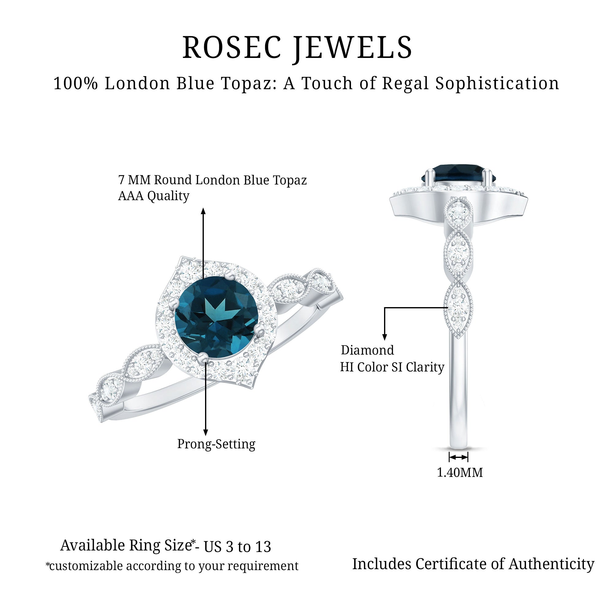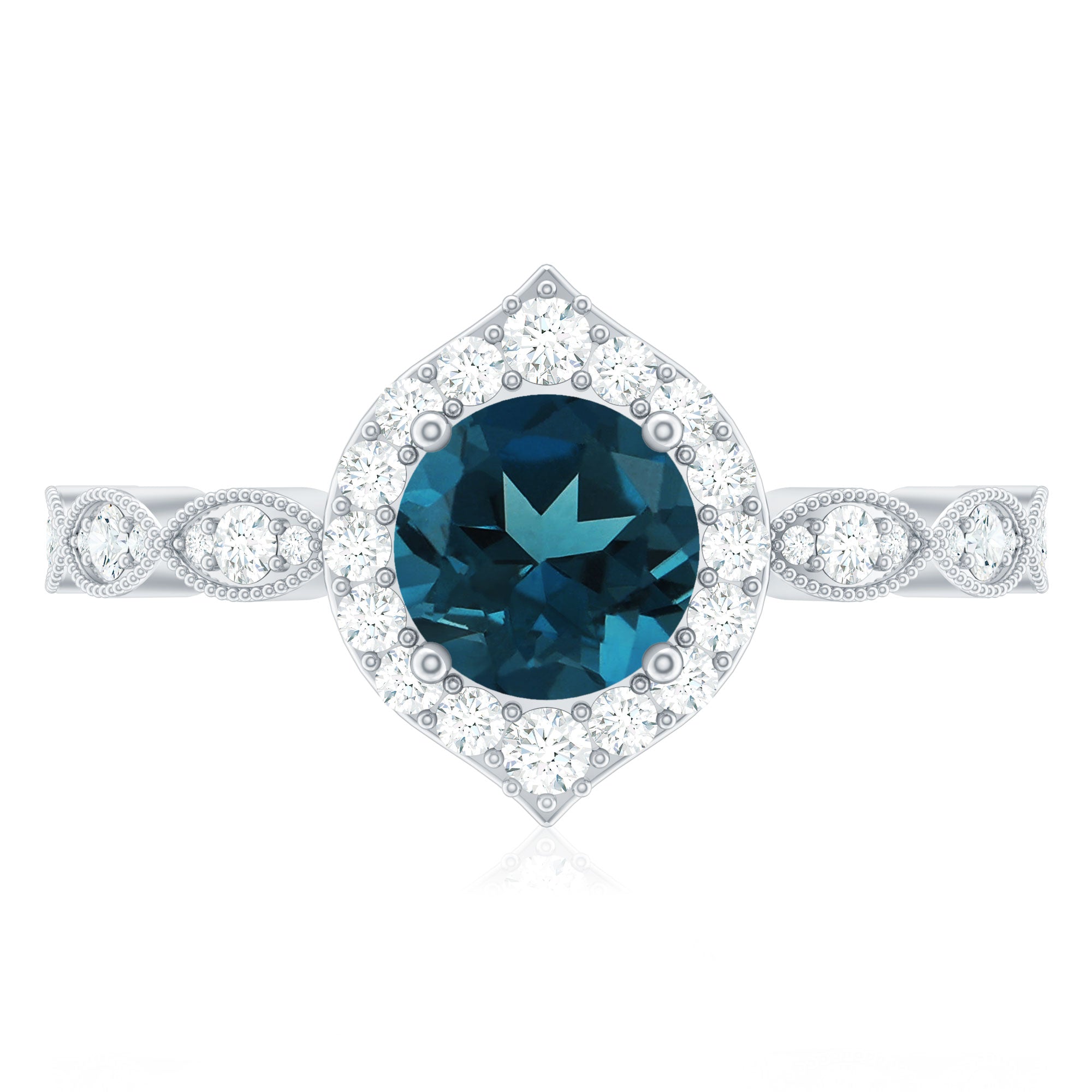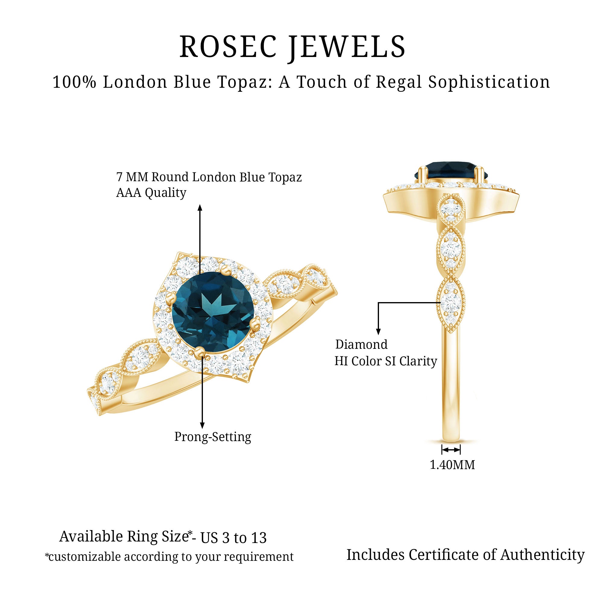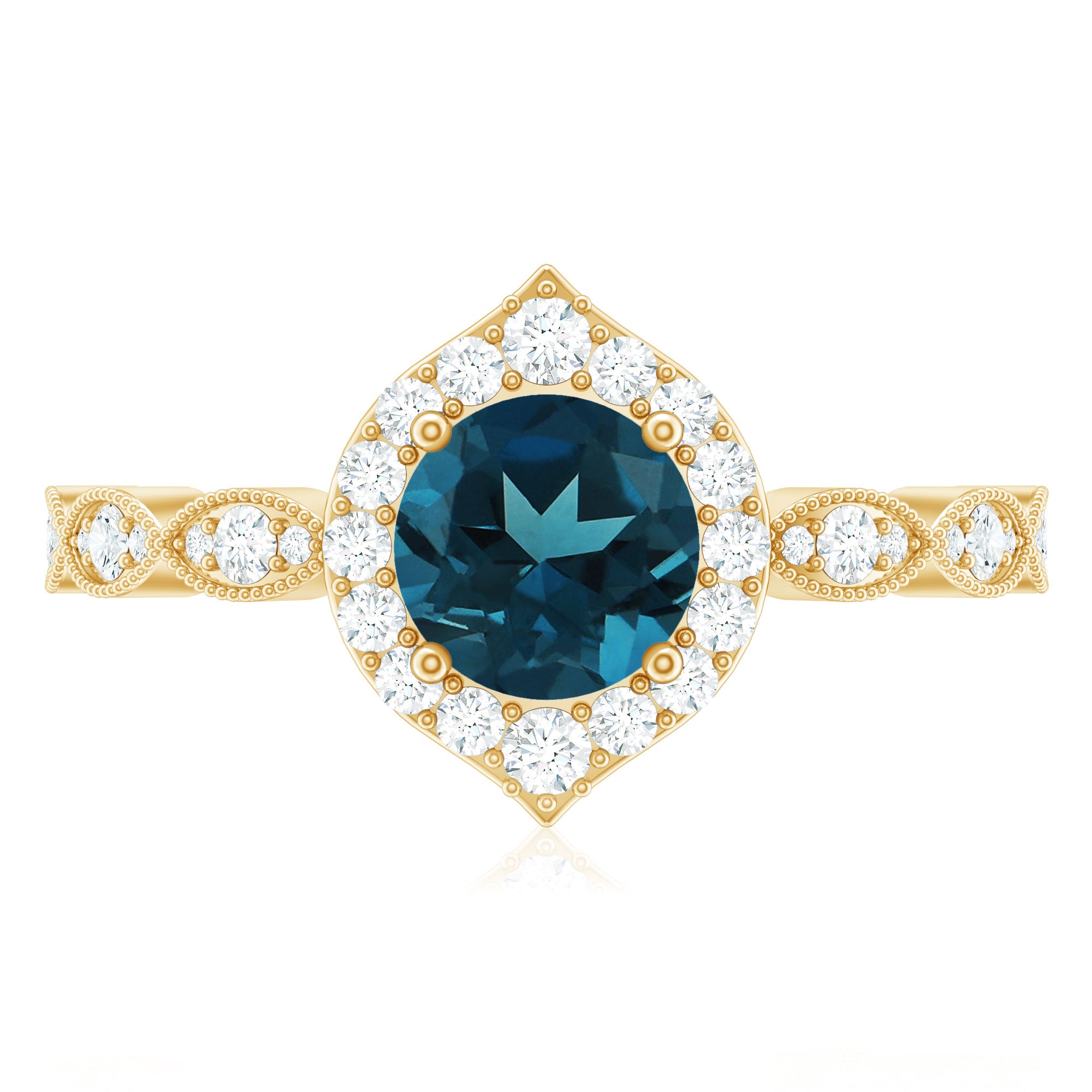 London Blue Topaz Vintage Halo Engagement Ring with Diamond