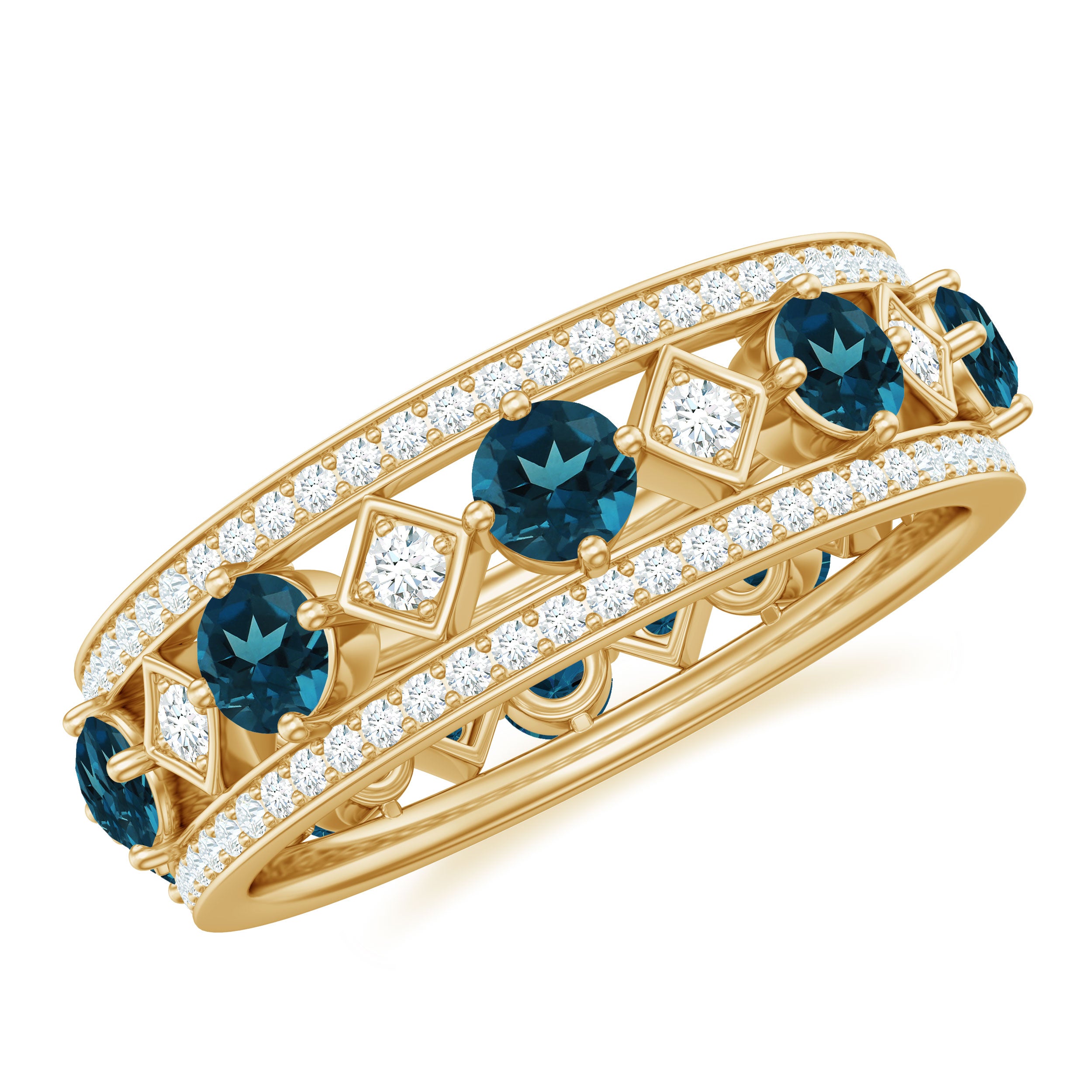 London Blue Topaz Vintage Inspired Eternity Band with Diamond