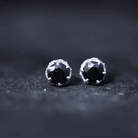 Lotus Basket Set Black Spinel Solitaire Stud Earrings with Diamond Accent