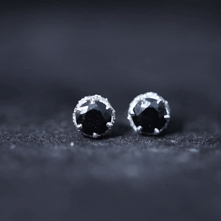 This Classic Stud Earring is embellished with Round Shape Black Spinel set as Solitaire and Diamond in Decorative Pattern.