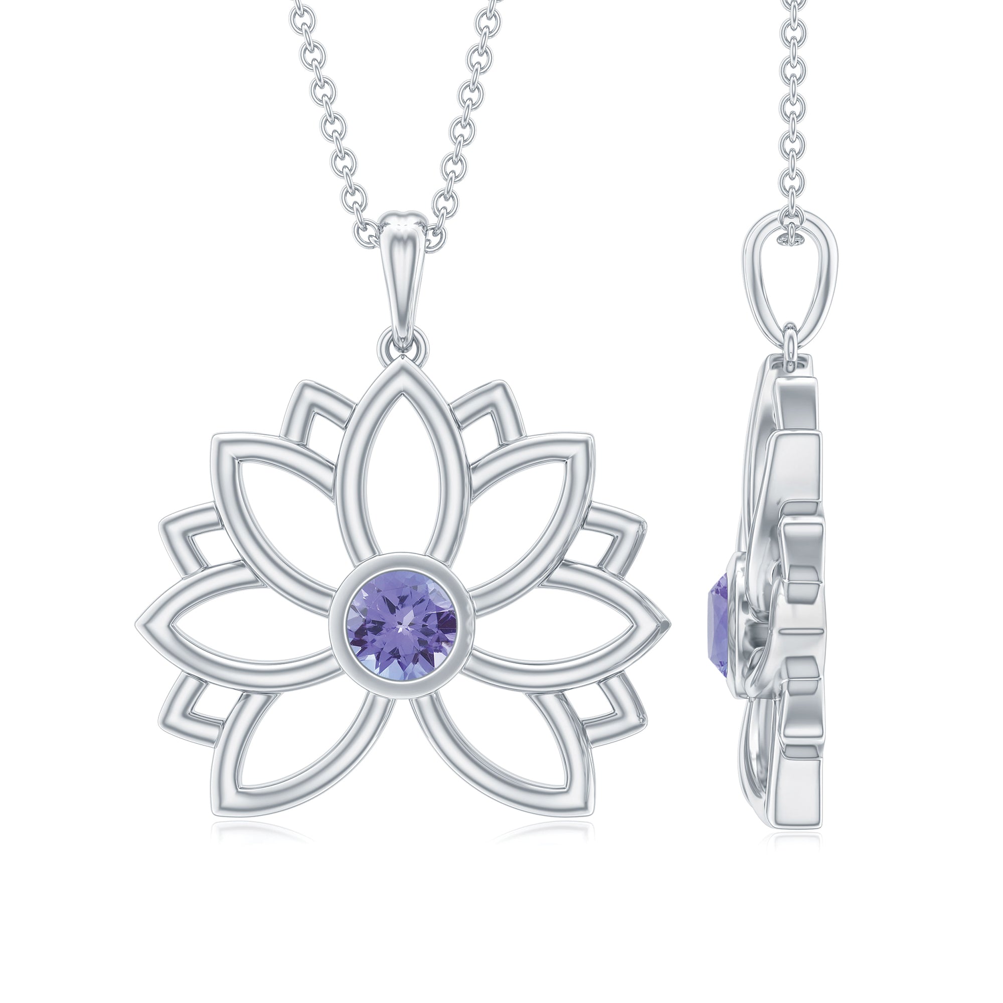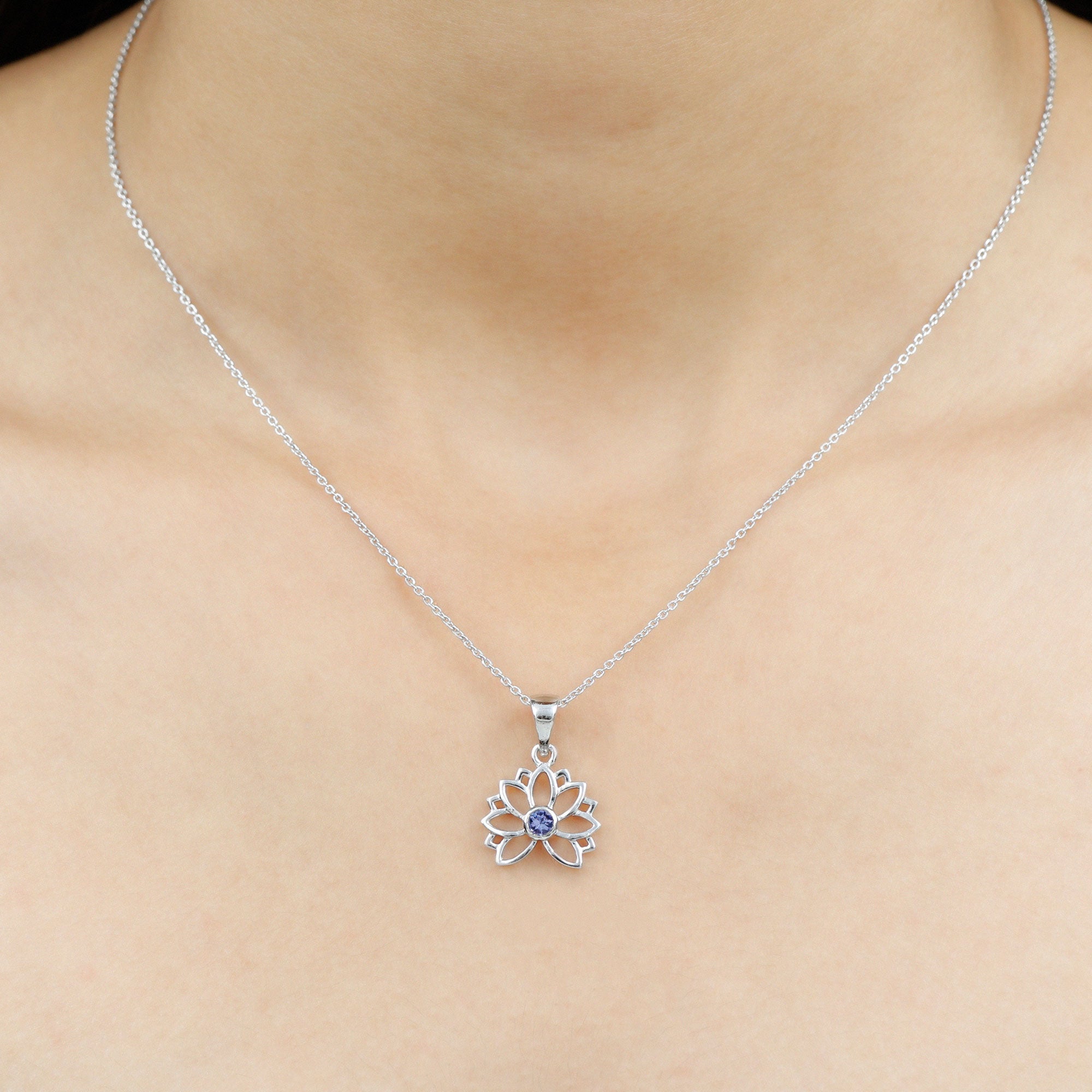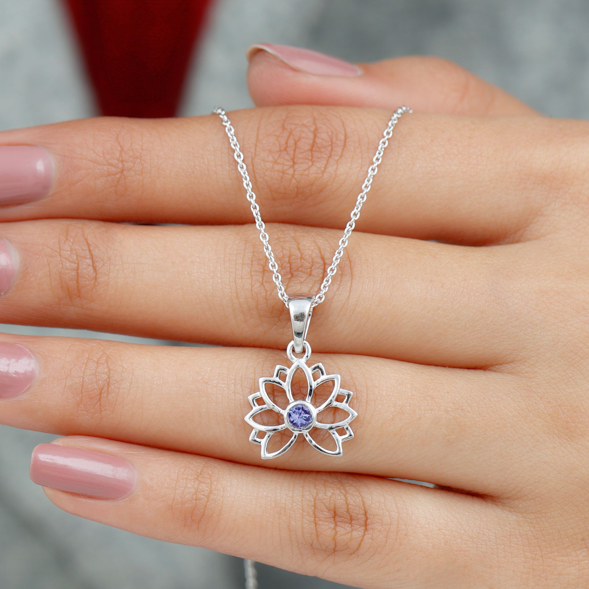 Lotus Flower Pendant with 3 MM Round Cut Tanzanite
