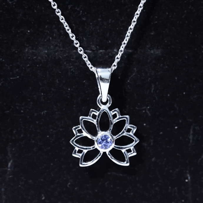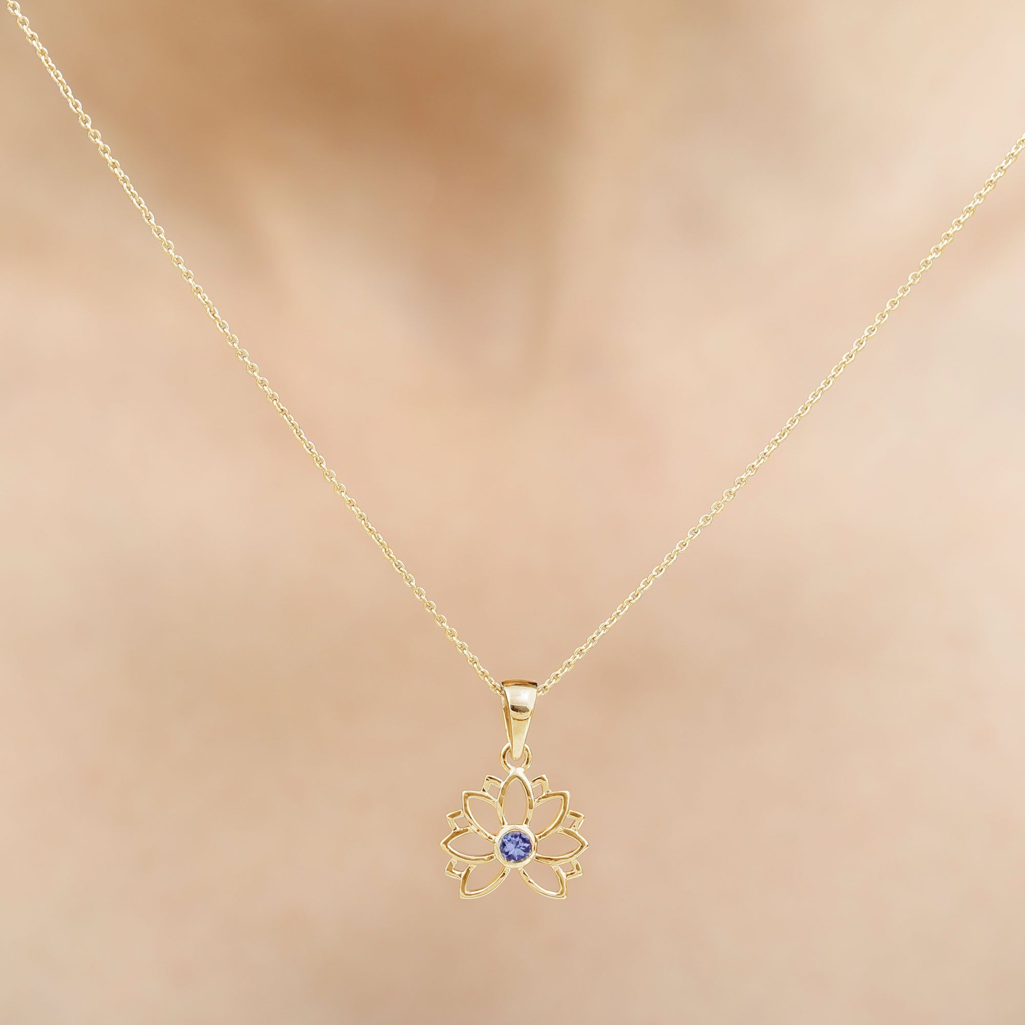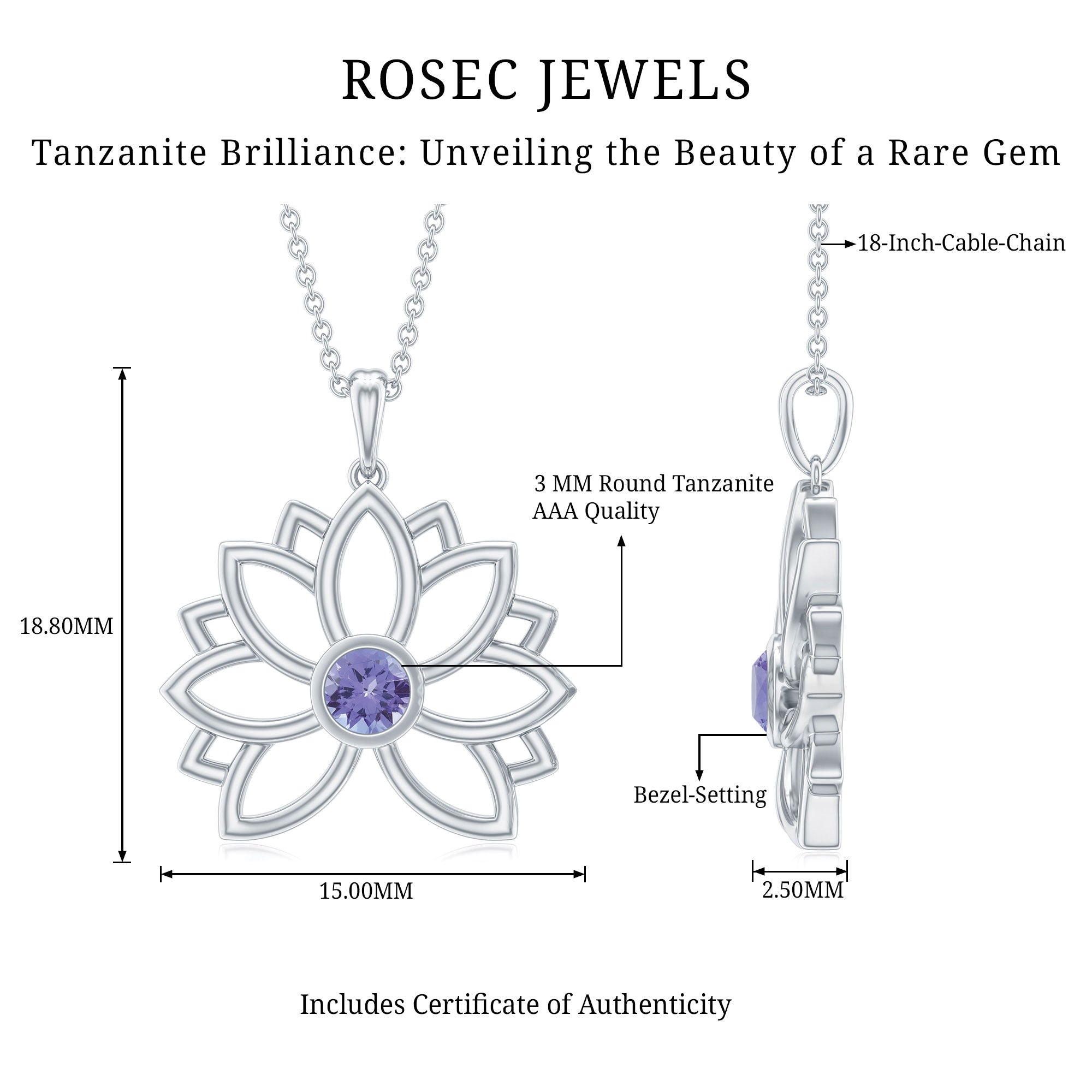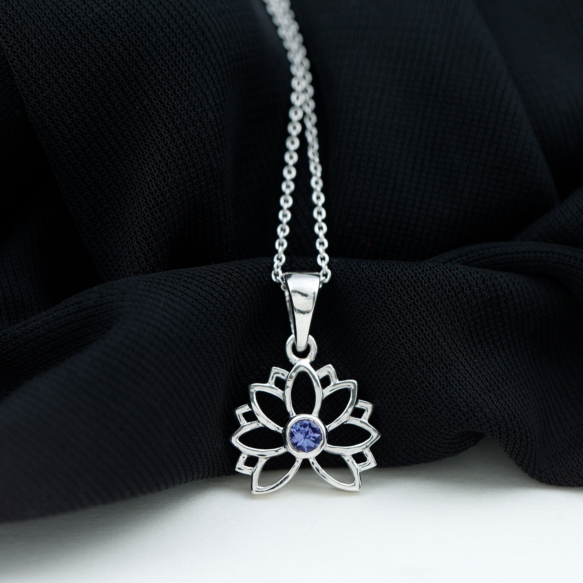 Lotus Flower Pendant with 3 MM Round Cut Tanzanite