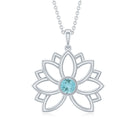 Lotus Flower Pendant with Bezel Set Sky Blue Topaz Solitaire