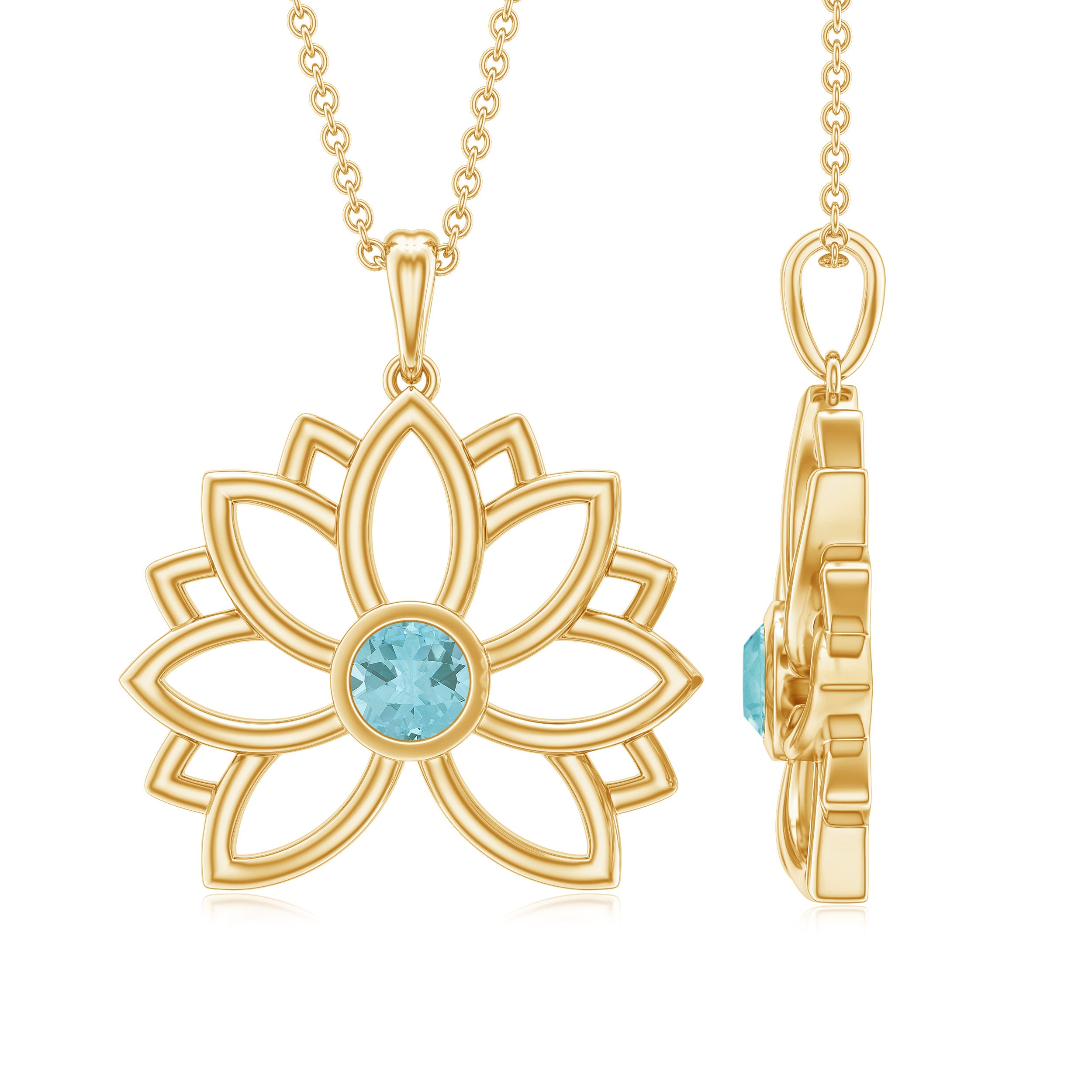 As unique as you this Flower Pendant inspired by the flower Lotus, with a Bezel Set Sky Blue Topaz Solitaire in center this Lotus Flower Pendant will add to your style and make you the talk of the town.