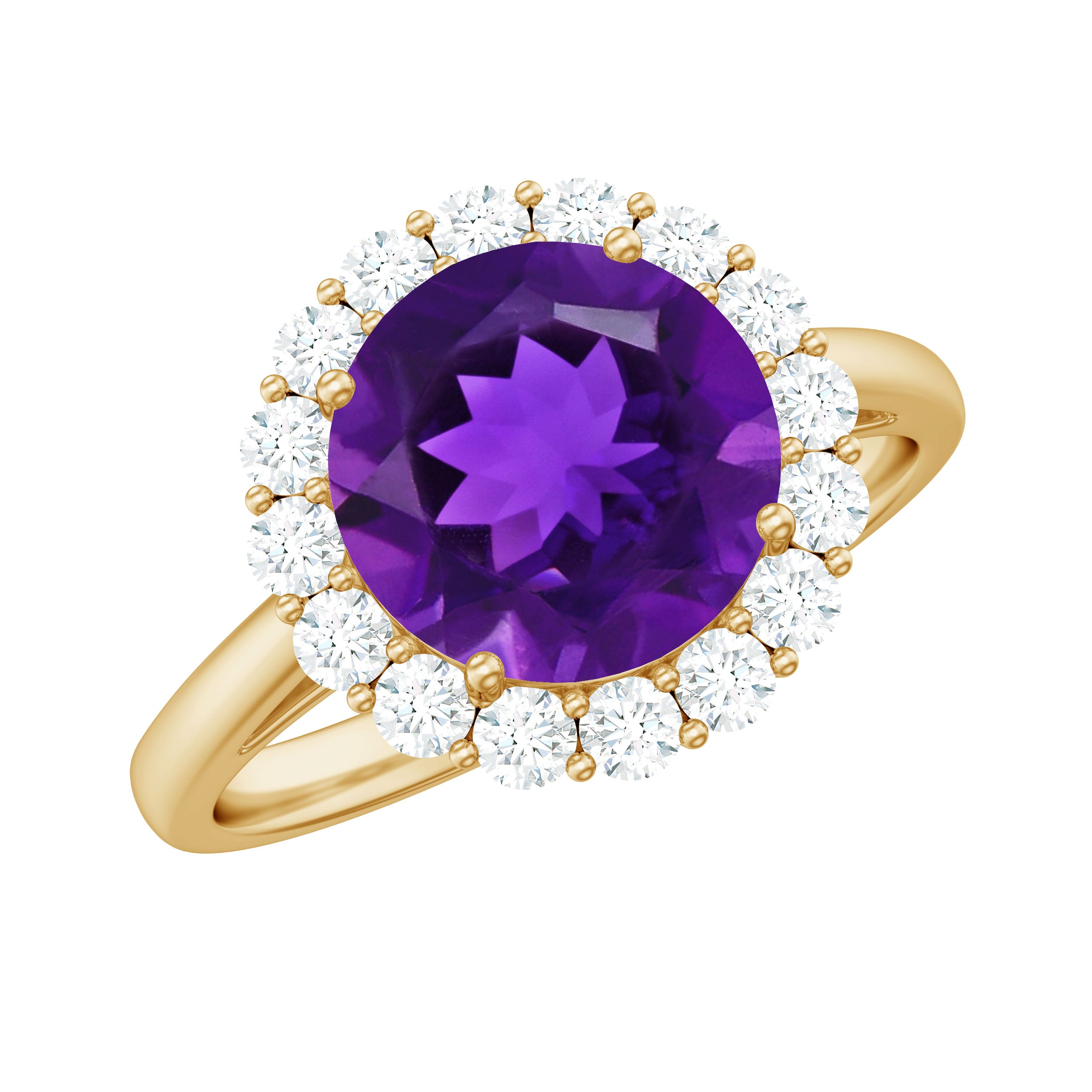 Round amethyst rings and amethyst halo rings are the most popular and trendy designs. Although, you can also choose from different cuts - princess cut, oval cut, cushion cut or emerald cut for engagement ring. Choosing a particular cut of amethyst is an individual choice.