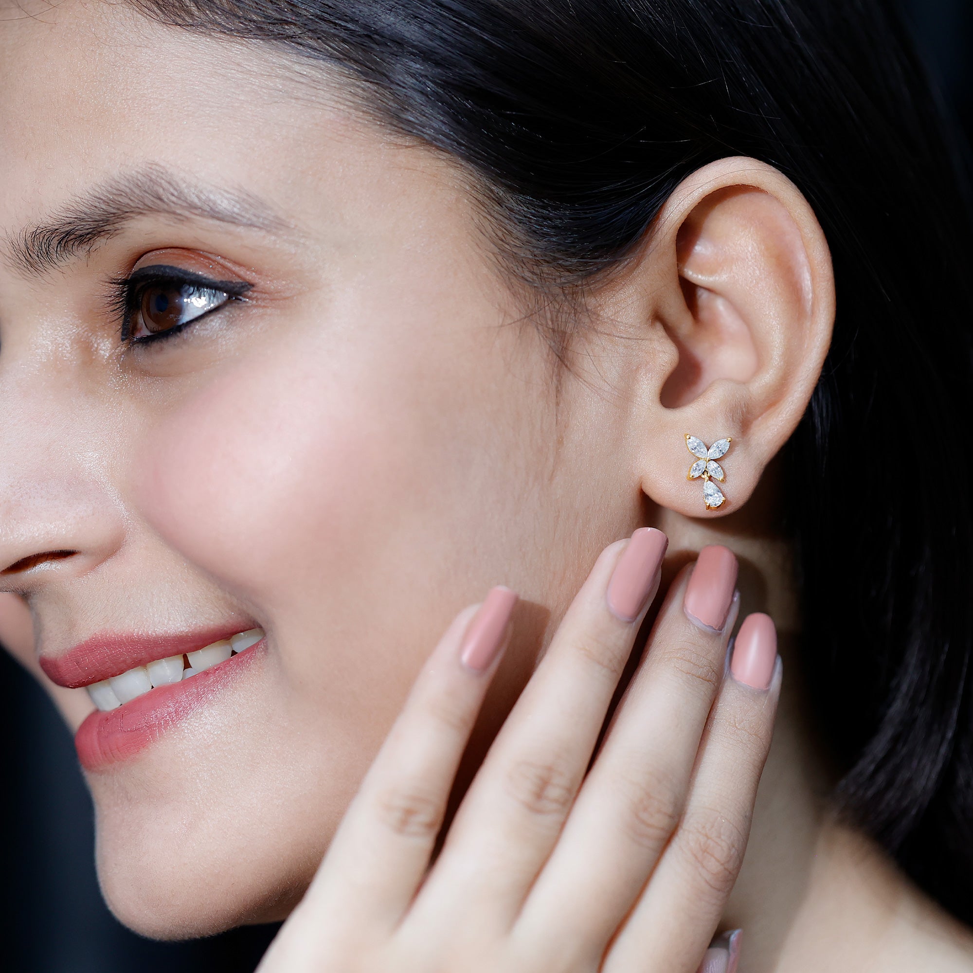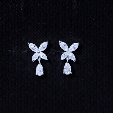 Enjoy these Flower Drop Earrings as they have a sweet appeal. Created to add sparkle to your attire, these Flower Drop Earrings are embellished with Marquise Cut Moissanite assembled in a Floral Design while a Pear Shape Moissanite hangs as a Drop. Whether you are going out to grab a coffee with your friends or getting ready for a soiree, carry these Moissanite Earrings with your outfit to add a mesmerizing touch.