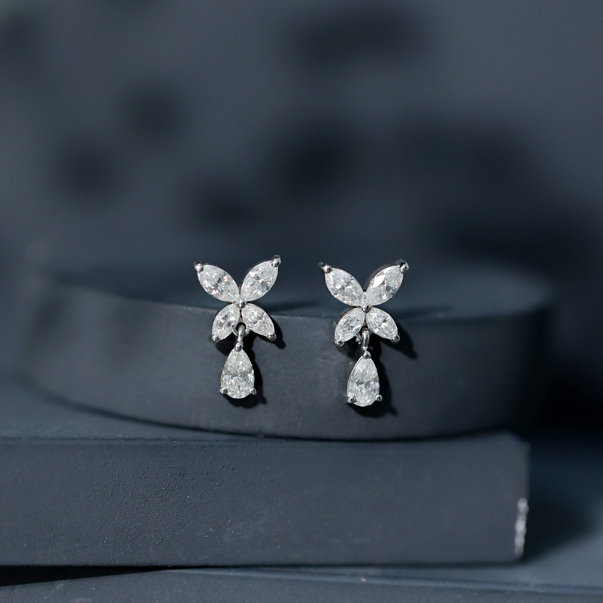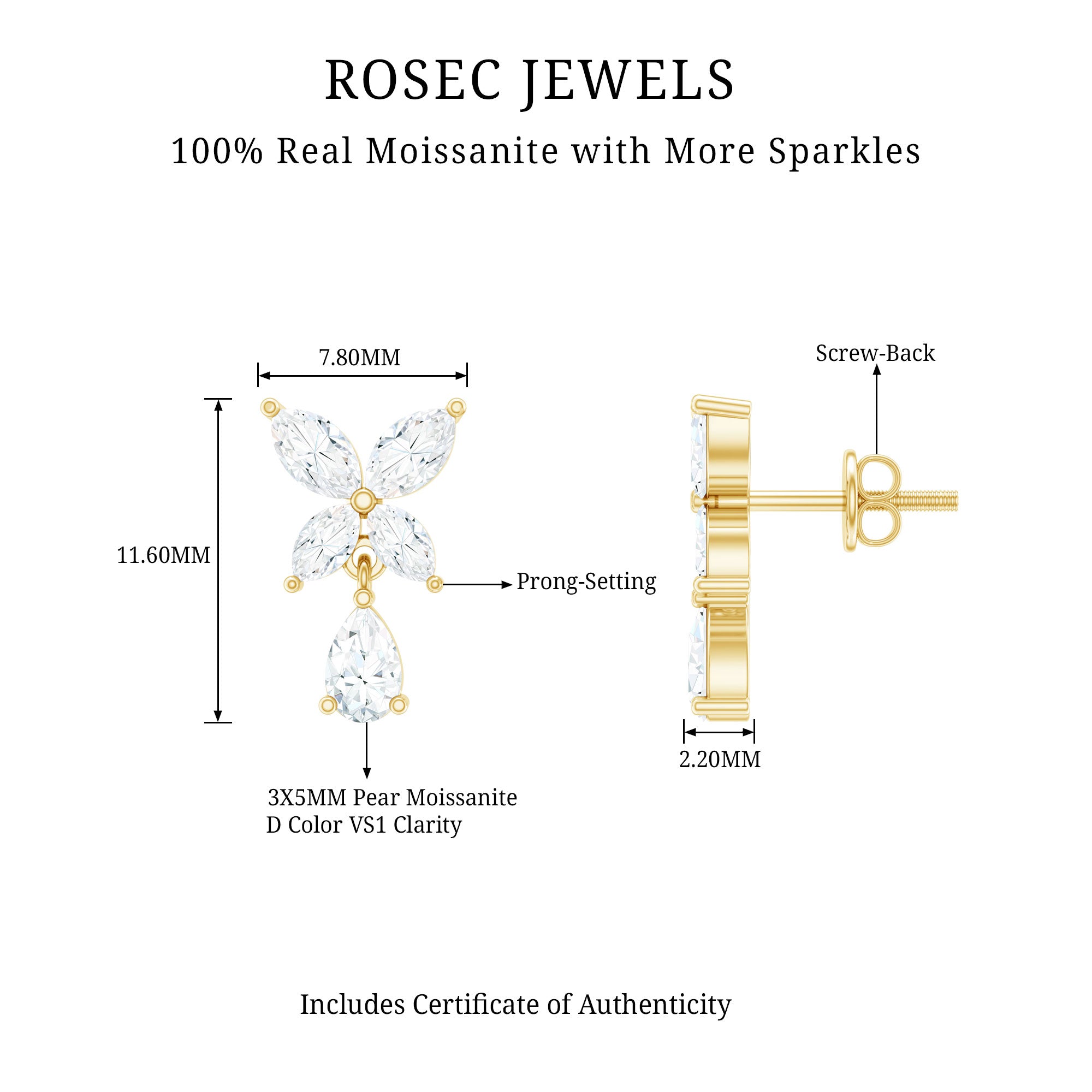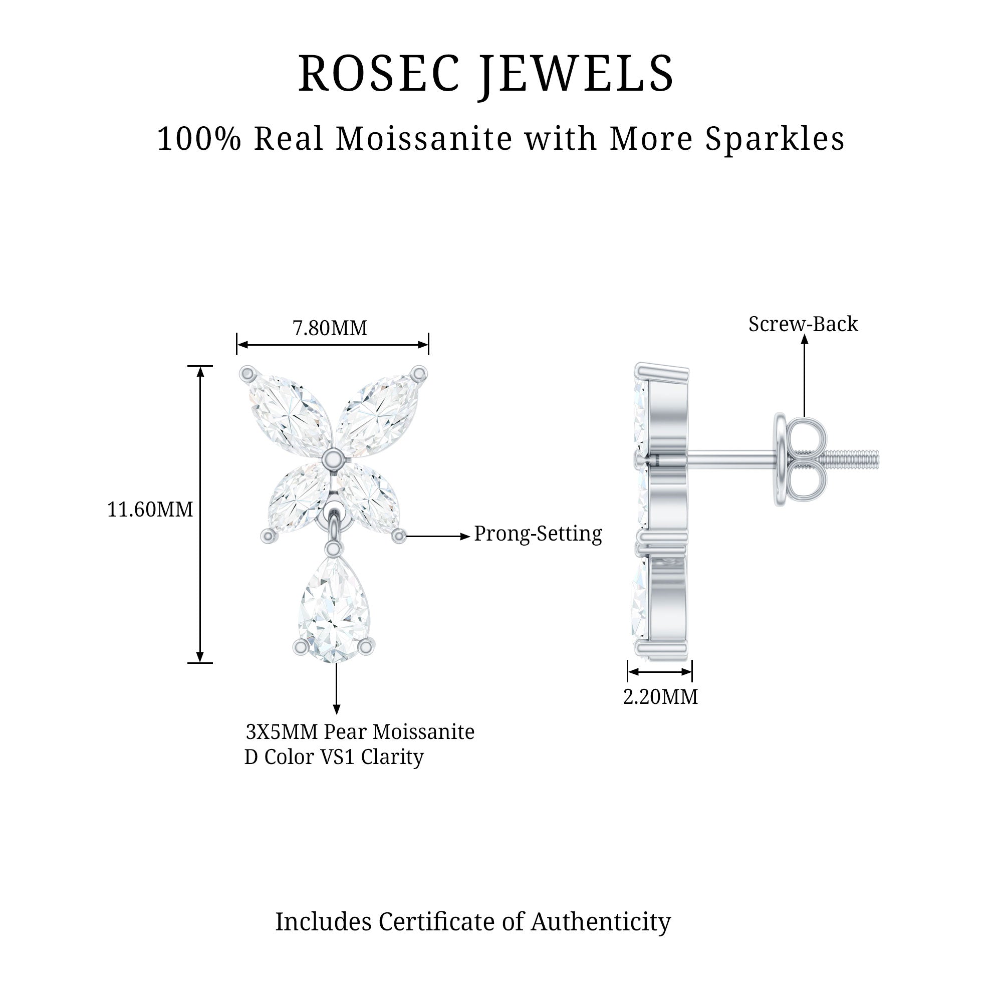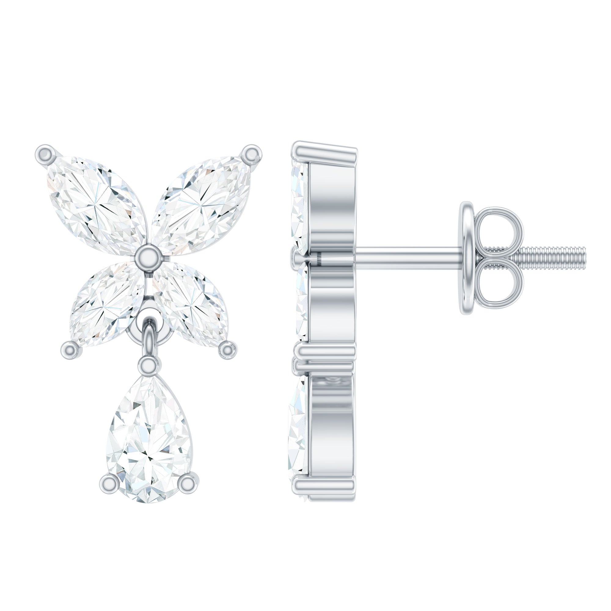Marquise and Pear Cut Moissanite Flower Drop Earrings