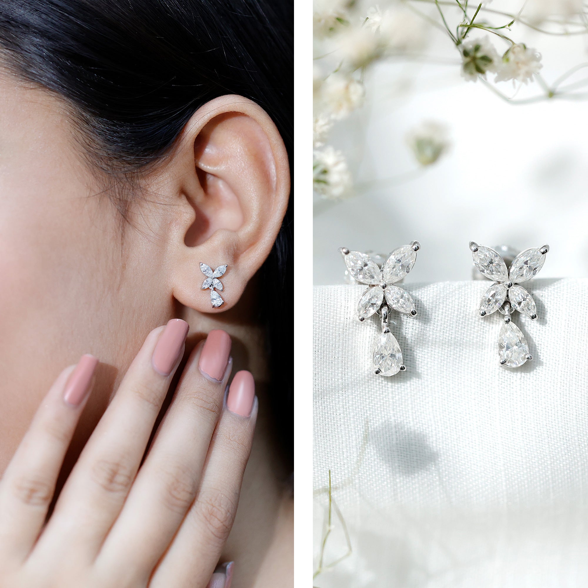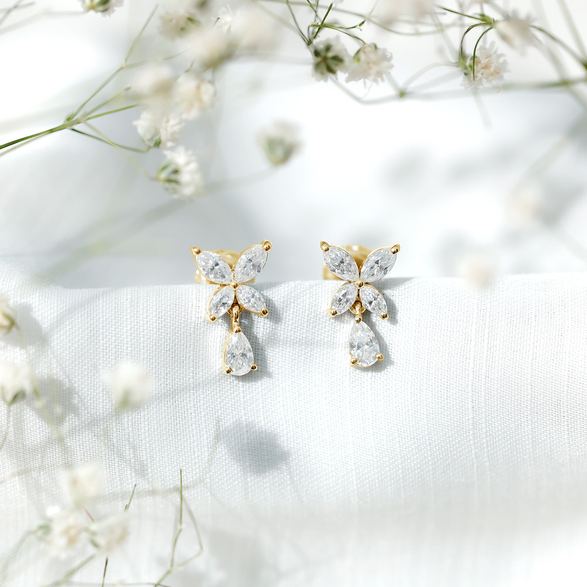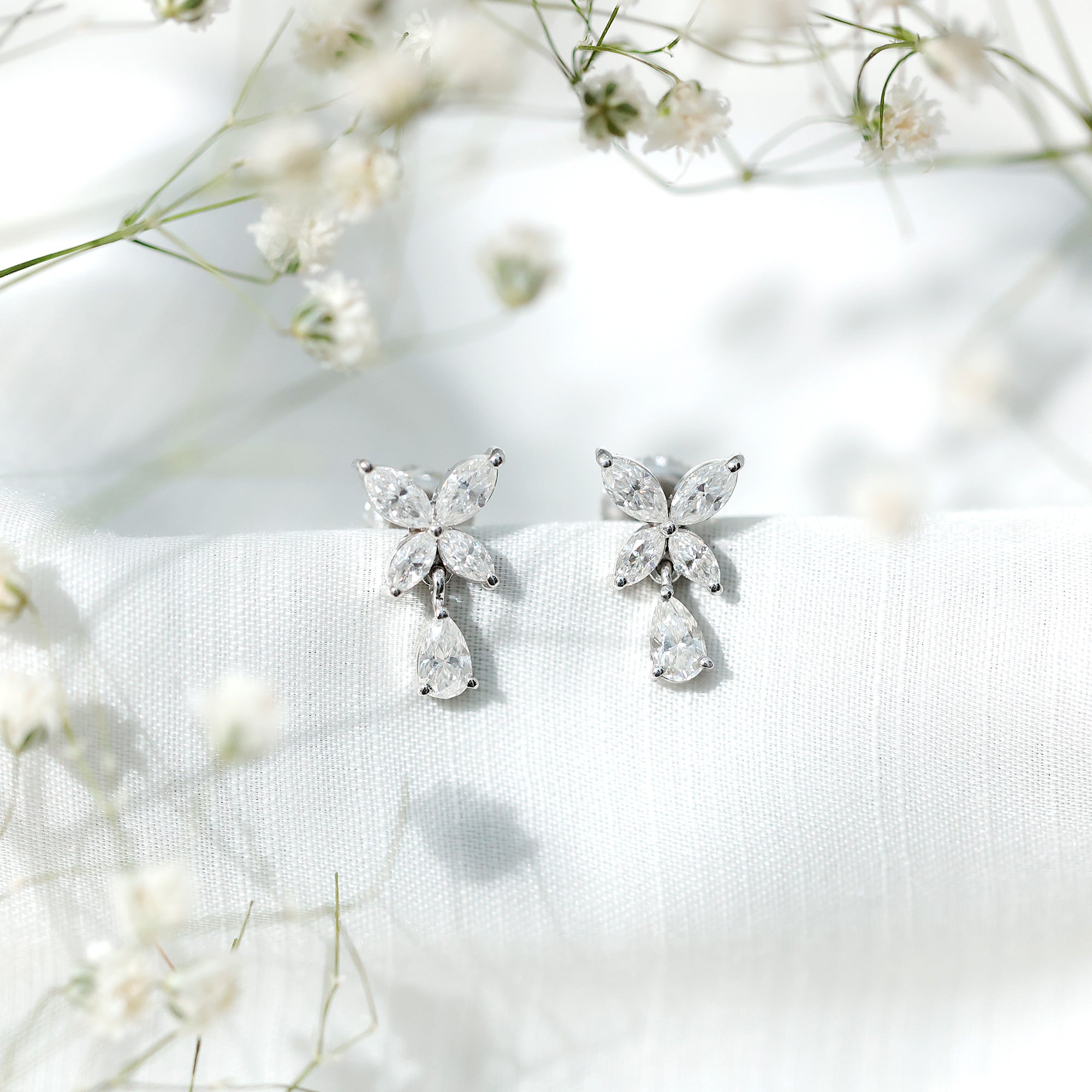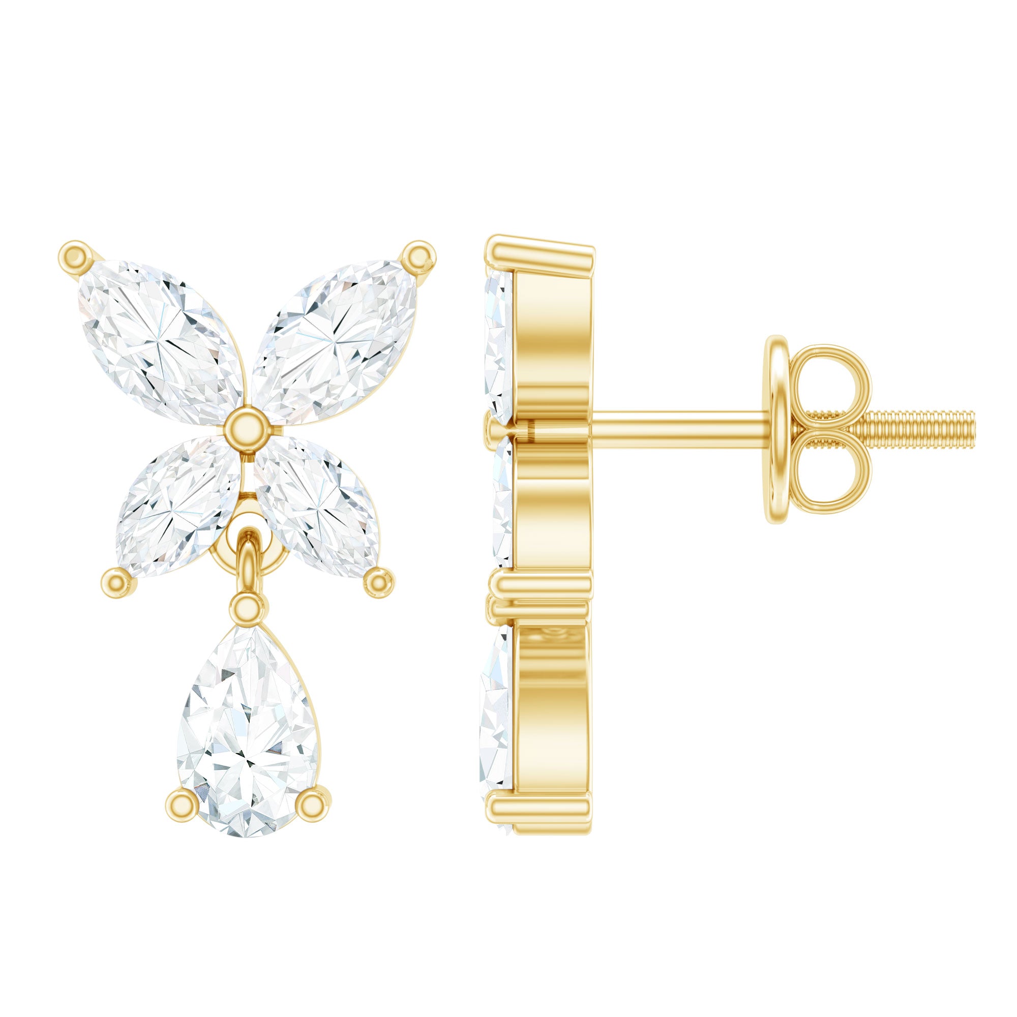 Marquise and Pear Cut Moissanite Flower Drop Earrings