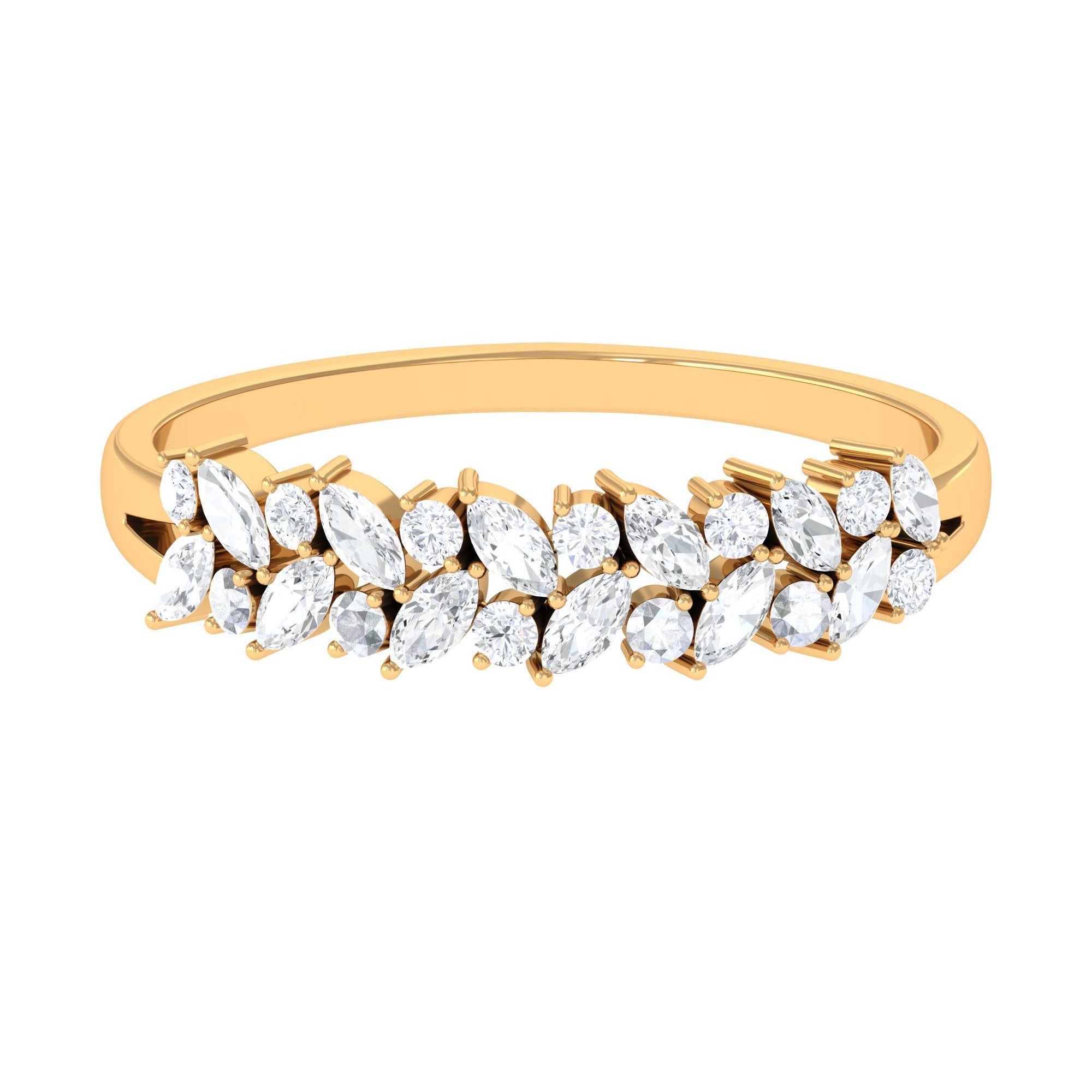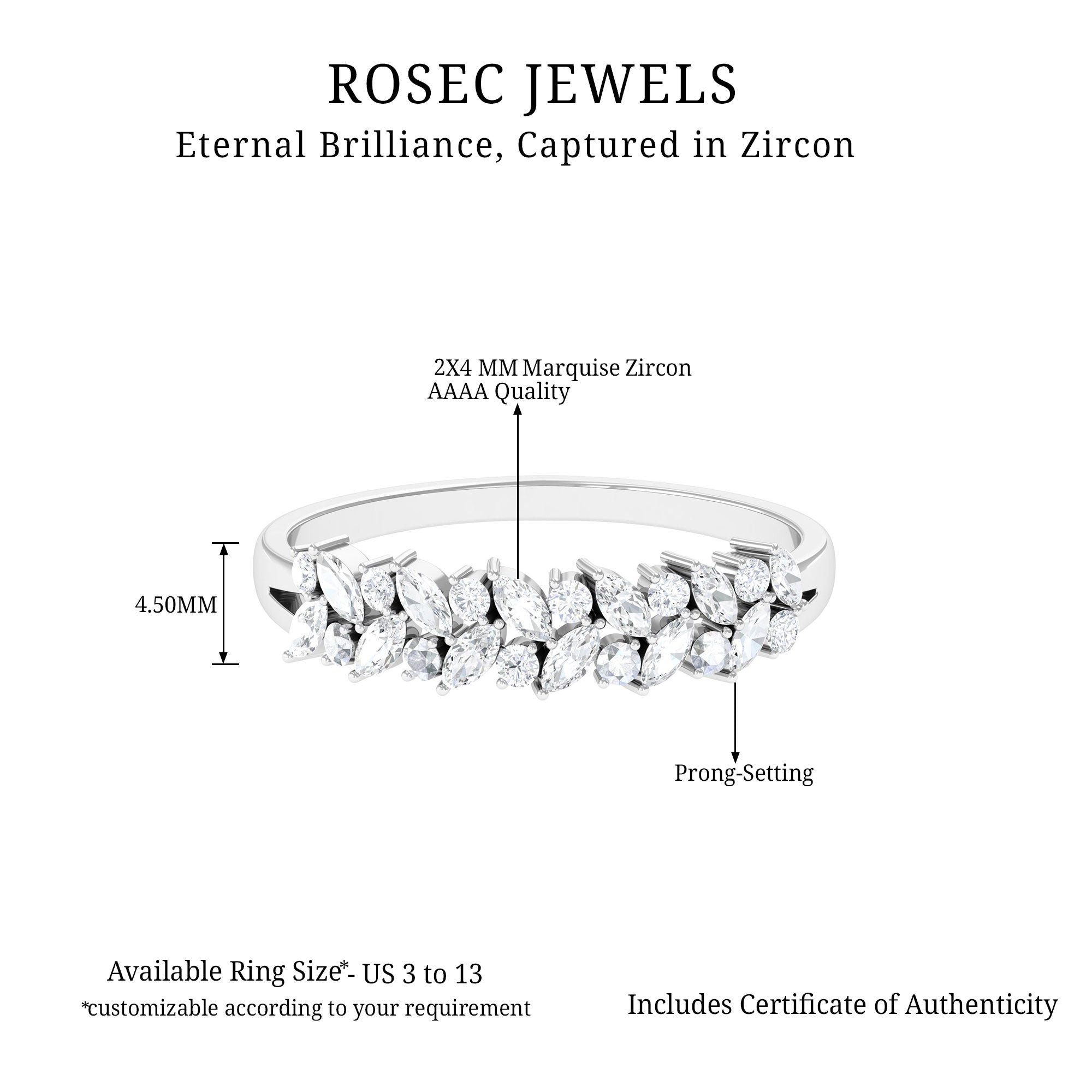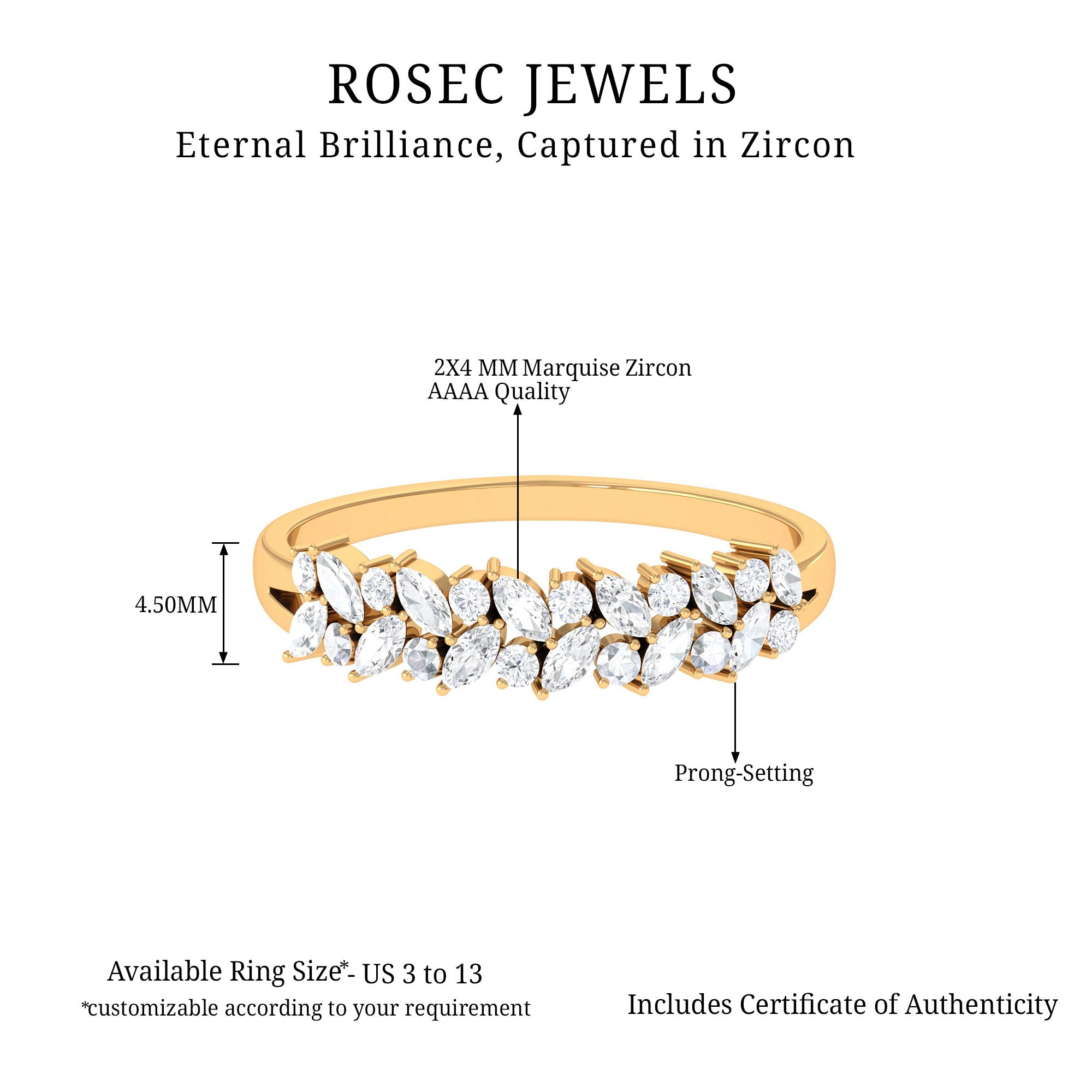 This Zircon Ring exudes timeless elegance as a Half Eternity Ring, adorned with a captivating arrangement of Marquise and Round Zircon stones delicately cradled in a Prong Setting. Elevate your gifting game by presenting your beloved lady with this Zircon Semi Eternity Ring, a graceful and stunning expression of your affection. Its exquisite design encapsulates the beauty of your love story, making it a cherished and meaningful token of your enduring bond.