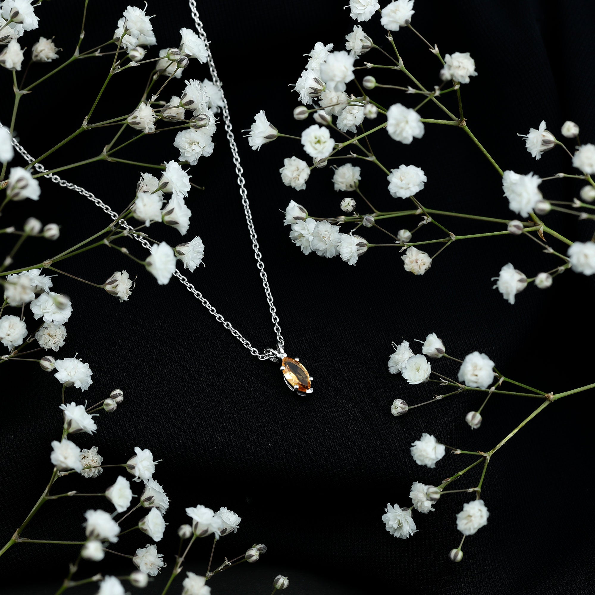 Marquise Cut 4X8 MM Citrine Solitaire Necklace with Silver Chain