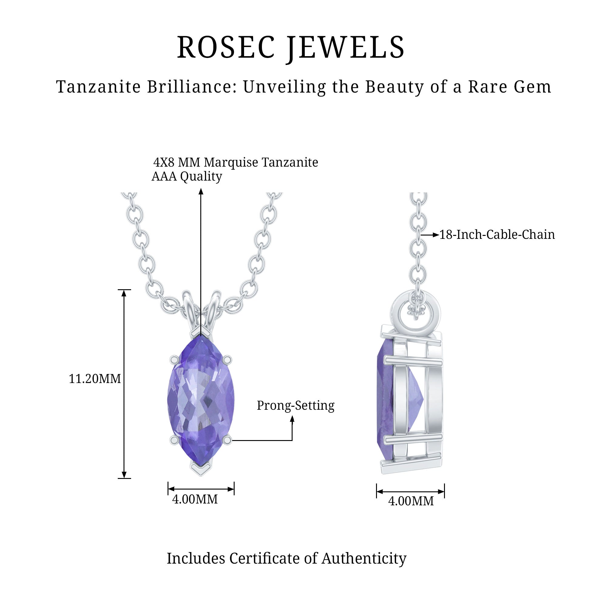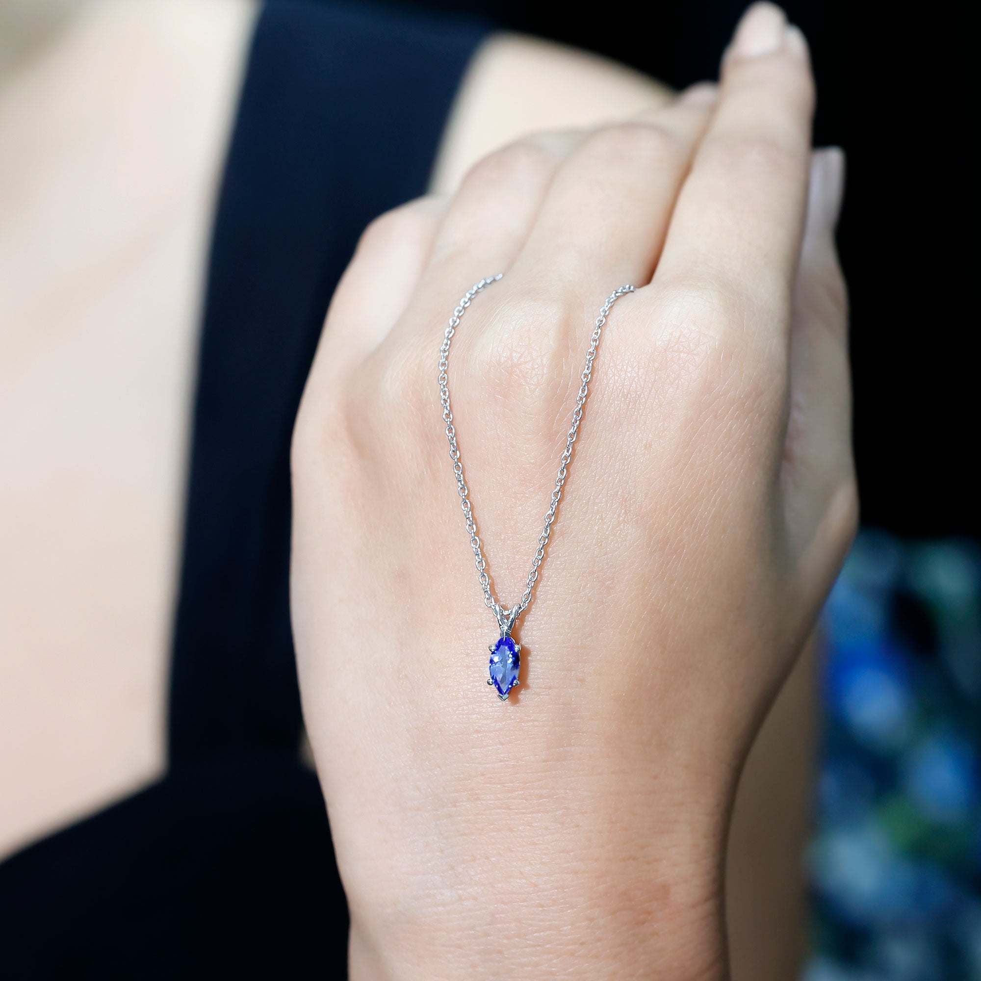 Adorn your look with this Tanzanite Pendant Necklace which exudes a bright purple hue that perfectly goes with the vibe of soft girl aesthetics. It features a 4X8 MM Marquise Shaped Tanzanite, which is the representation of luxury and elegance. This Solitaire Pendant Necklace is minimal yet a classic piece to be styled for a special day. Natural Tanzanite is associated with spiritual growth, which makes this chain pendant initiate a spiritual connection to the supreme. This Tanzanite Locket is suspended with a Rabbit Ear Bail and dangles in silver cable chain which can be adjusted with as per the choice of your style.