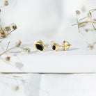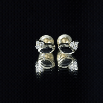Designed for those who appreciate minimalism with a statement, these Black and White Earrings feature a sleek 3X6 MM marquise cut Black Spinel held by bezel setting and curated in 14k yellow gold plated sterling silver. To the side of each earring, a trio of sparkling lab grown diamonds is delicately arranged to bring contrast and light. These Black Spinel and Diamond Earrings are crafted for comfort and lasting wear, secured with screw back closures to stay in place from day to night. Whether you are heading into a business meeting, a dinner date, or simply elevating your casual look, these studs make an effortlessly stylish statement. What makes them even more special? The use of AAA quality Black Spinel paired with EF-VS quality lab grown diamonds, ensures each stone offers exceptional shine, clarity, and ethical craftsmanship. More than just earrings, this pair is a celebration of contrast, confidence, and clean design. Perfect for gifting or keeping, these Black Spinel Earrings suit any occasion and every mood, from subtle edge to everyday glam. Let your style speak volumes with the understated power of Black Spinel.