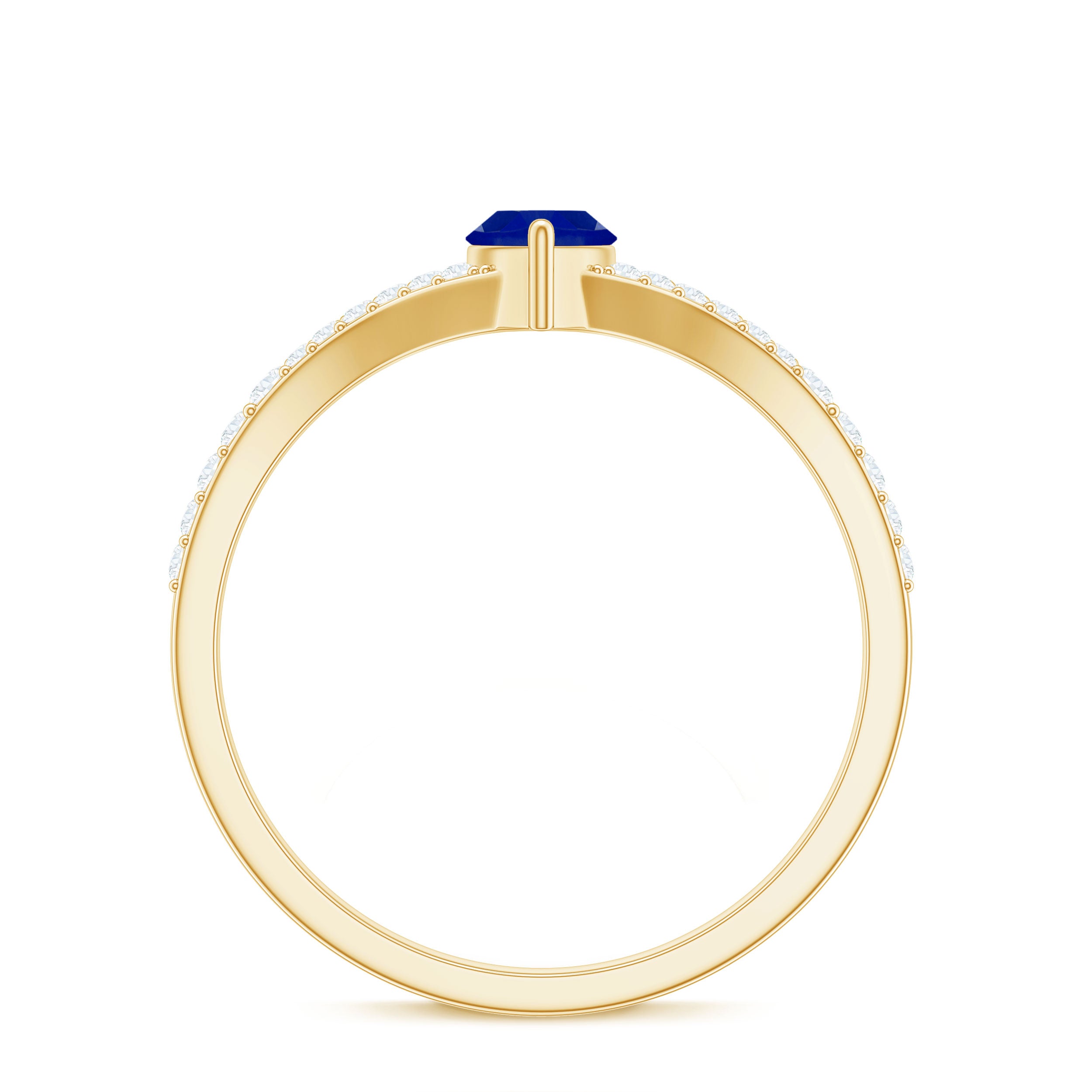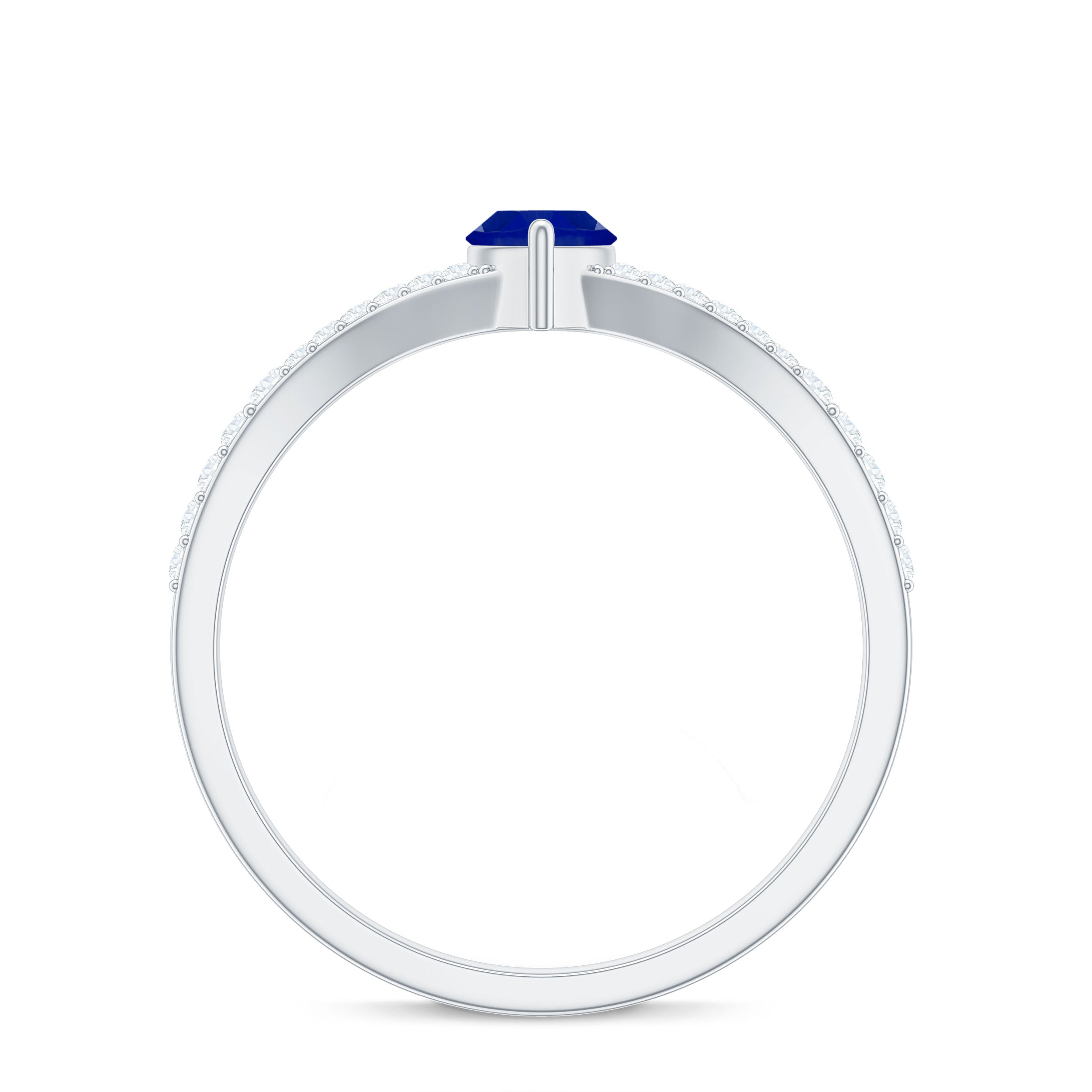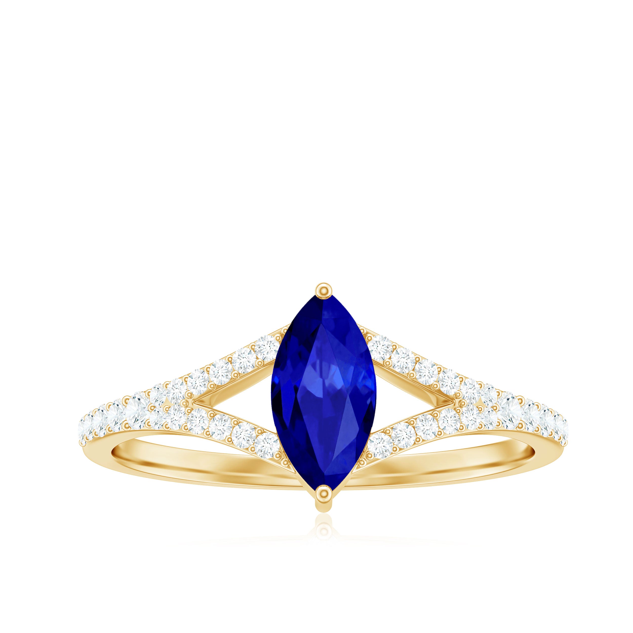 Marquise Cut Created Blue Sapphire and Diamond Ring with Split Shank