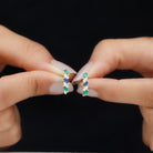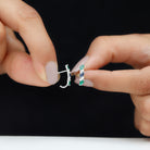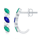 Marquise Cut Created Blue Sapphire and Emerald J Hoop Earrings with Moissanite