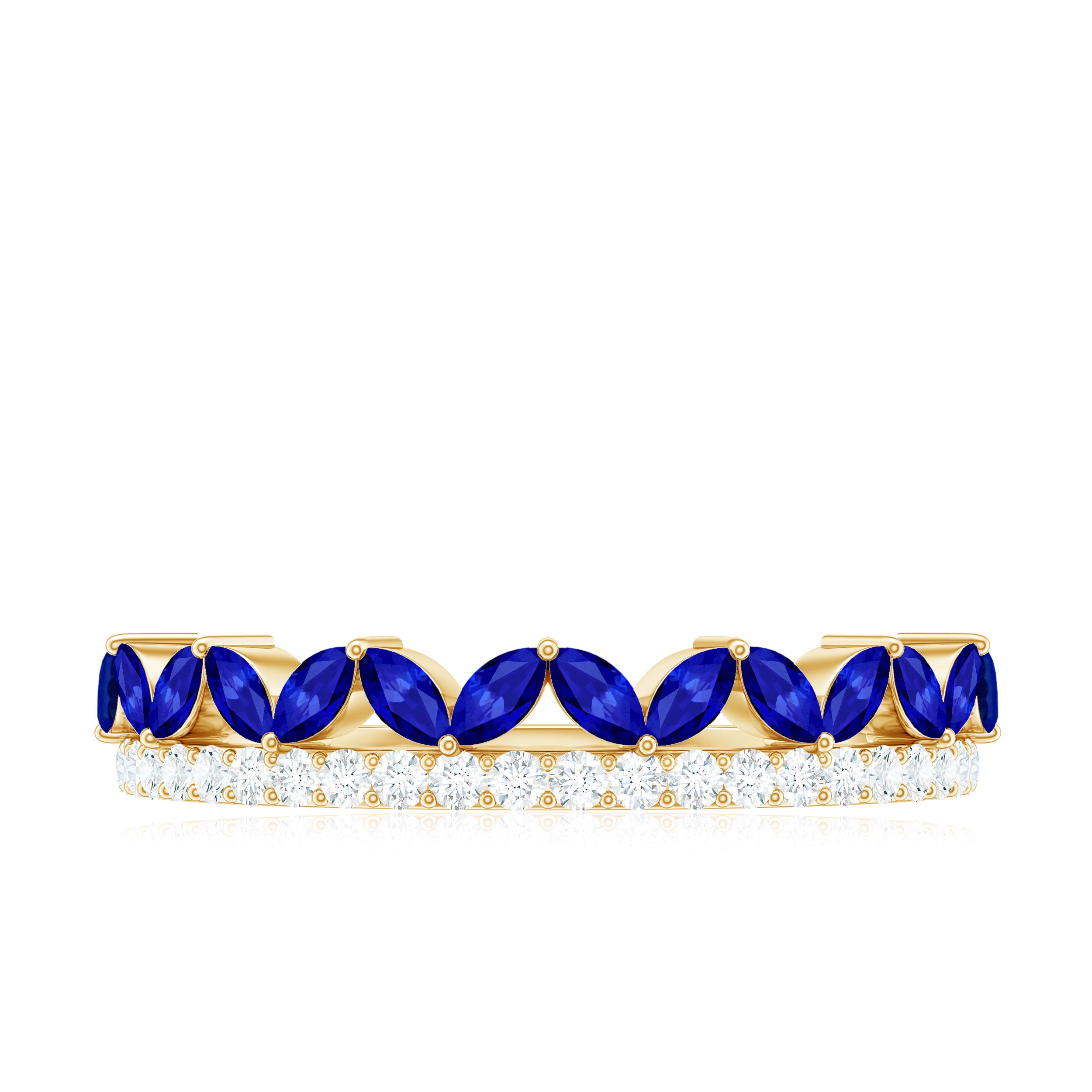 Marquise Cut Created Blue Sapphire Half Eternity Stackable Ring with Diamond