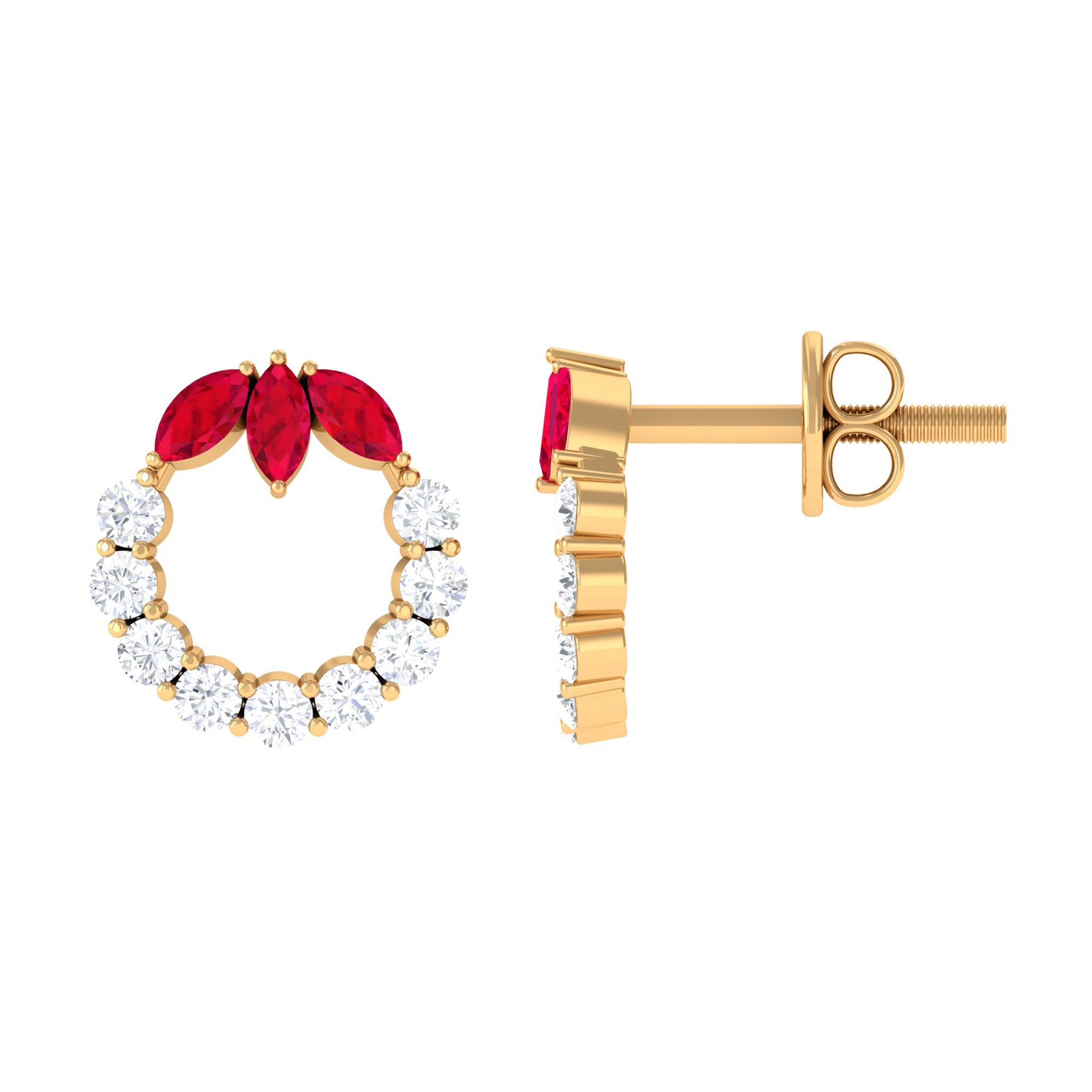 Marquise Cut Created Ruby and Moissanite Eternity Stud Earrings