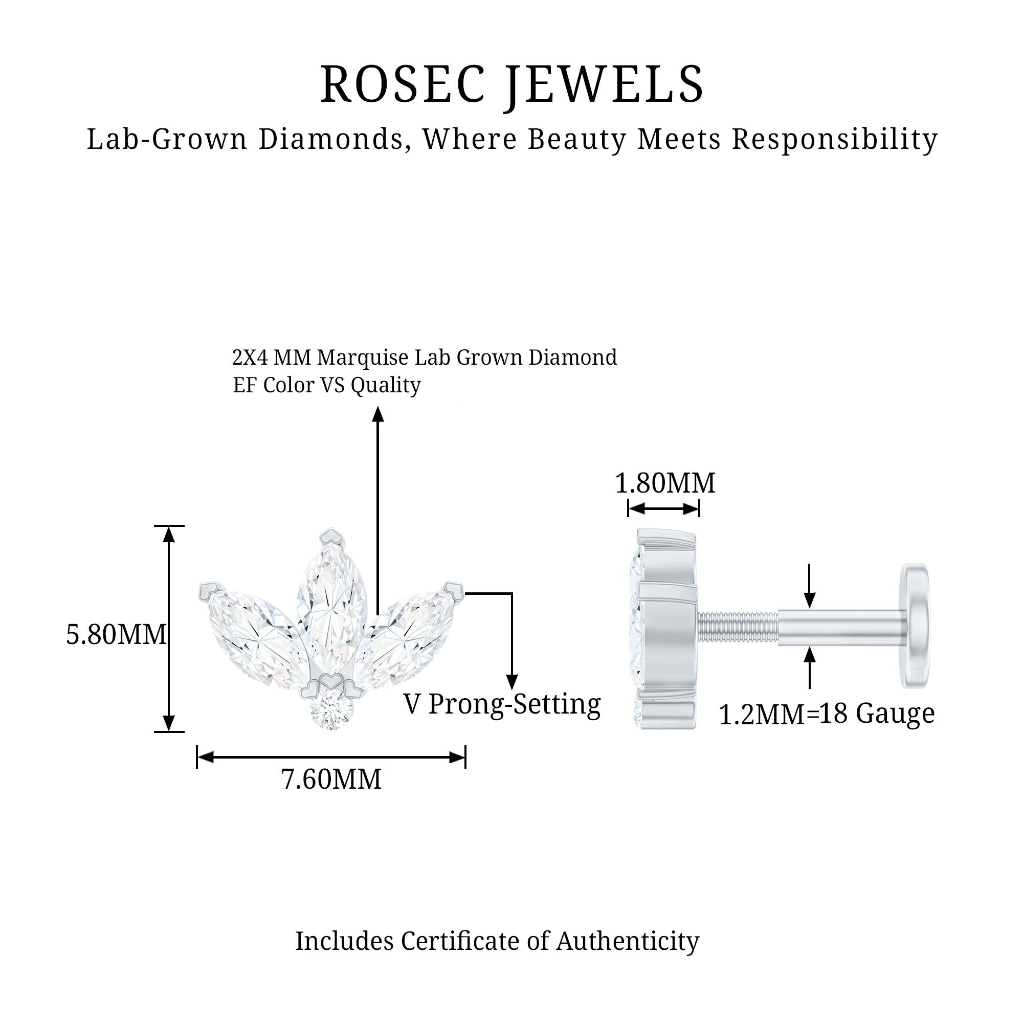 Marquise Cut Diamond Lotus Flower Earring for Cartilage Piercing