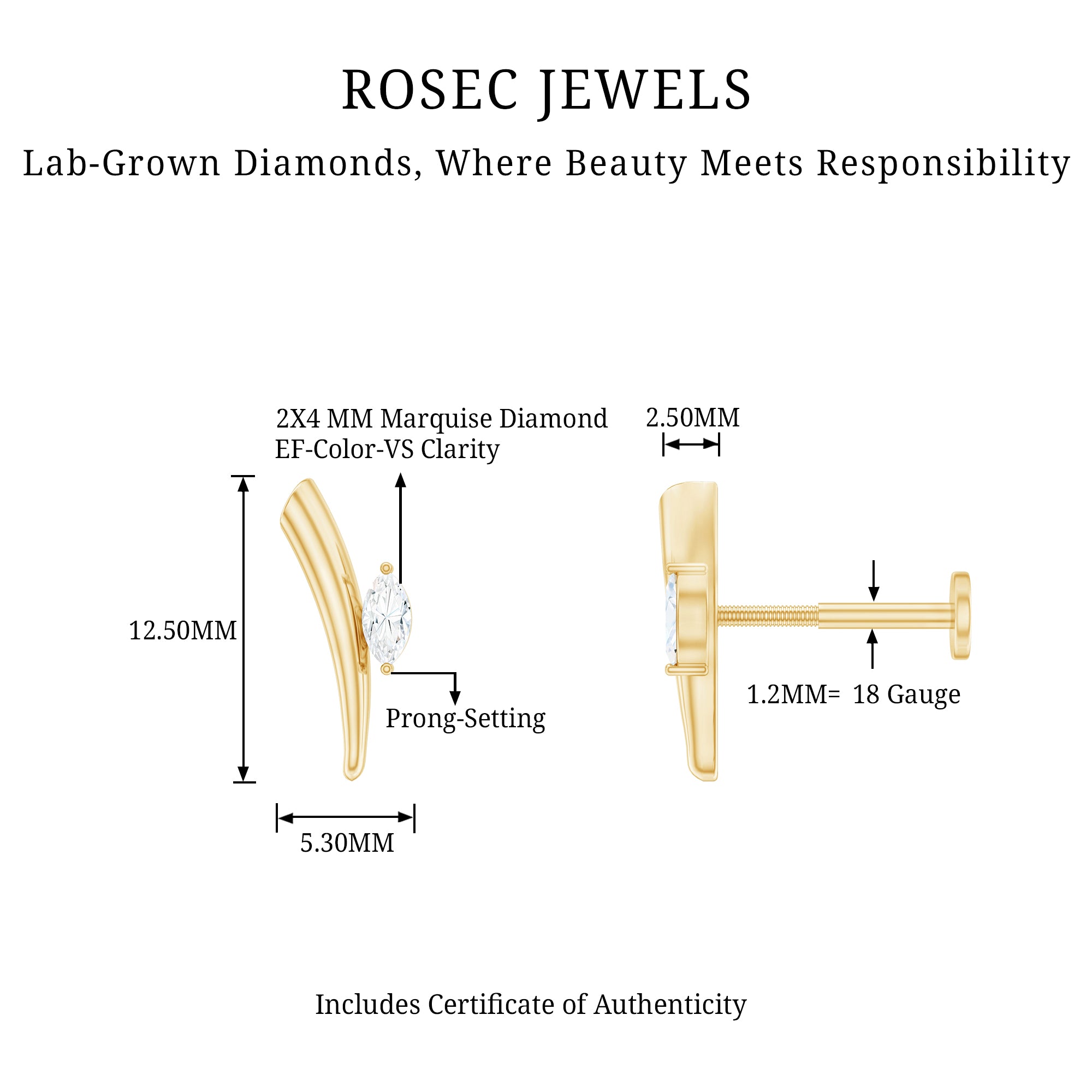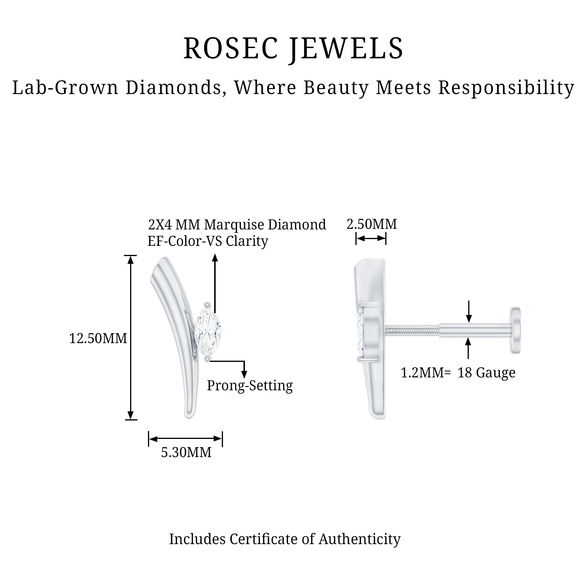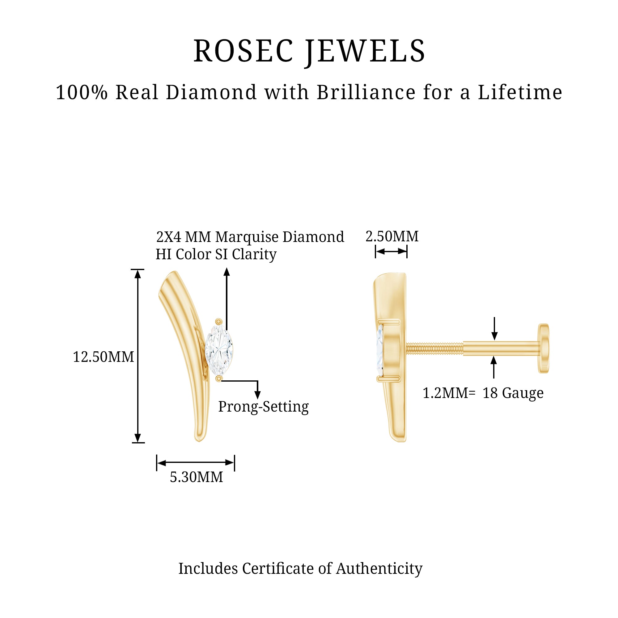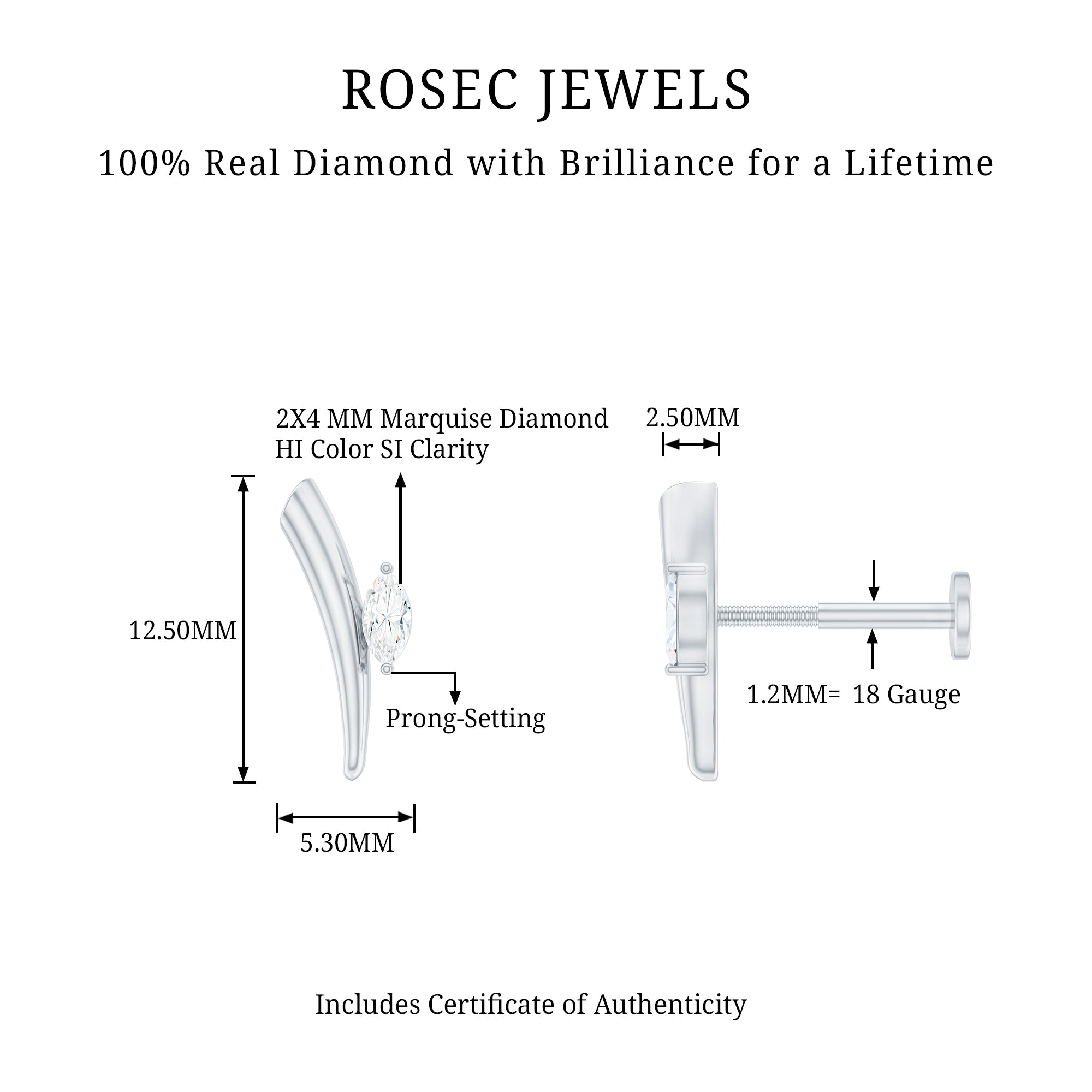 Marquise Cut Diamond Solitaire Earring for Tragus Piercing