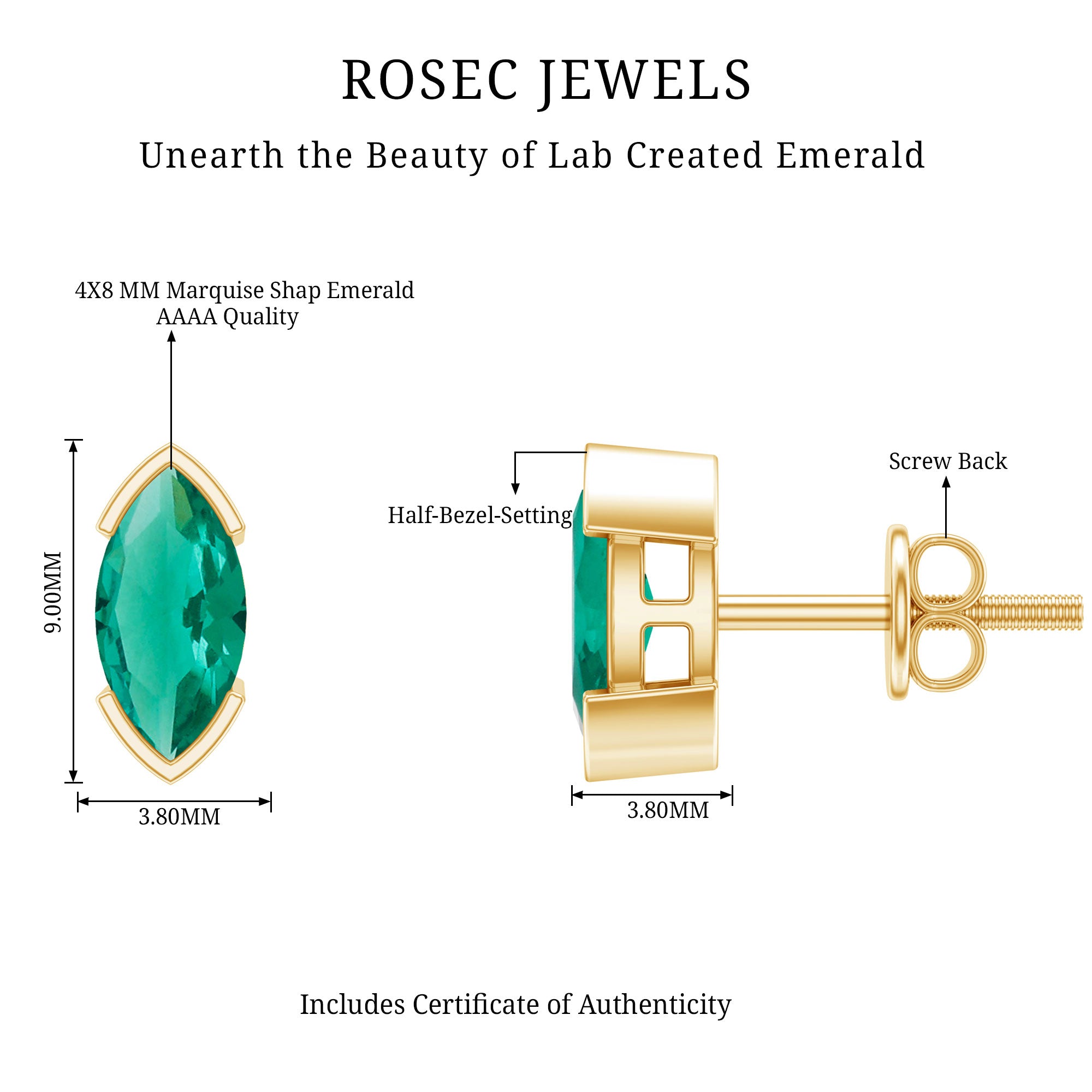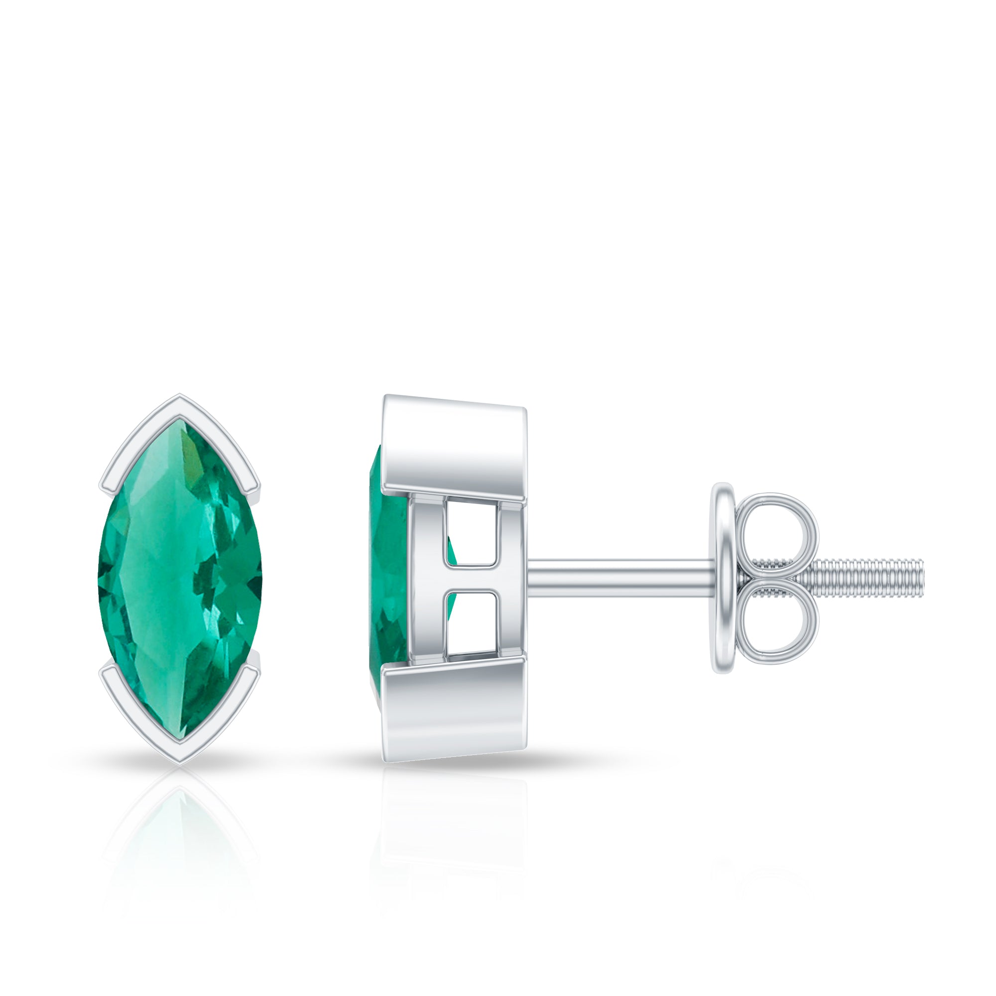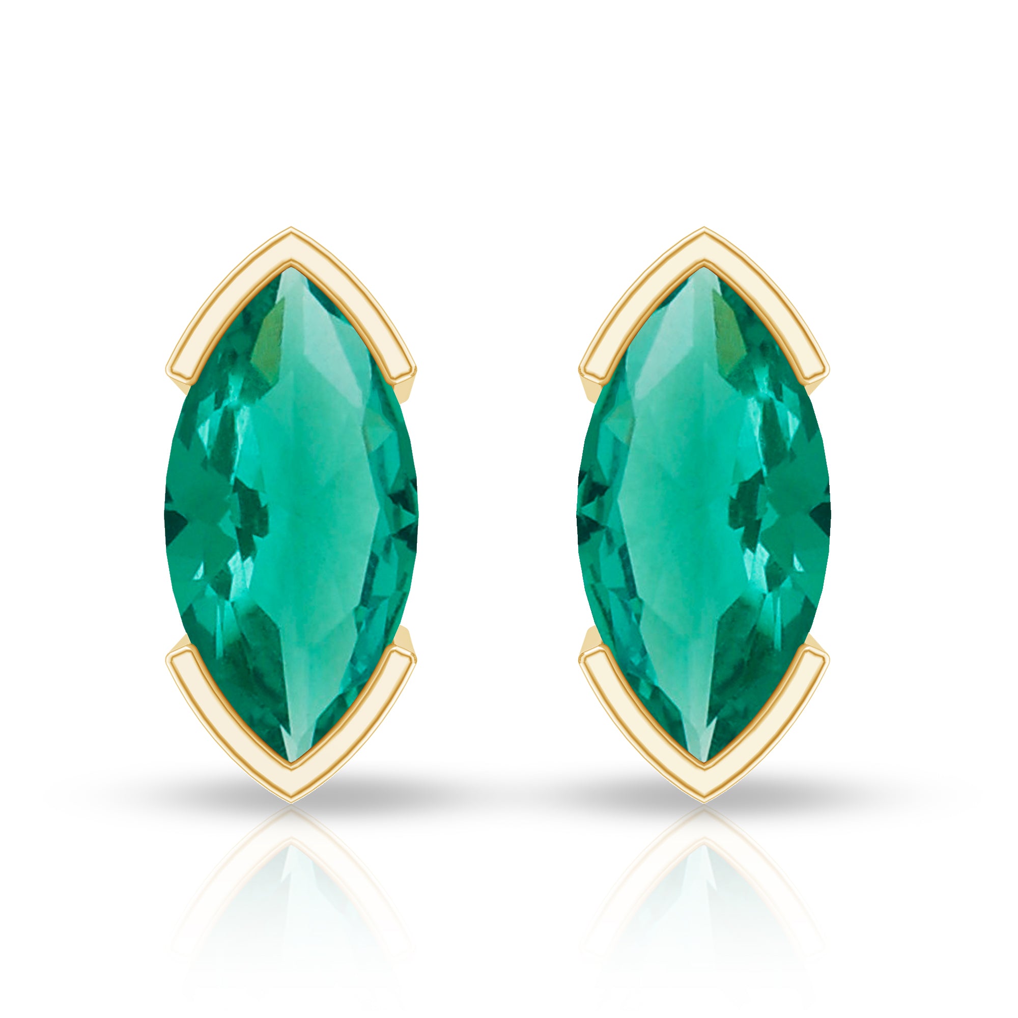Flaunt these Beautiful Solitaire Stud Earrings embellished with a Marquise Cut Created Emerald set in Half Bezel Setting. These Simple Stud Earrings are available in different metal options.
