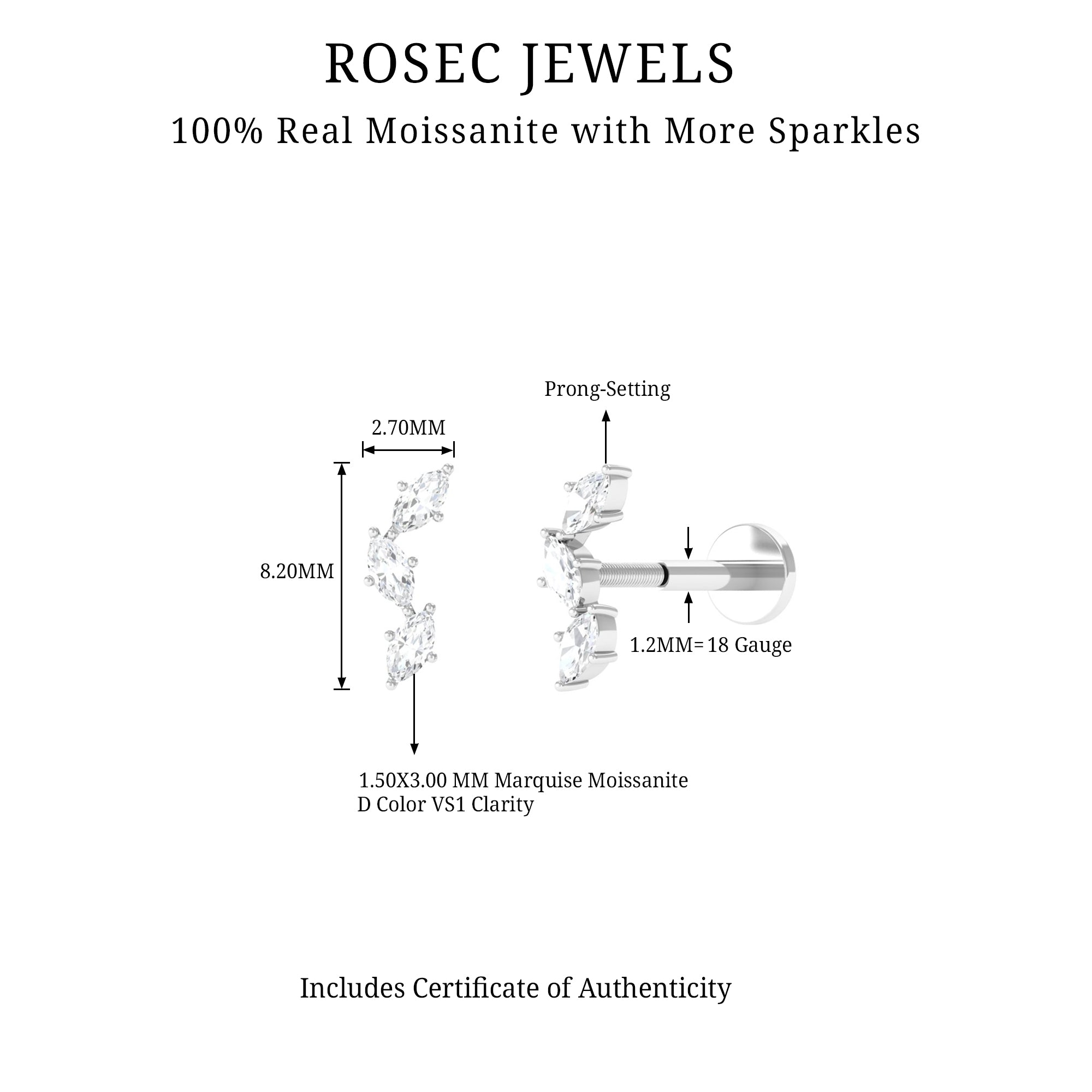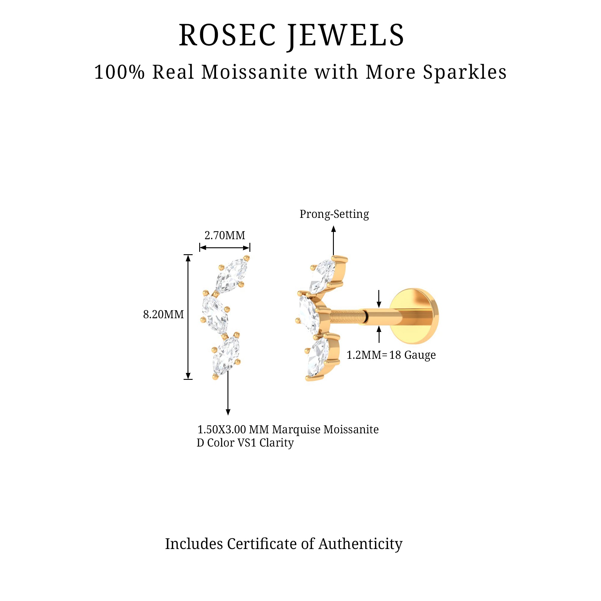 Marquise Cut Moissanite 3 Stone Tragus Earring in Gold