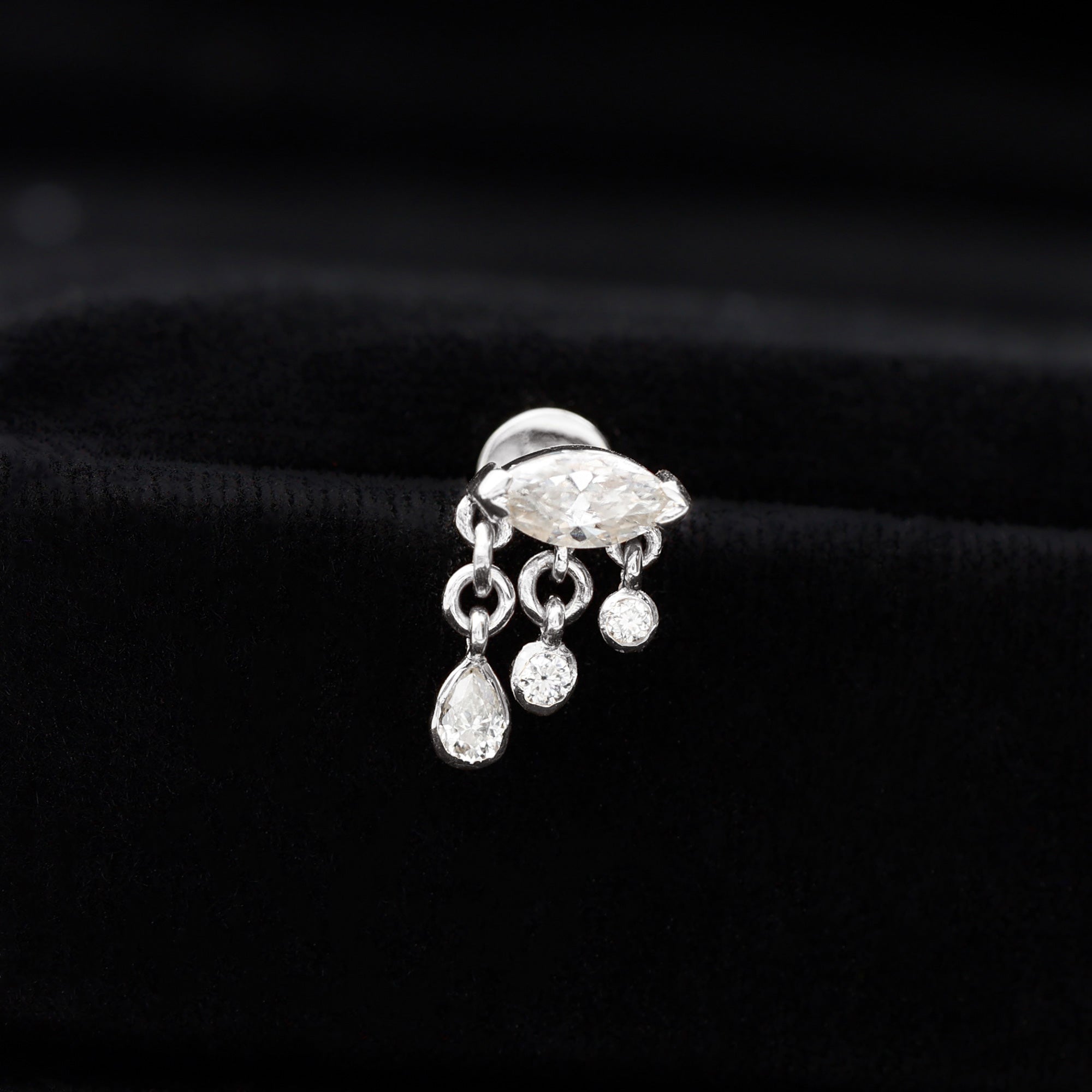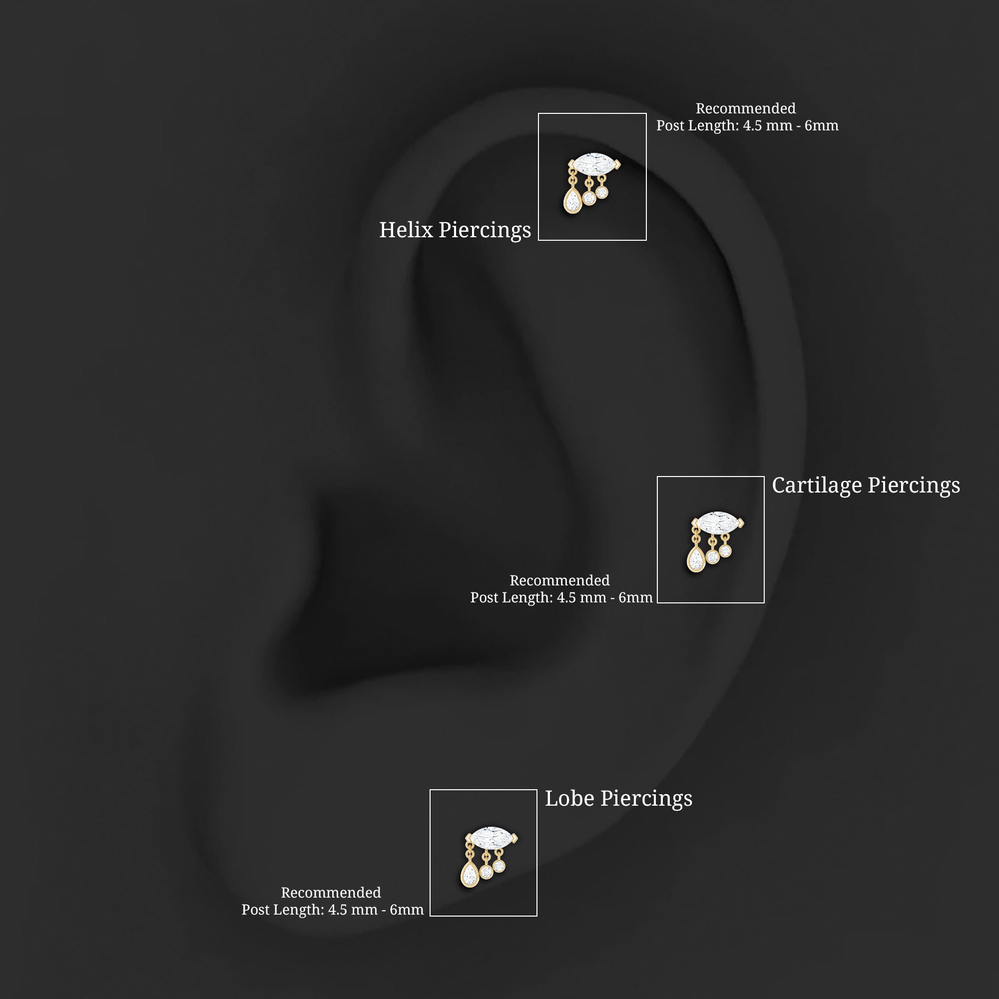 Marquise Cut Moissanite Cartilage Dangle Earring