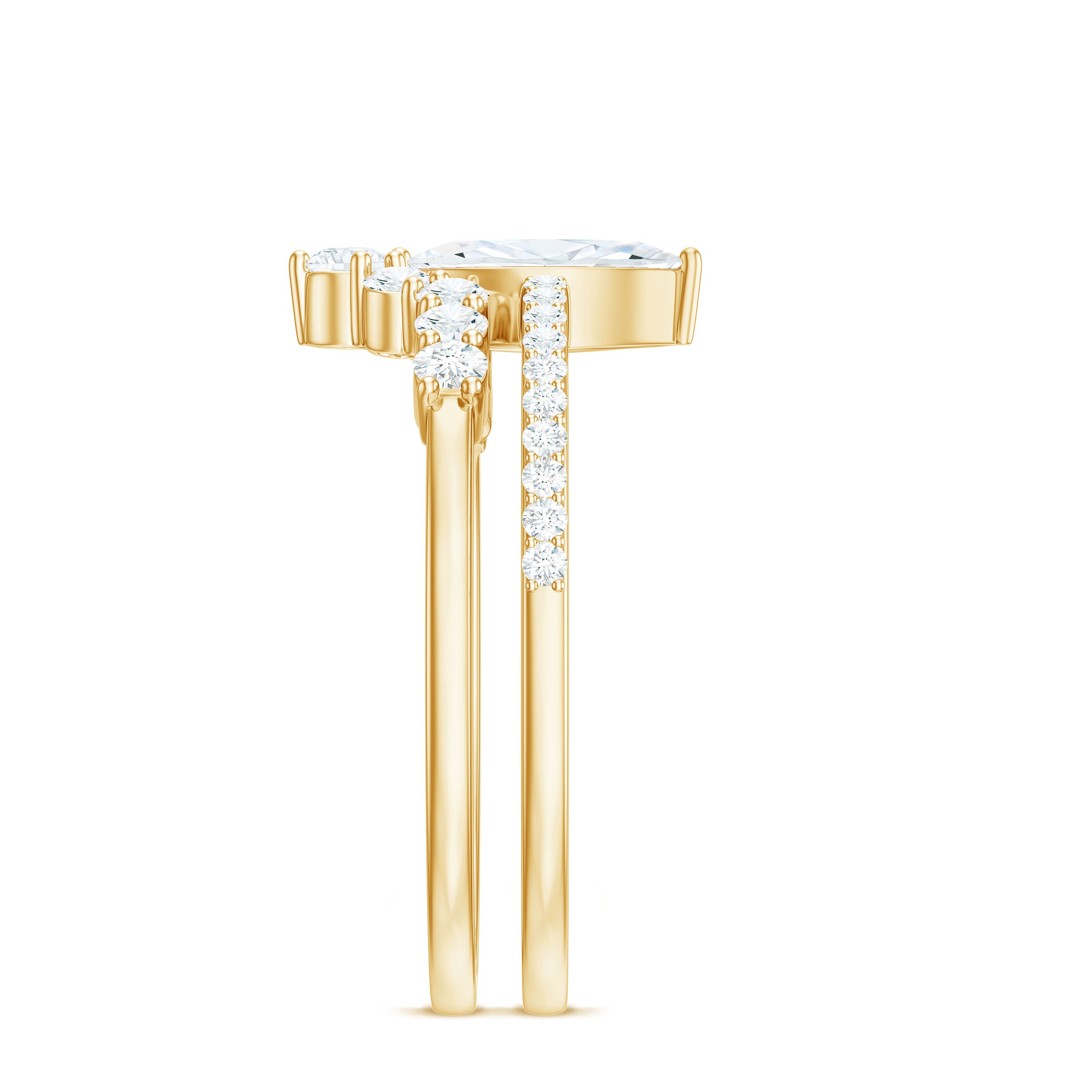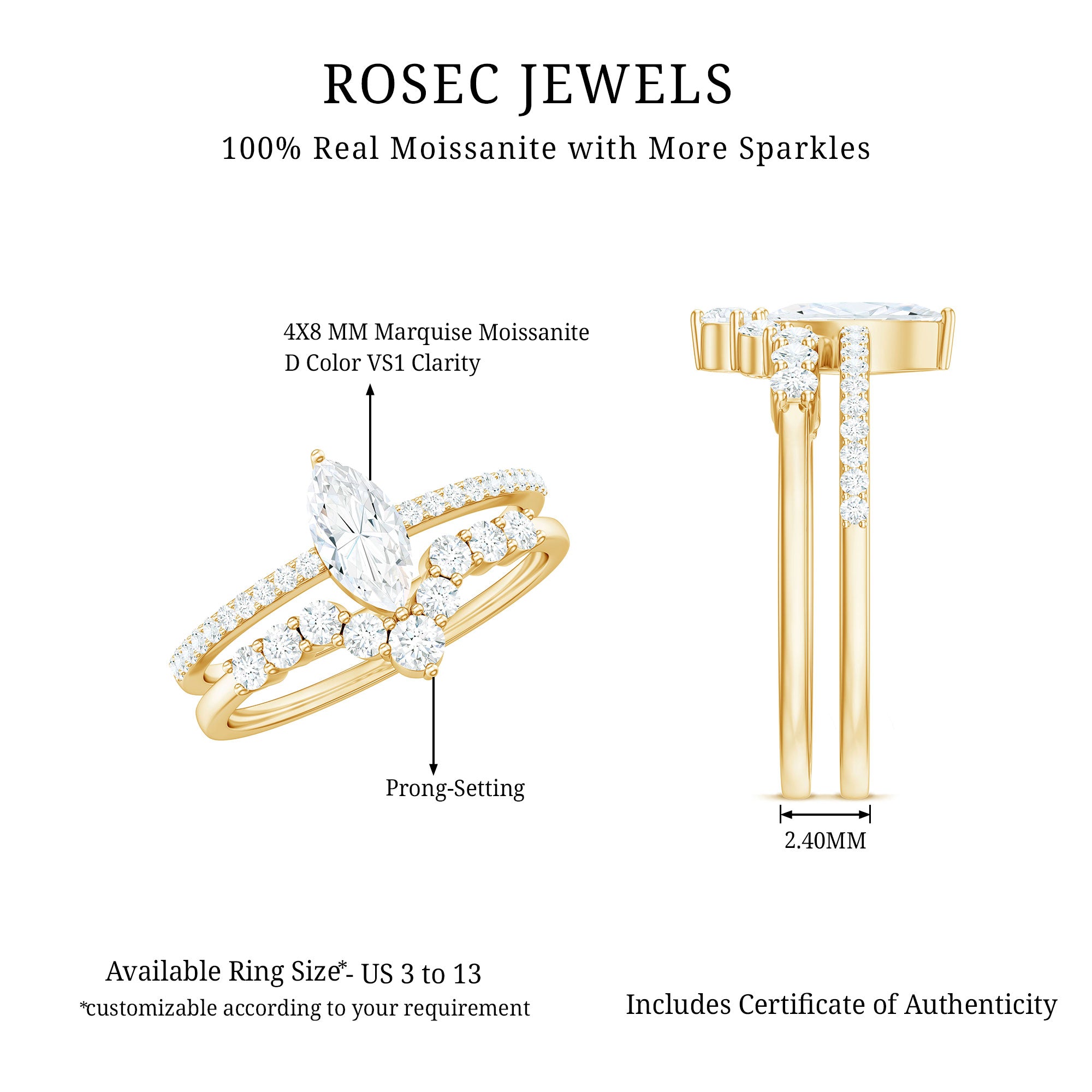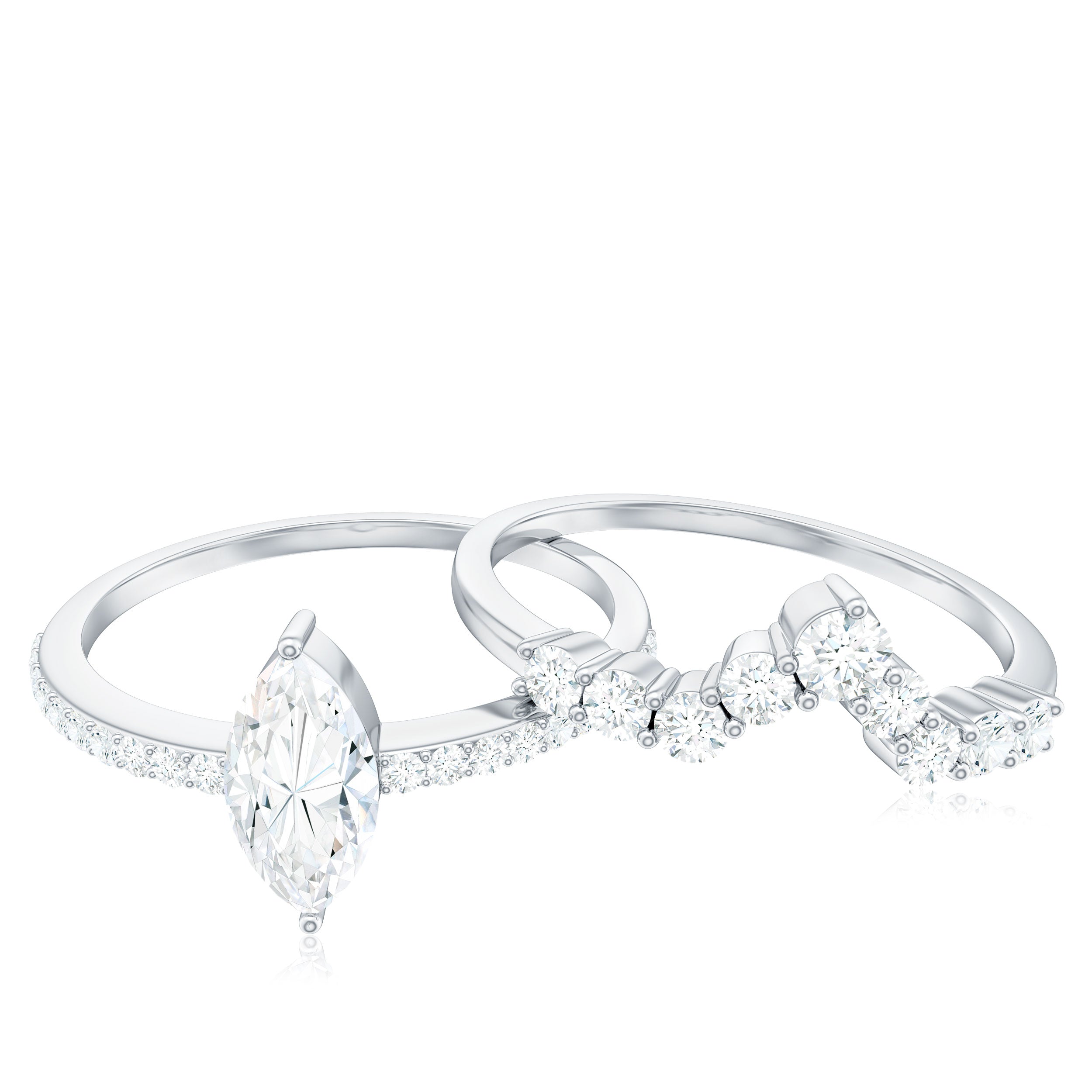 Marquise Cut Moissanite Engagement Ring with V-Shaped Wedding Band