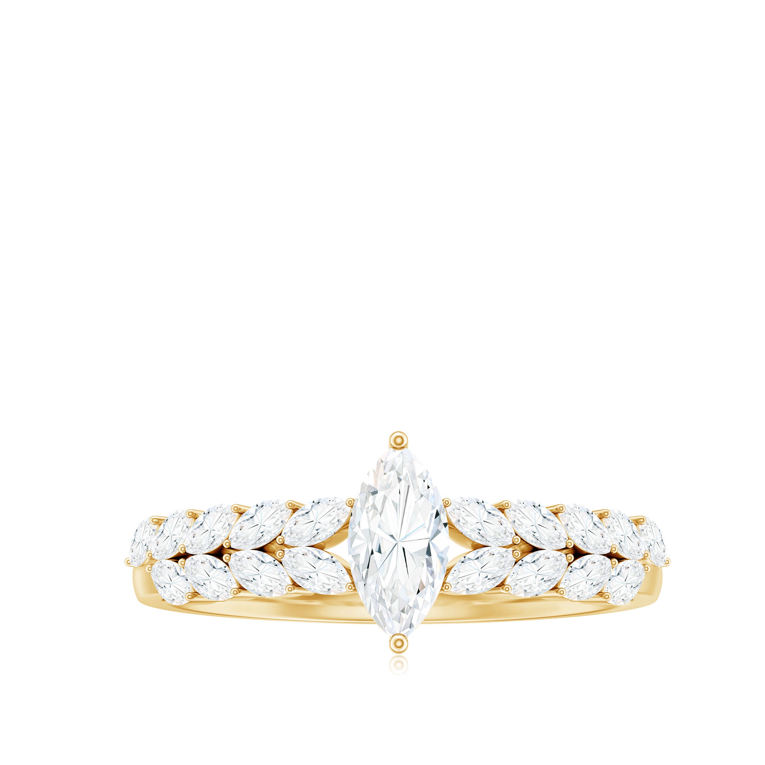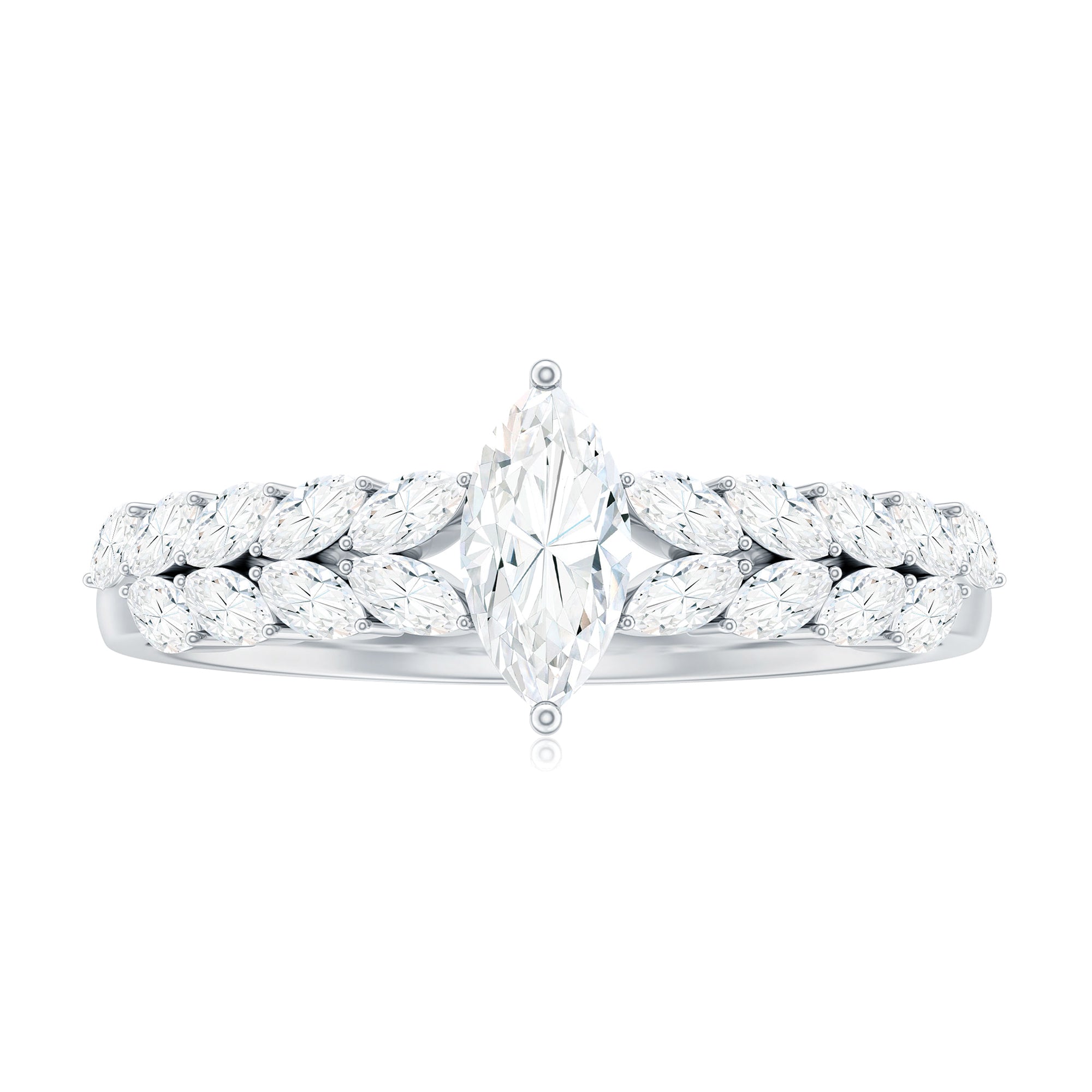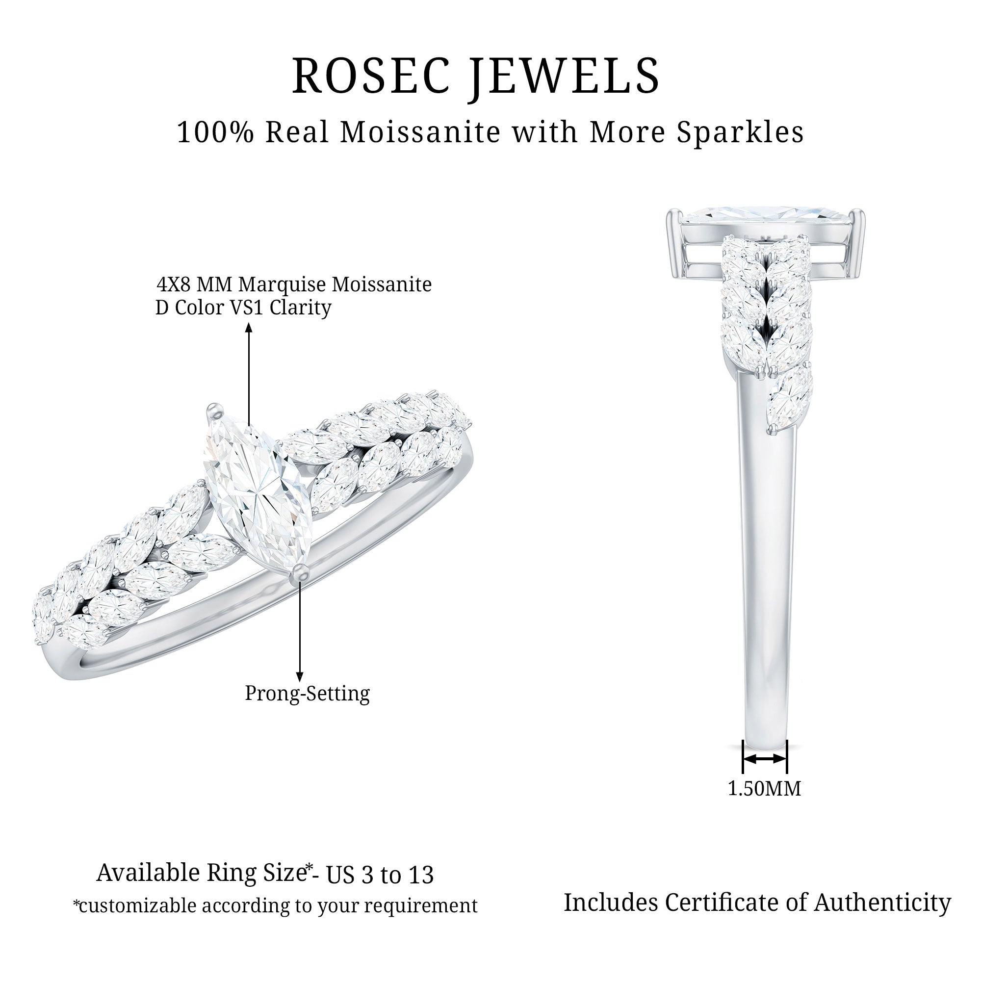 Add romance and delicate touches to your engagement, with this stunning Moissanite Engagement Ring that perfectly combines classic charm with a modern vibe. The band of this Marquise Engagement Ring features two strands that twist together beautifully, giving it a braided look, adorned with dazzling round cut moissanites. This eye-catching design highlights a central 4X8 MM marquise cut moissanite, set delicately in 2 prong setting. Elegant and charming, this Braided Ring represents everlasting love while exemplifying sophisticated style. The distinctive braided shank introduces a whimsical element of refinement to this timeless piece. This Solitaire Moissanite Ring is a thoughtful and economical gift for your dear one. This Braided Engagement Ring is perfect for celebrating any important event, whether it be an engagement, anniversary, or simply a sincere present. This Marquise Cut Moissanite Ring eloquently conveys love, gratitude, and a connection with someone treasured. Gift this 1 Carat Moissanite Ring to that remarkable person, allowing it to serve as an enduring emblem of love and grace.