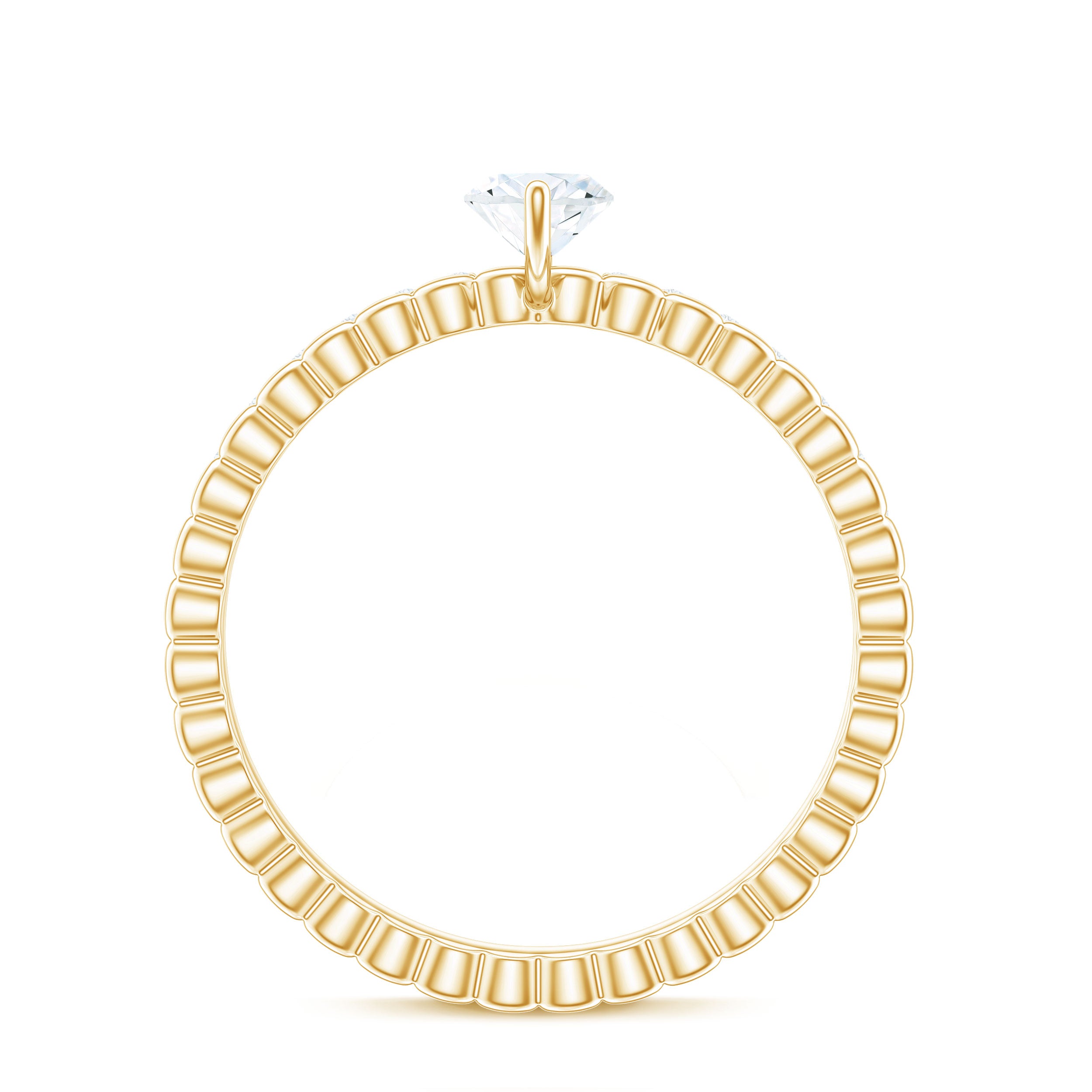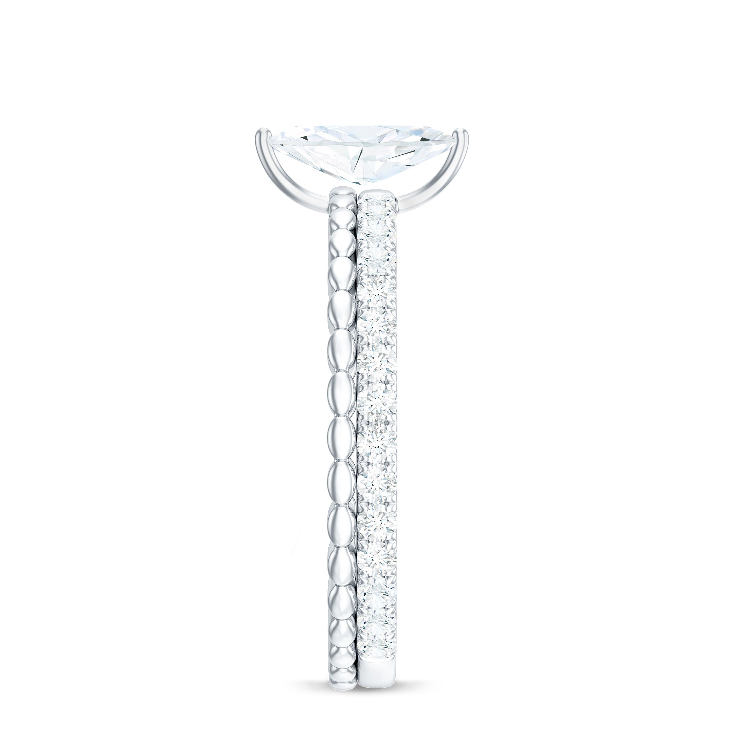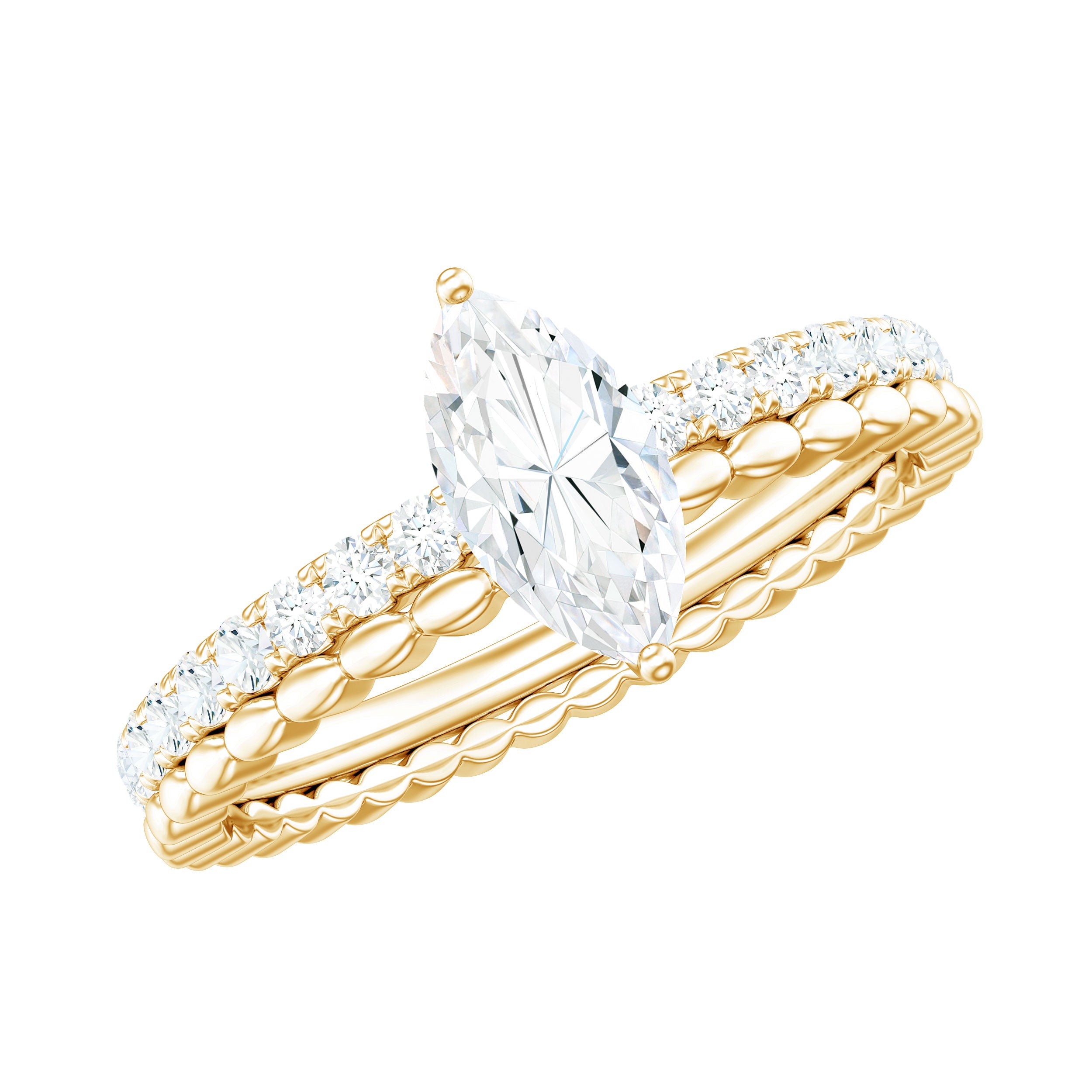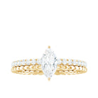 Win her heart with the stunning details of this Solitaire Engagement Ring, featuring a 4X8 MM Marquise Cut Moissanite (D-VS1 quality) securely set in 2 prongs. This unique and artistic touch, with shank embellished with a row of surface prong set round cut moissanites for a constant sparkle, closed with the other displays delicate scalloped metal motifs for a contemporary vibe. Together, these elements in this Big Moissanite Engagement Ring create the look of a stackable ring while ensuring the comfort of a single band. Designed to symbolize everlasting love, this Marquise Moissanite Ring is perfect for the bride who values elegance, uniqueness, and timeless beauty. It comes beautifully packaged in a premium jewelry box, ready to be gifted and cherished for a lifetime. Made with precision and style, the Marquise Engagement Ring is offered in various metal types and colors, providing a luxurious and sustainable symbol of your connection.