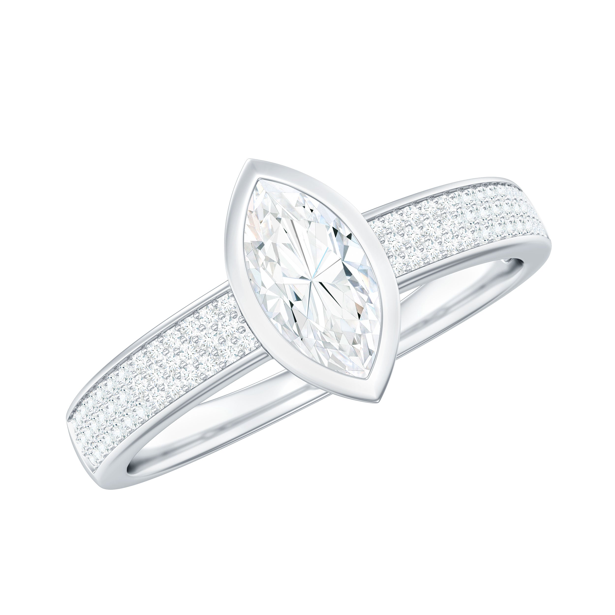 4x8mm Marquise Cut Moissanite Engagement Ring in Bezel Setting