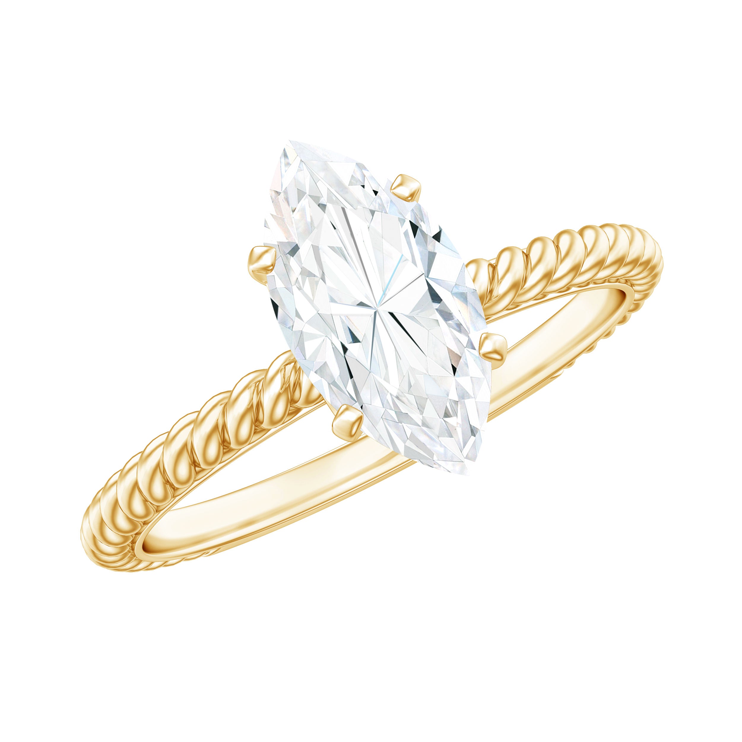 5X10mm Marquise Cut Moissanite Solitaire Engagement Ring with Twisted Rope Shank
