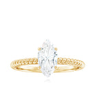Capturing hearts with this Solitaire Engagement Ring, because of its simplicity and unique twisted rope style shank. Its effortless elegance and approachable design resonated widely, making it a standout piece in our collection. Featuring 5X10 mm Marquise Cut Moissanite set at the center in a 4-prong setting. Incorporating a thoughtful element, concealed moissanite stones are delicately positioned beneath the central stone, an intimate feature that introduces unexpected brilliance and sentimental allure, akin to a whispered vow in this 1 Carat Engagement Ring. This delicate detail imparts a handcrafted essence to the Moissanite Solitaire Ring, distinguishing it from conventional designs. Carefully crafted for the ones who appreciate beauty and significance, this Marquise Cut Moissanite Ring serves as a delightful option for proposals, anniversaries, or even as a special gift for oneself. It is offered in a variety of metal colors and purity levels and is presented in an exquisite jewelry box, making it ready for gifting or personal enjoyment. Romantic, elegant, and refreshingly unique, this Womens Moissanite Ring is intended for those who believe in love that deepens over time, much like a flourishing garden.