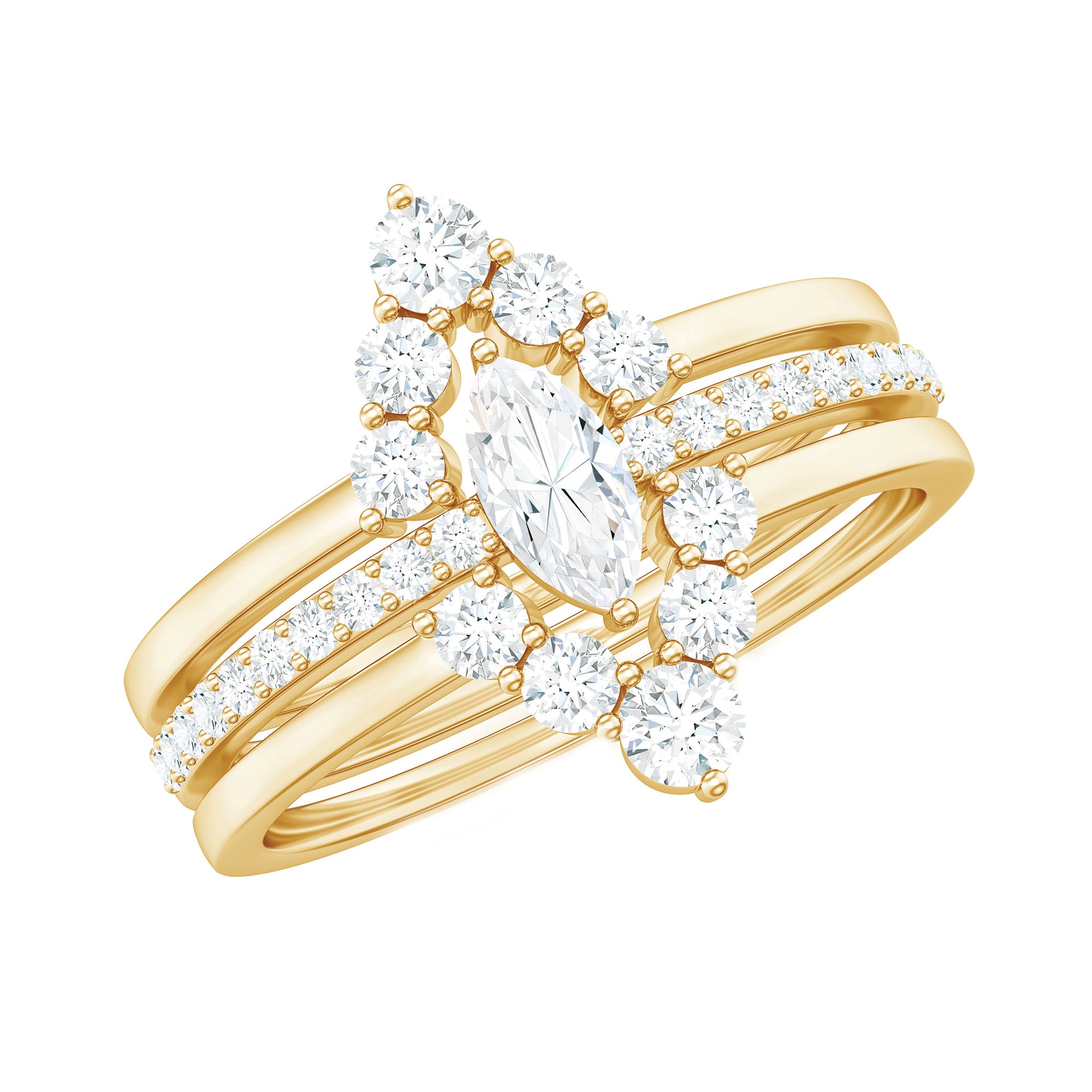 Marquise Cut Moissanite Solitaire Trio Ring Set
