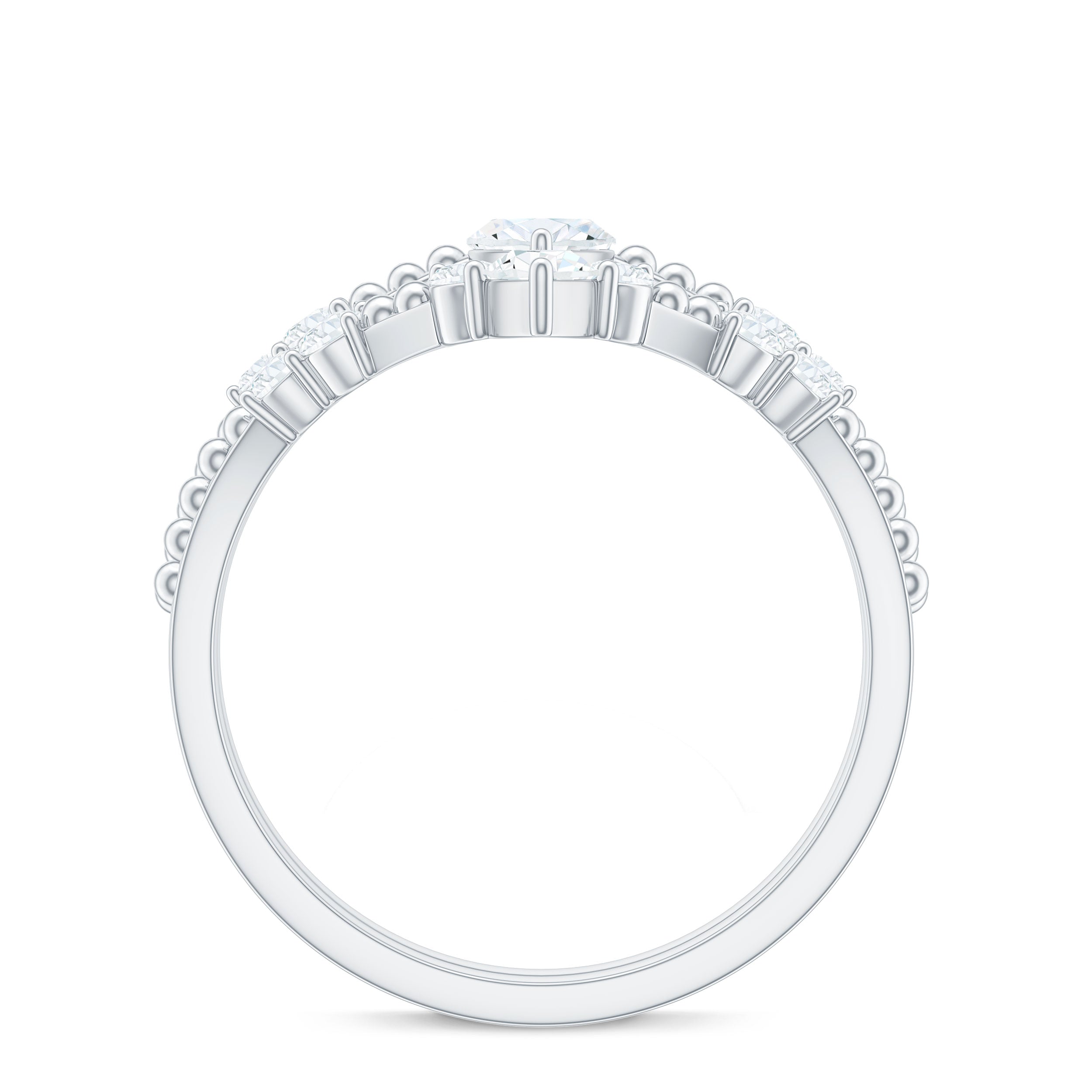 Marquise Cut Moissanite Wedding Ring Set with Beaded Detail