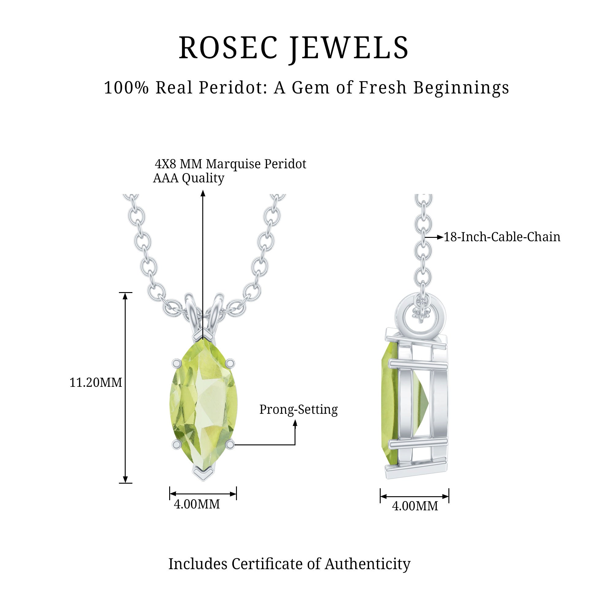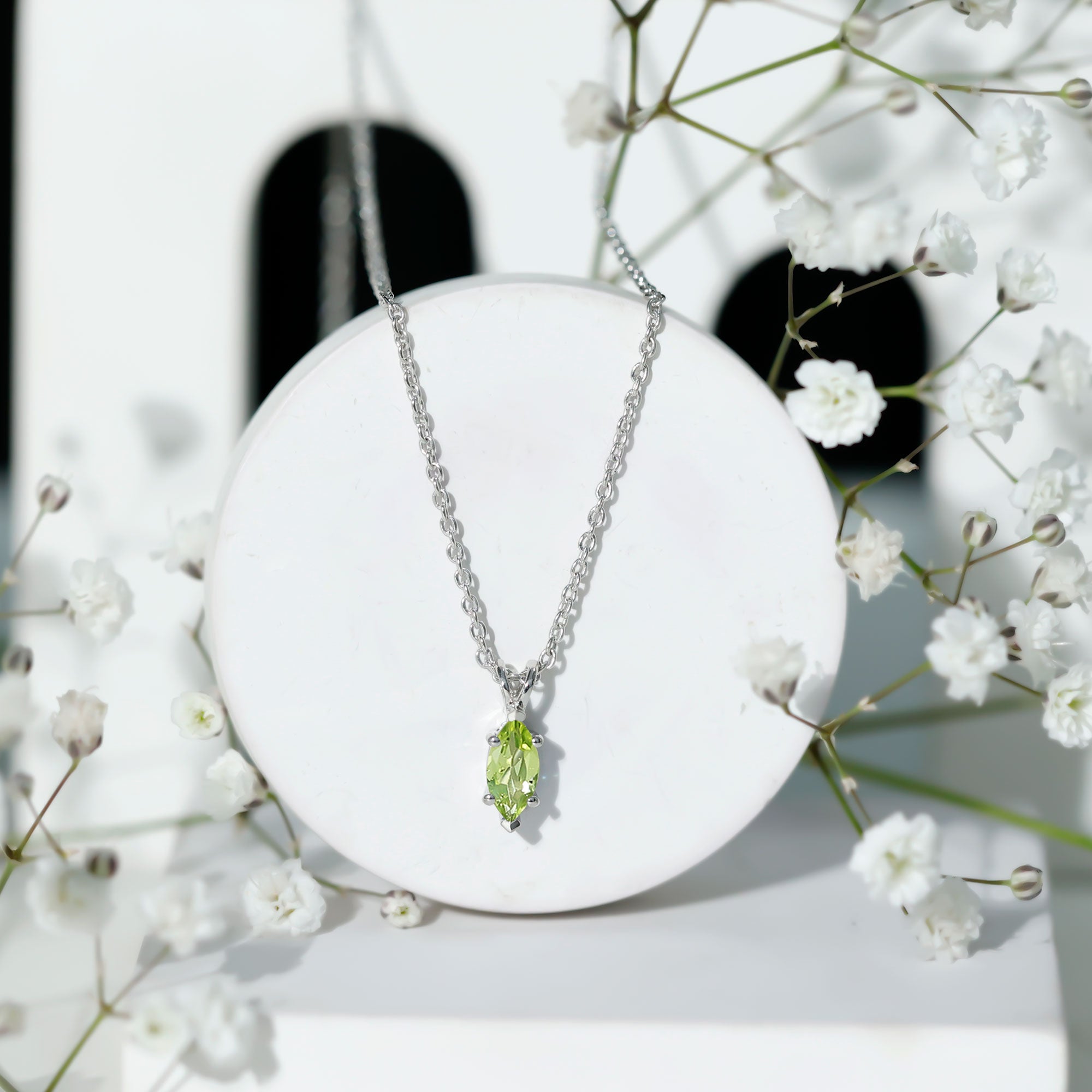 Marquise Cut Peridot Birthstone Necklace with Silver Chain