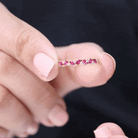Celebrate enduring love and timeless beauty with this Half Eternity Ring adorned by Marquise Shape Ruby and Diamond. The captivating blend of these gemstones infuses an enchanting allure, offering a touch of magic and charm to your style. Each Marquise Ruby and Diamond are meticulously set, creating a dazzling and classic pattern that complements any look.