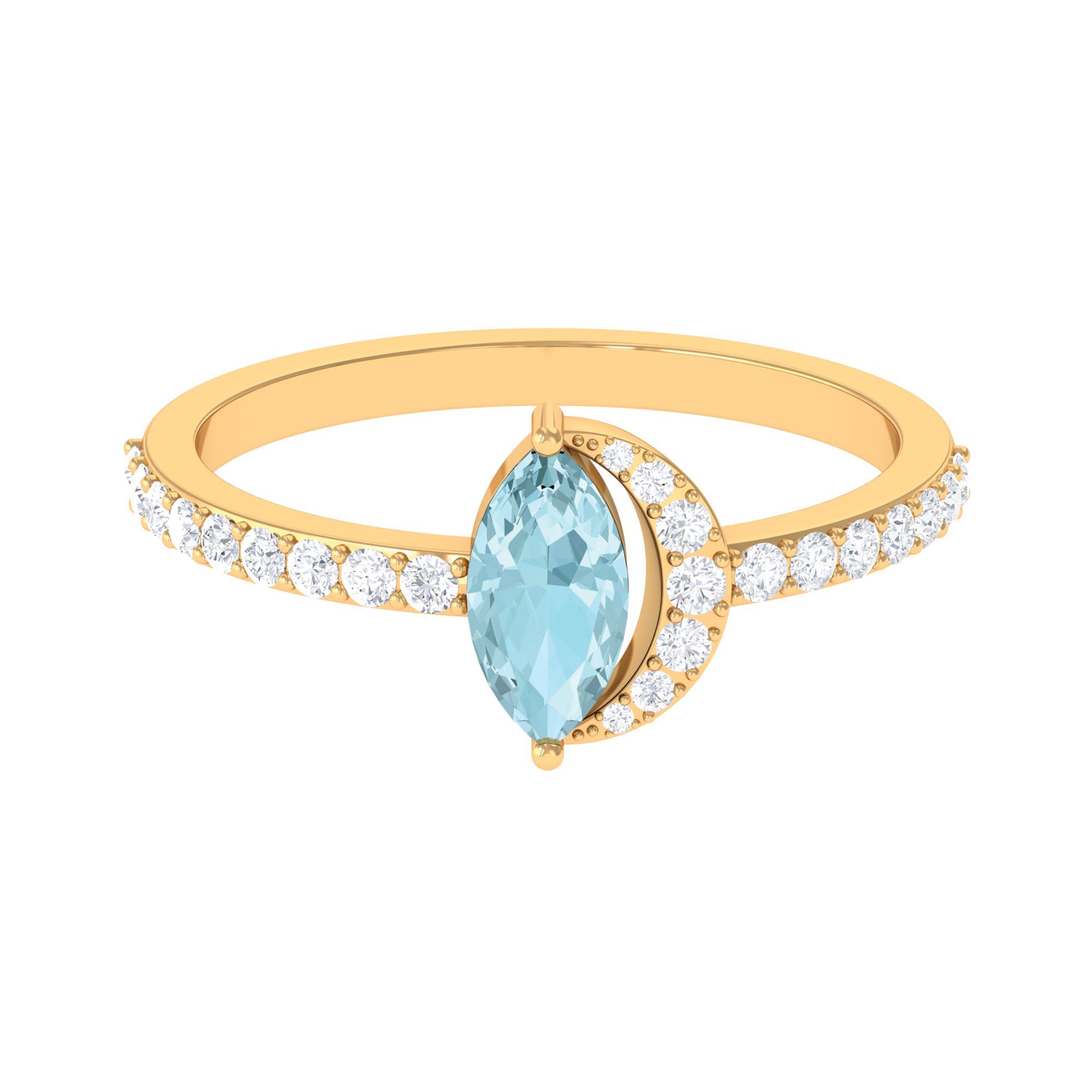Elevate your style with a marquise-cut sky blue topaz and Diamond minimal ring, exuding elegance and sophistication in its simplicity.