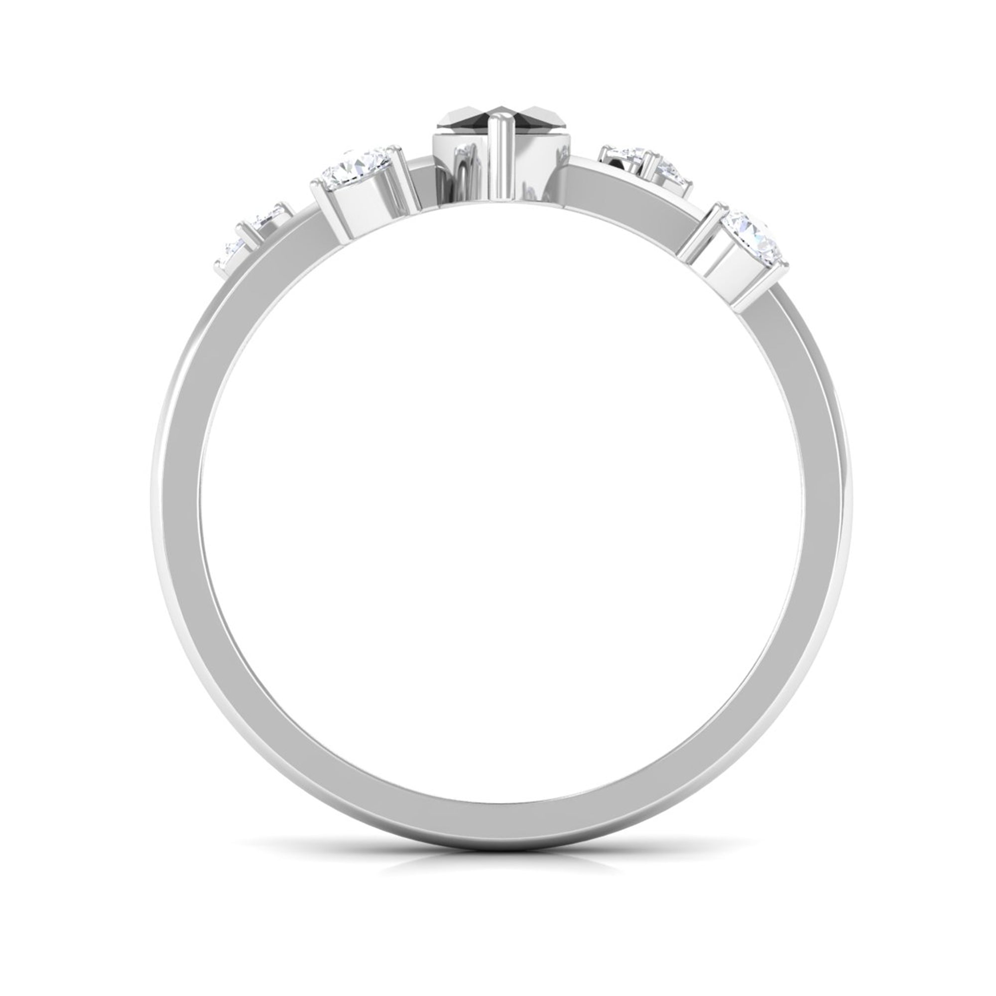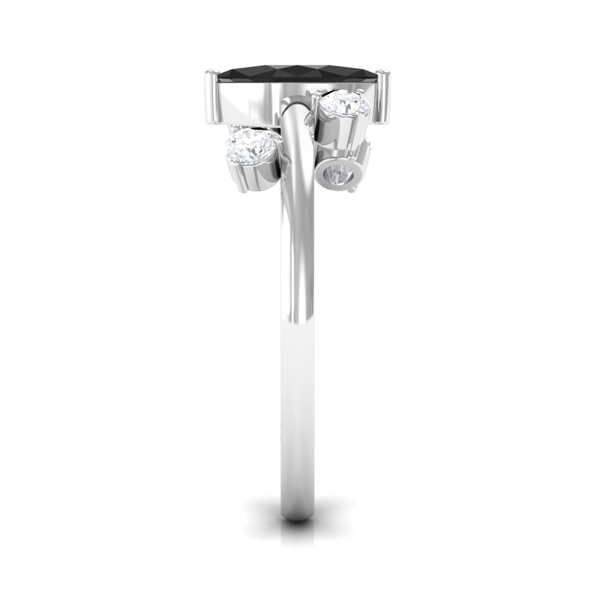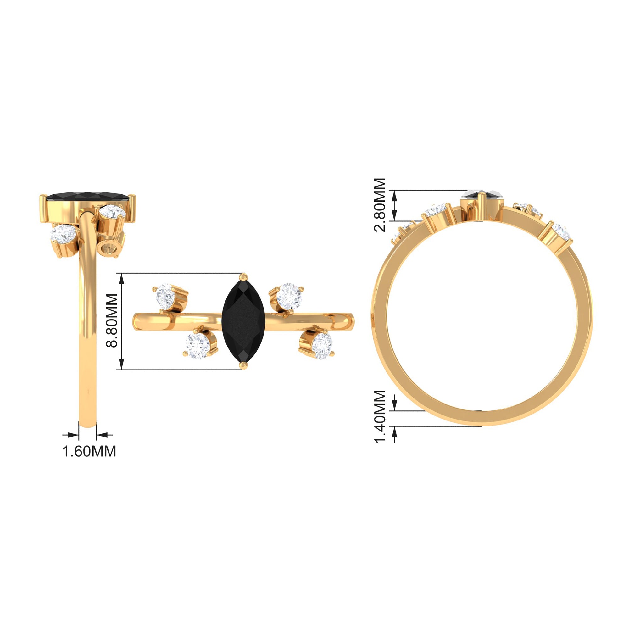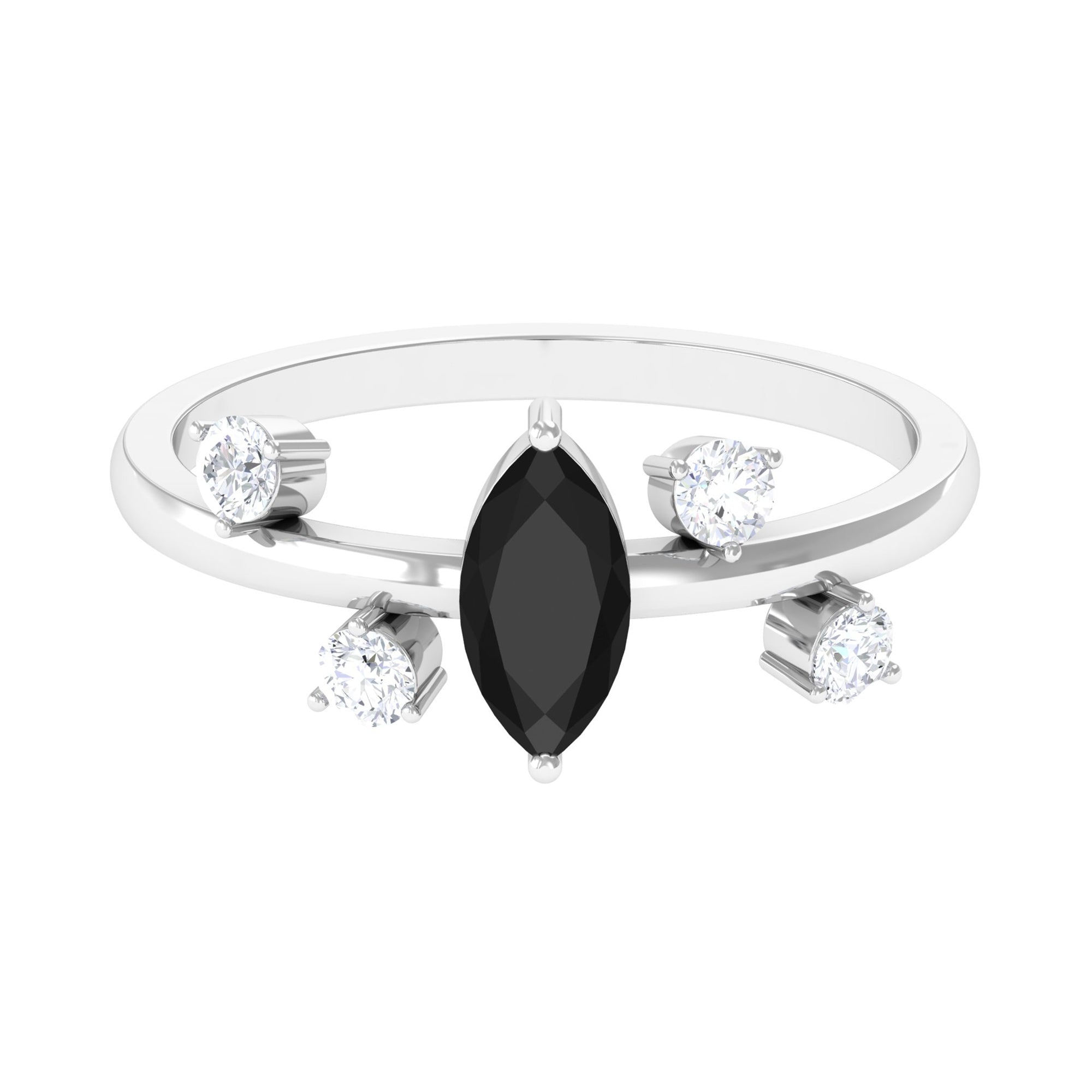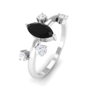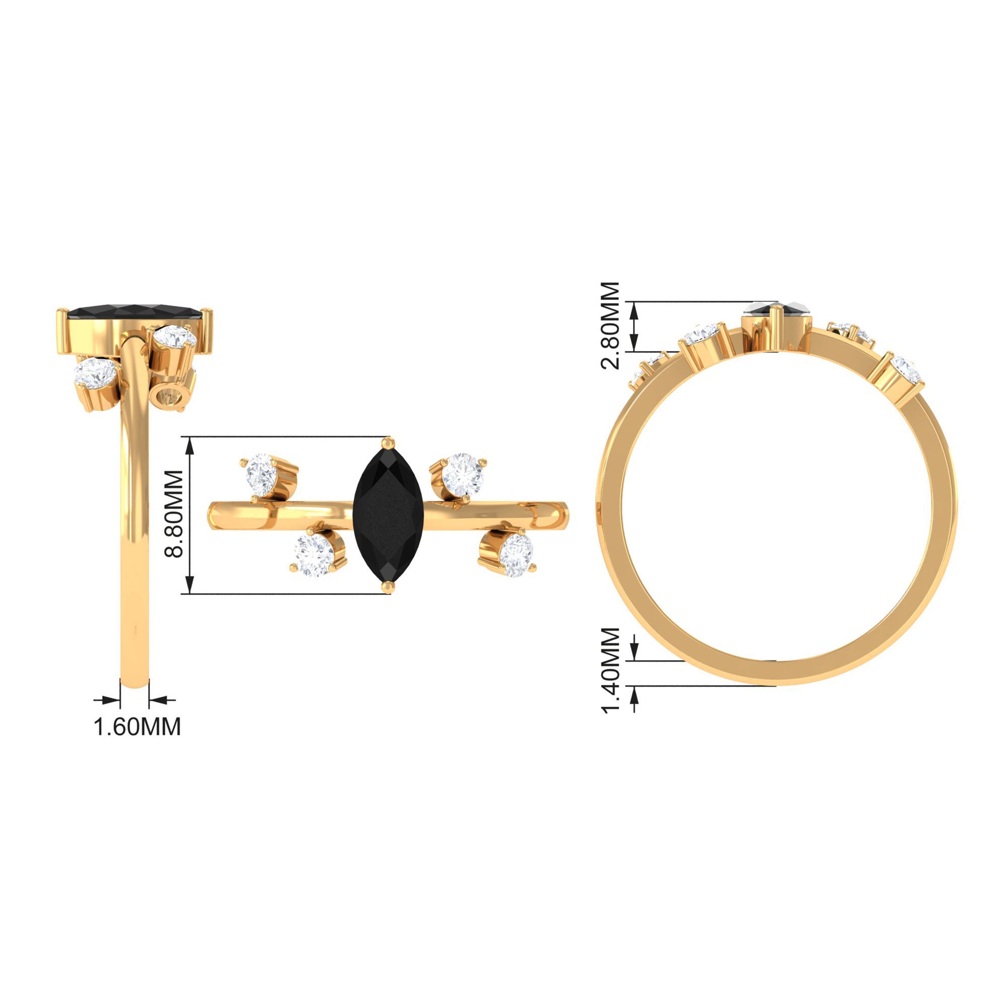 Marquise Cut Solitaire Black Spinel Ring with Scatter Diamond