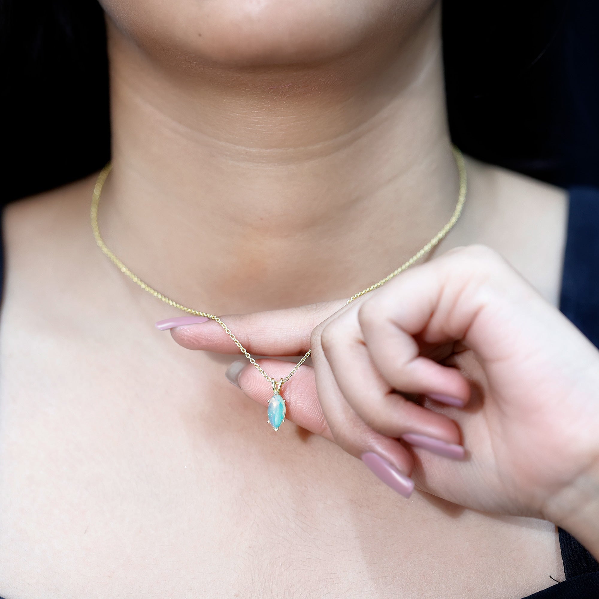 Marquise Cut Solitaire Ethiopian Opal Birthstone Necklace with Chain