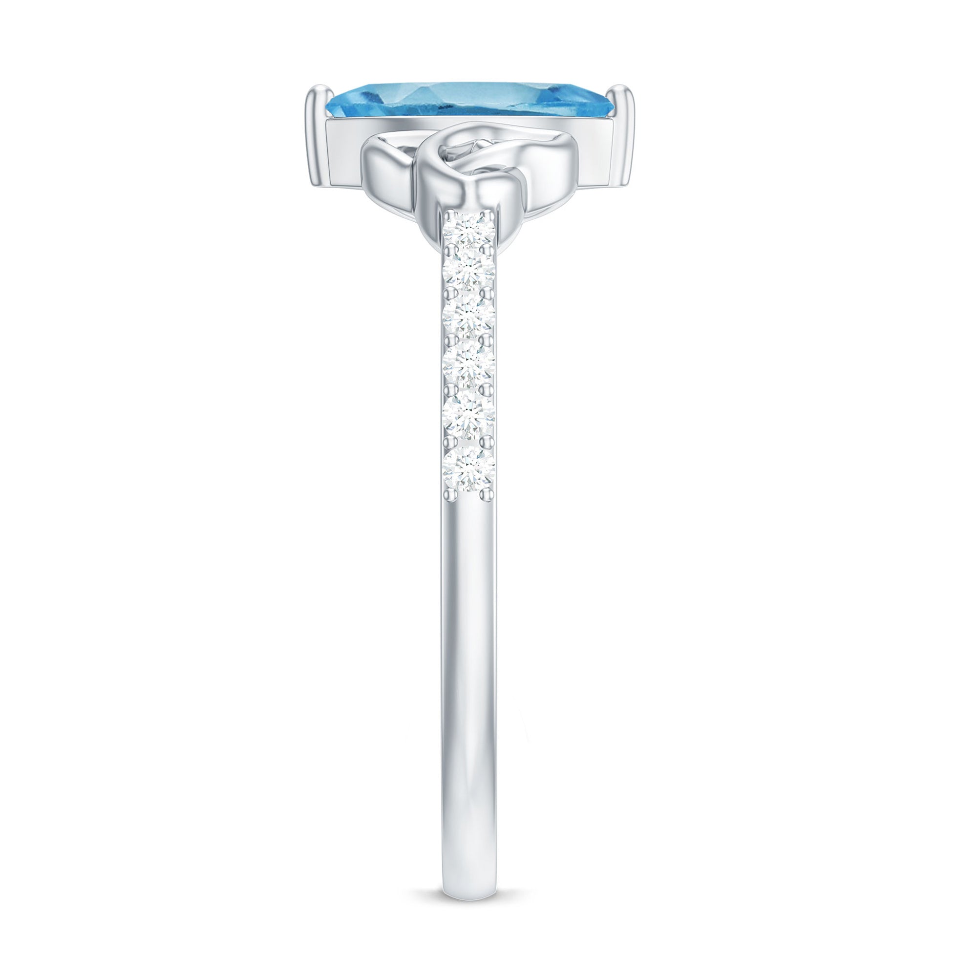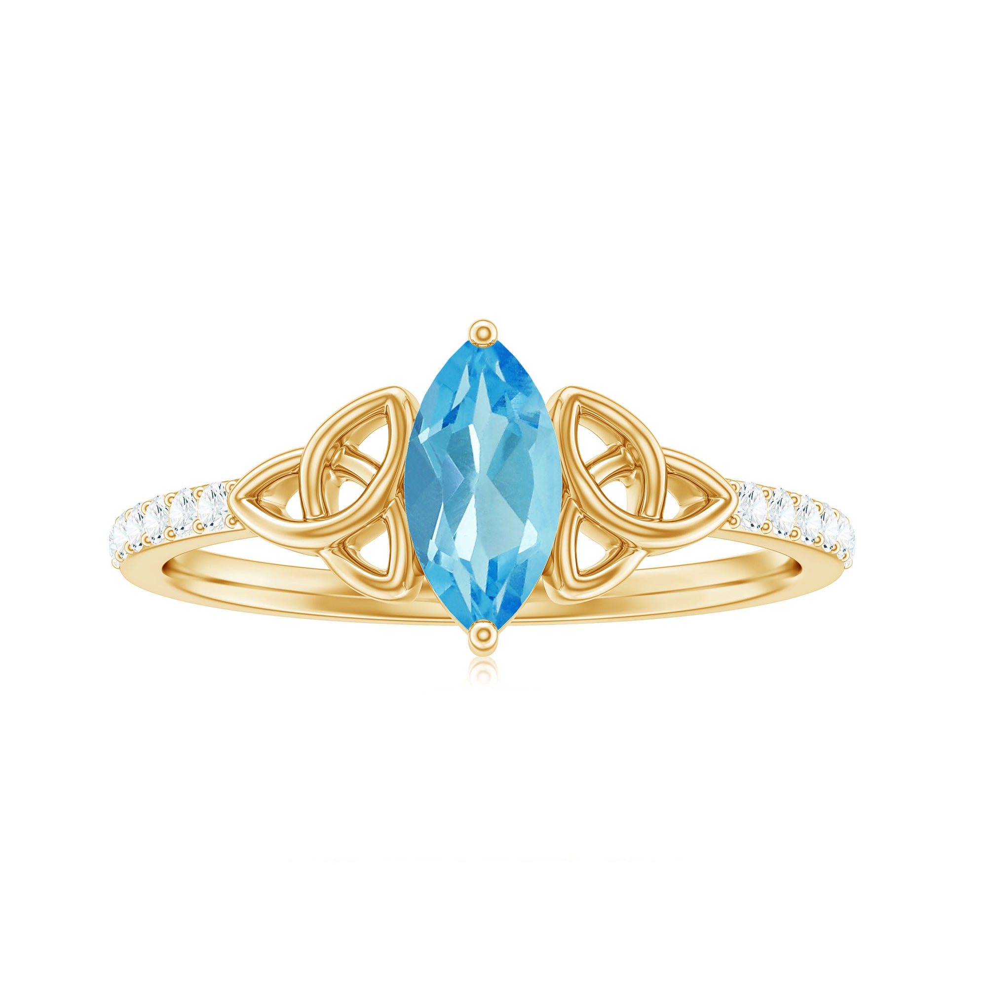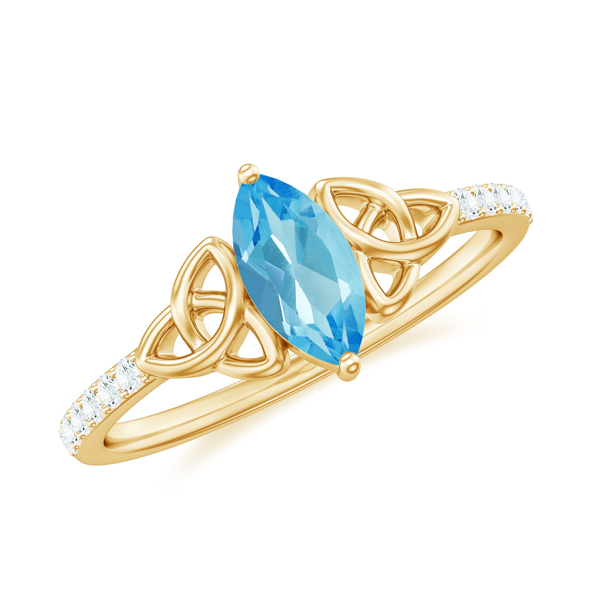 Marquise Cut Swiss Blue Topaz Solitaire Celtic Ring with Diamond