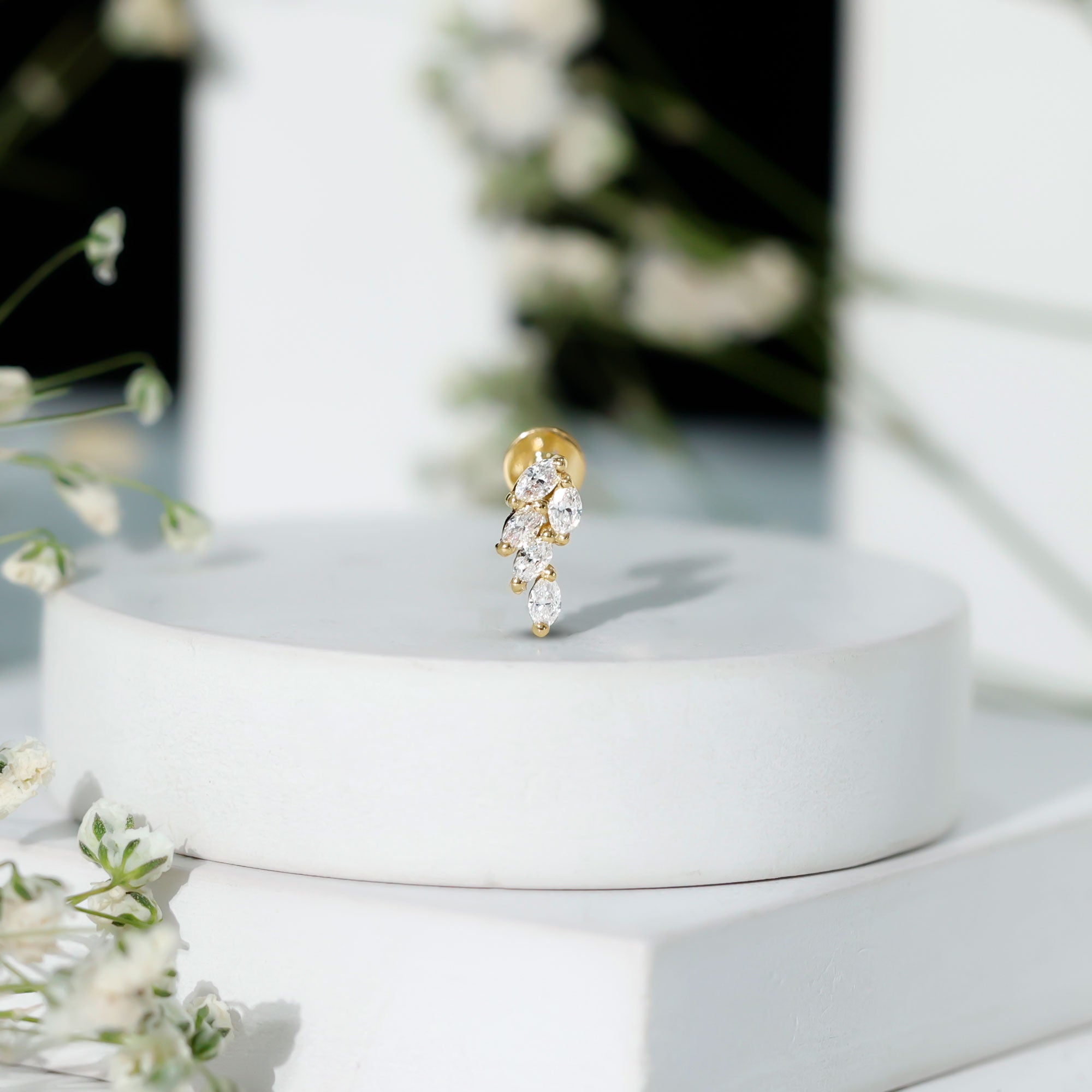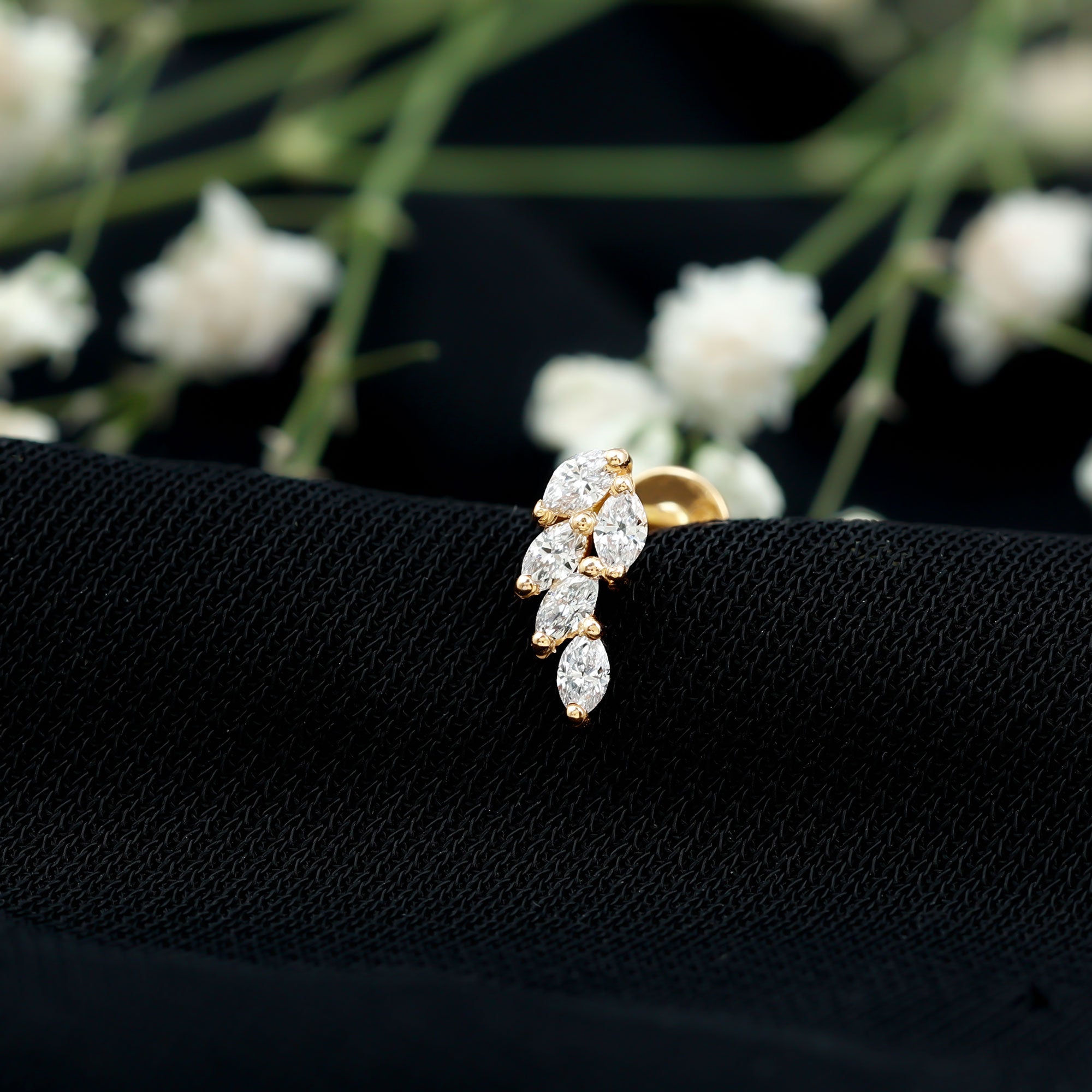 Marquise Diamond Leaf Cluster Earring for Helix Piercing