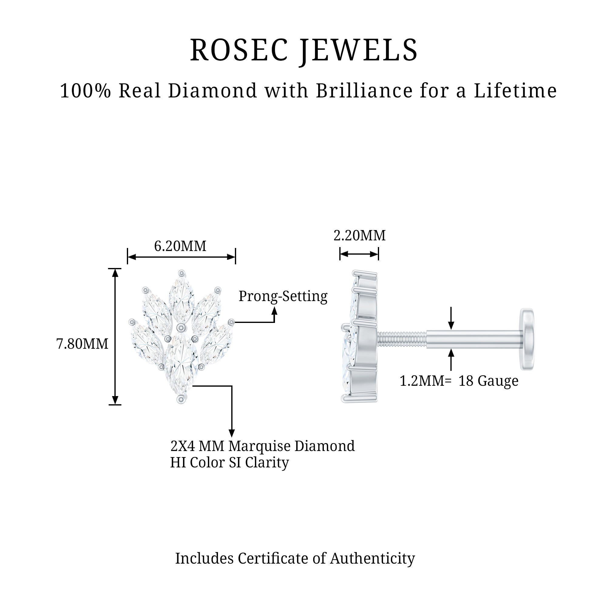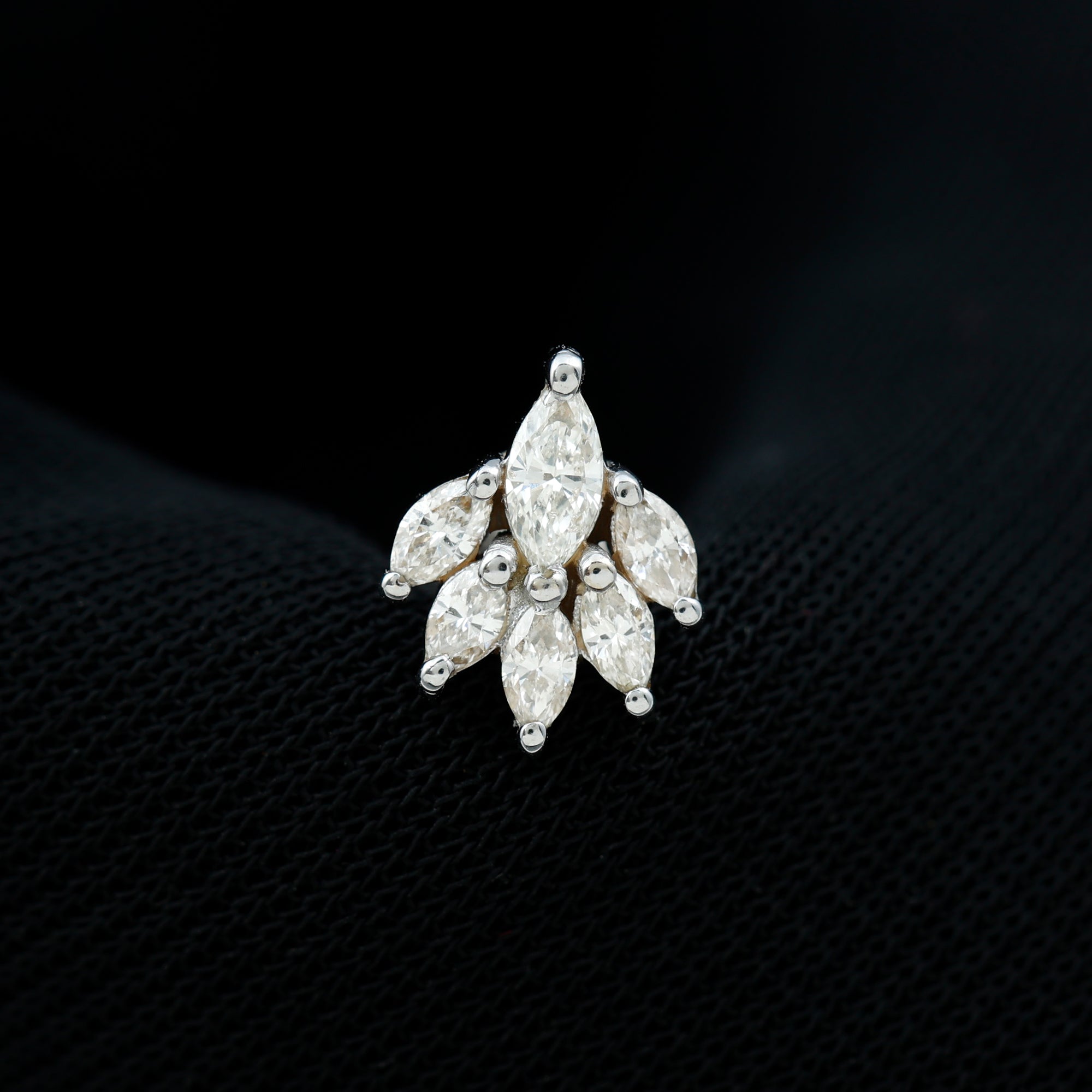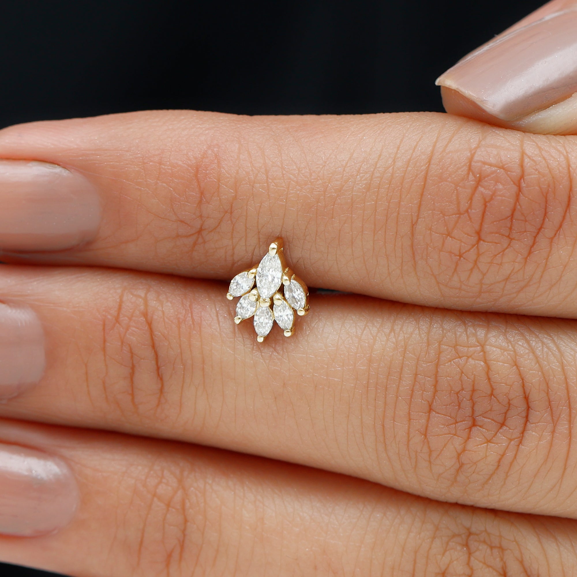 - You can style this Marquise Diamond Earring on your helix, cartilage, or upper lobe piercing. The Flat back closure will keep it secured in place.