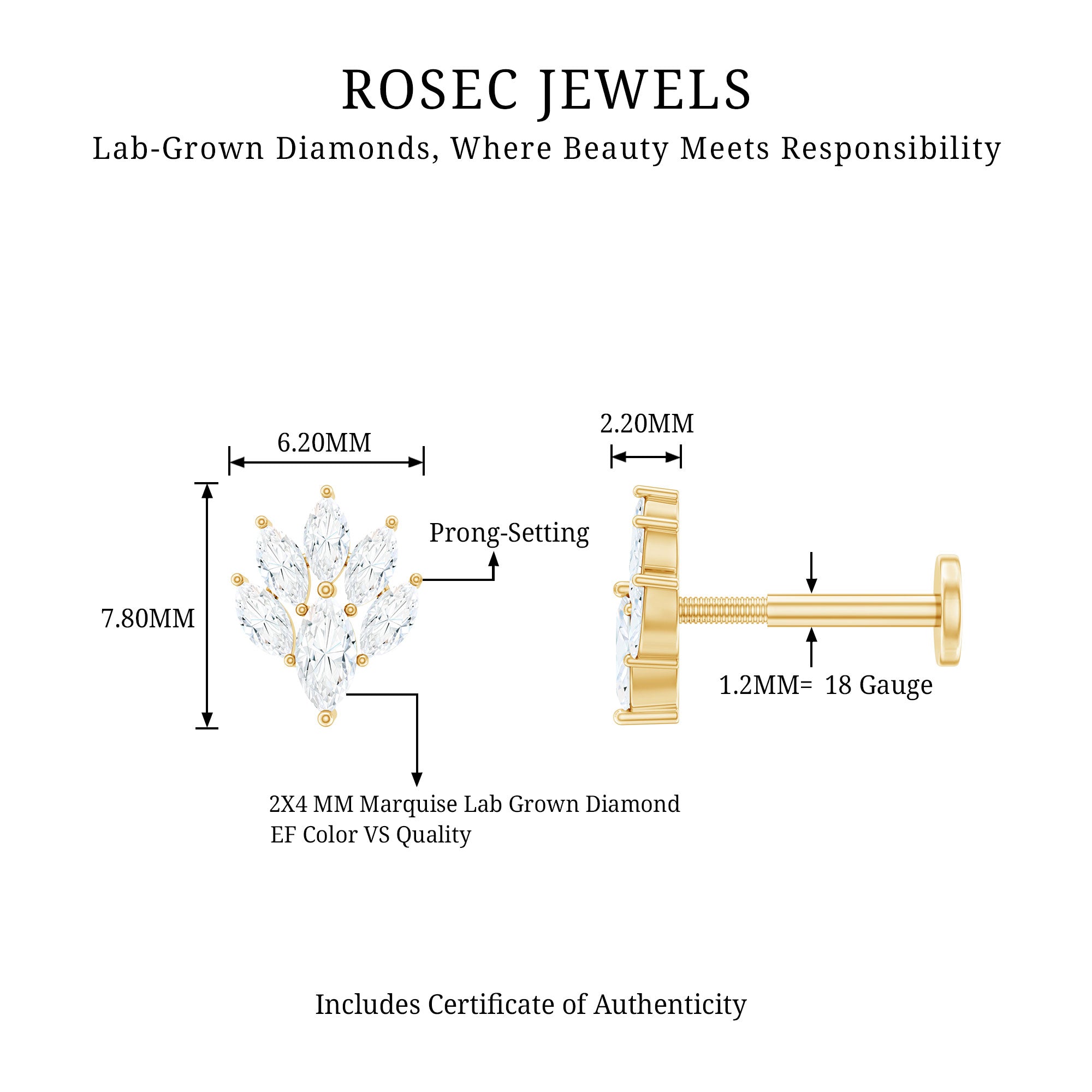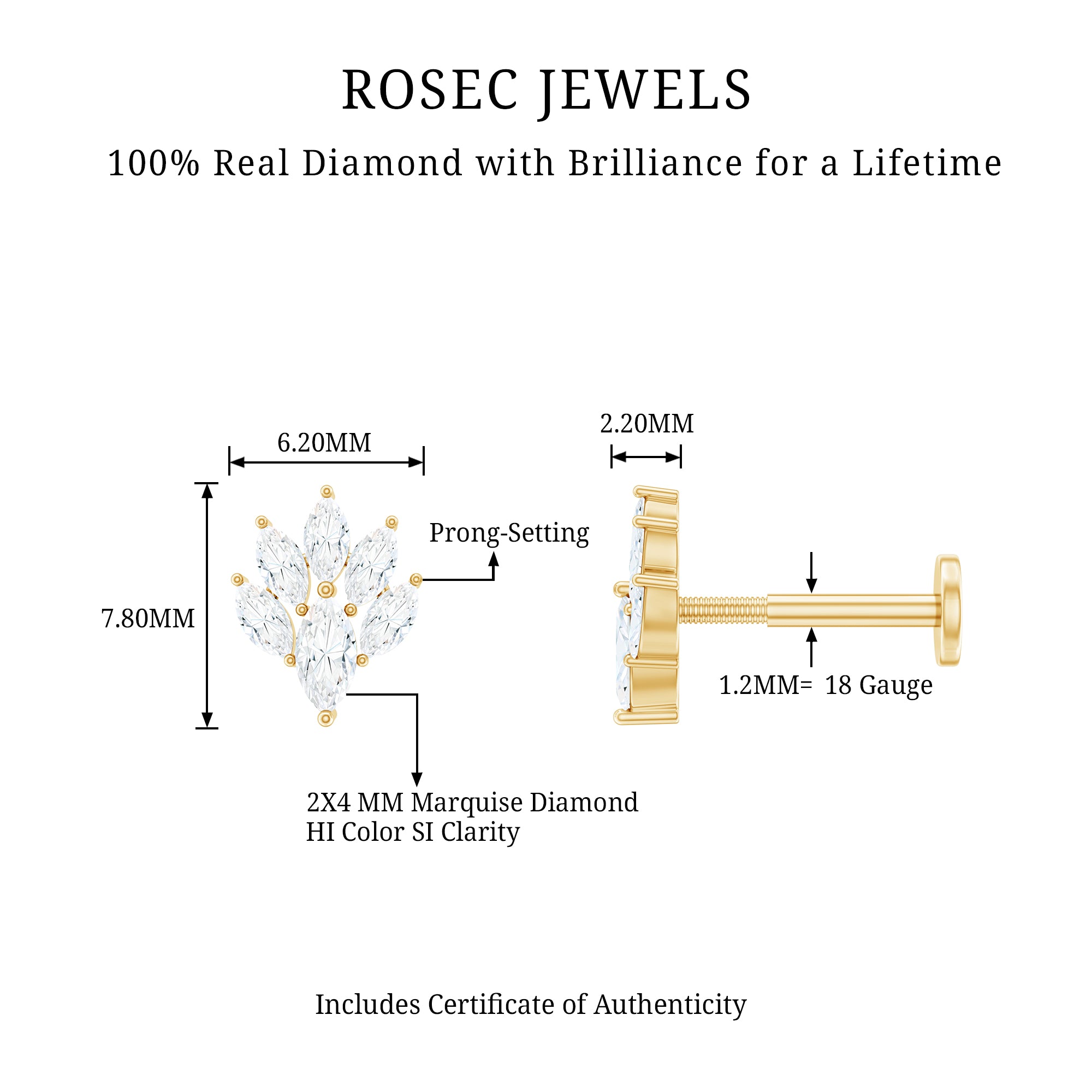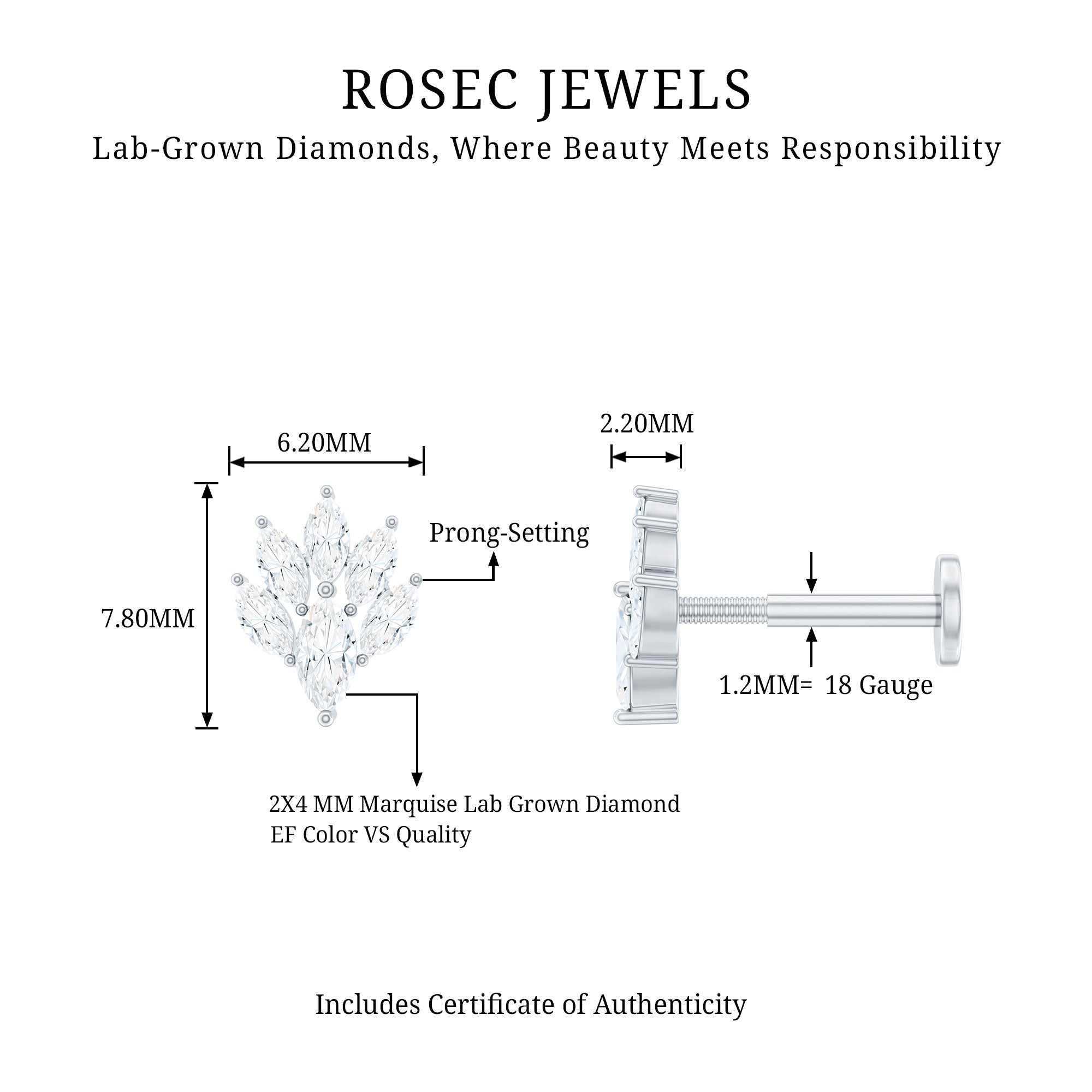 - You can style this Marquise Diamond Earring on your helix, cartilage, or upper lobe piercing. The Flat back closure will keep it secured in place.