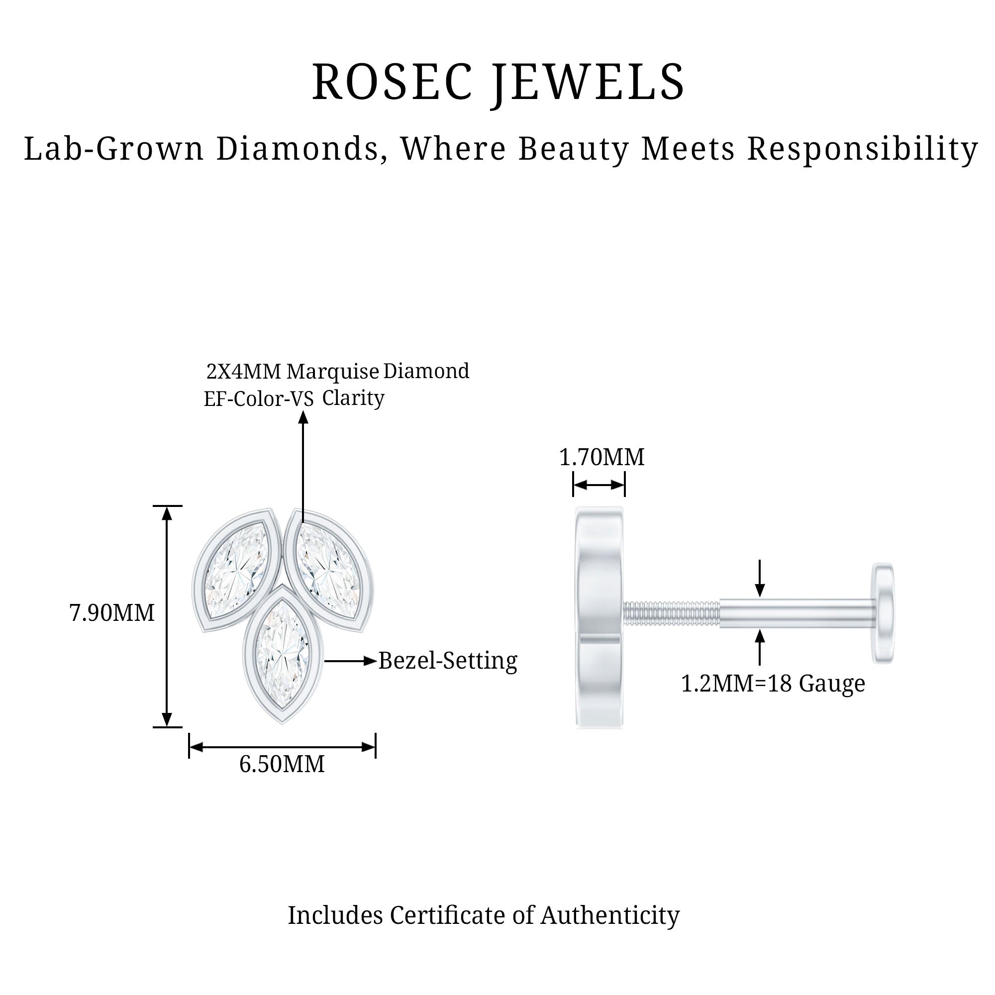 All the best things come in threes, isnt it. The Three Diamond Cluster Earring is super chic and simple. This earring features Certified Diamonds secured by Bezel Setting, composed of Precious Metal for a finished appearance. Already have one piercing. No need to worry, Get this Three Diamond Earring, it is the perfect everyday studs to wear in your high lobes. Or, this stud is the perfect way to add sparkle to your stack - wear it with huggie earrings & chunky hoops for a more statement look. The Flat Back closure provides a secured carrying for all the time these are adorned.