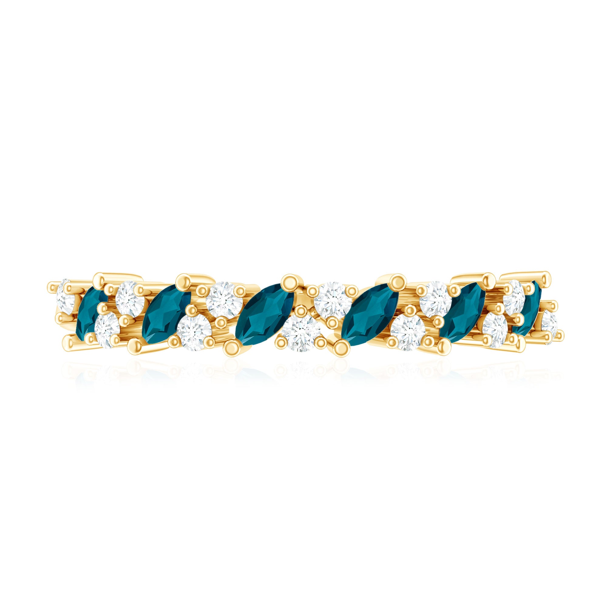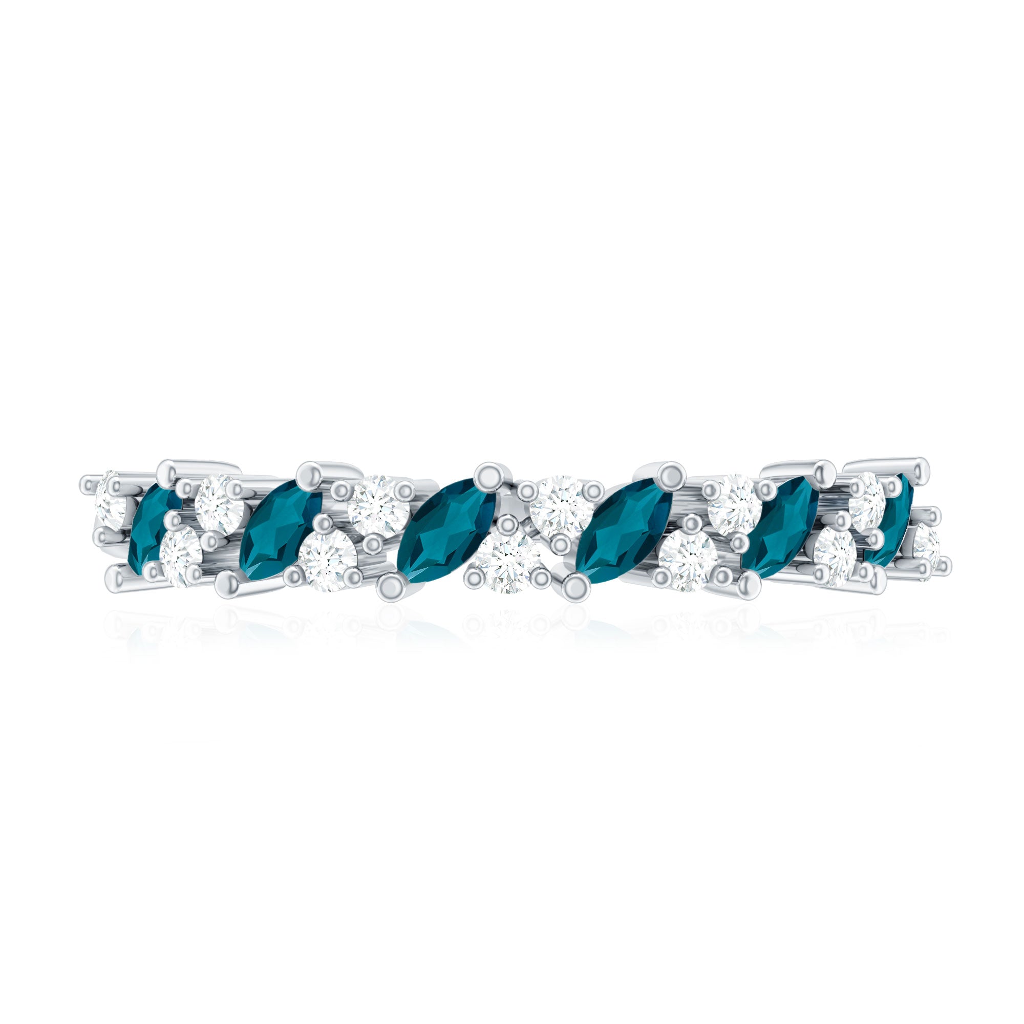 - Marquise London blue topaz: elongated cut with deep, saturated color.