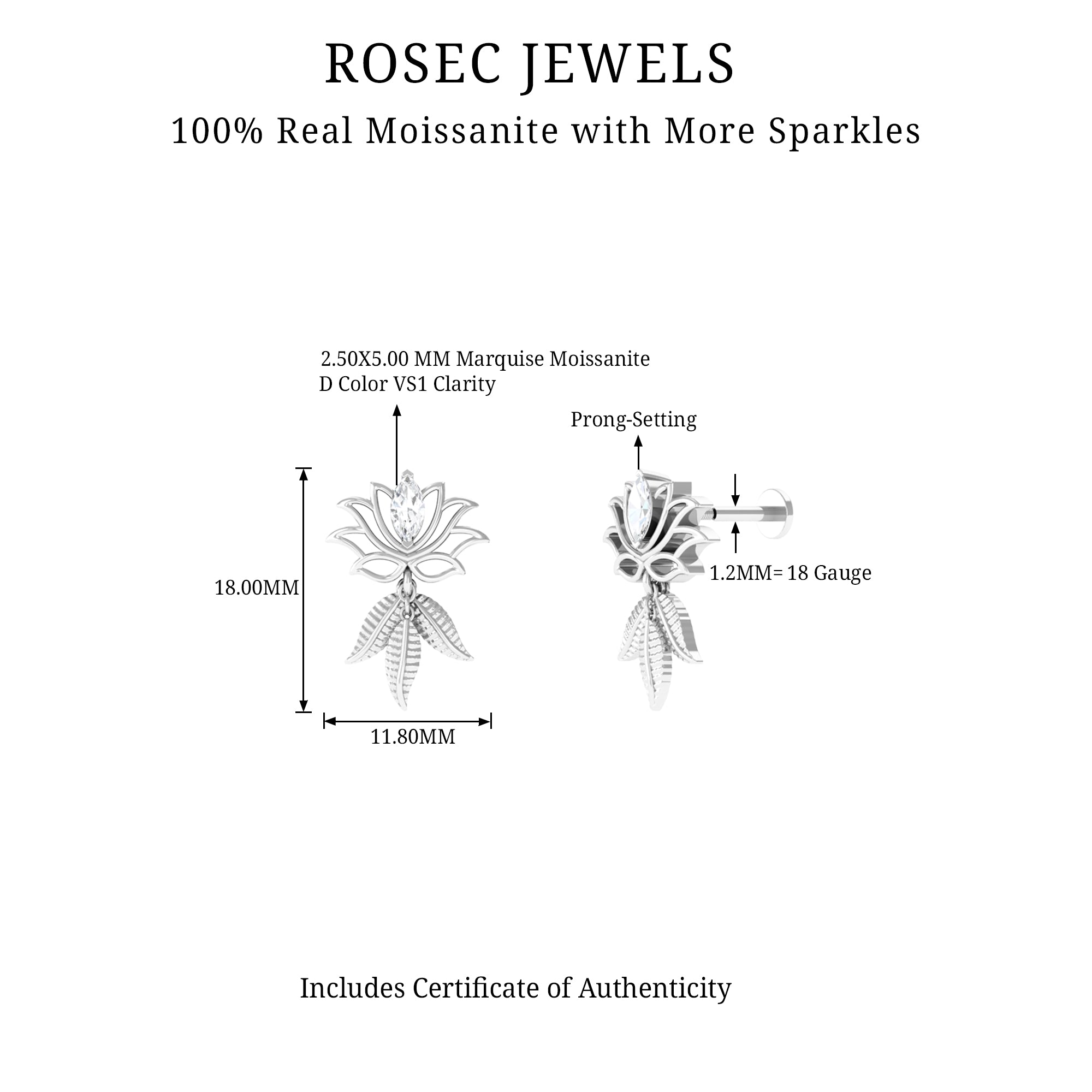 Marquise Moissanite Lotus Drop Earring for Cartilage Piercing