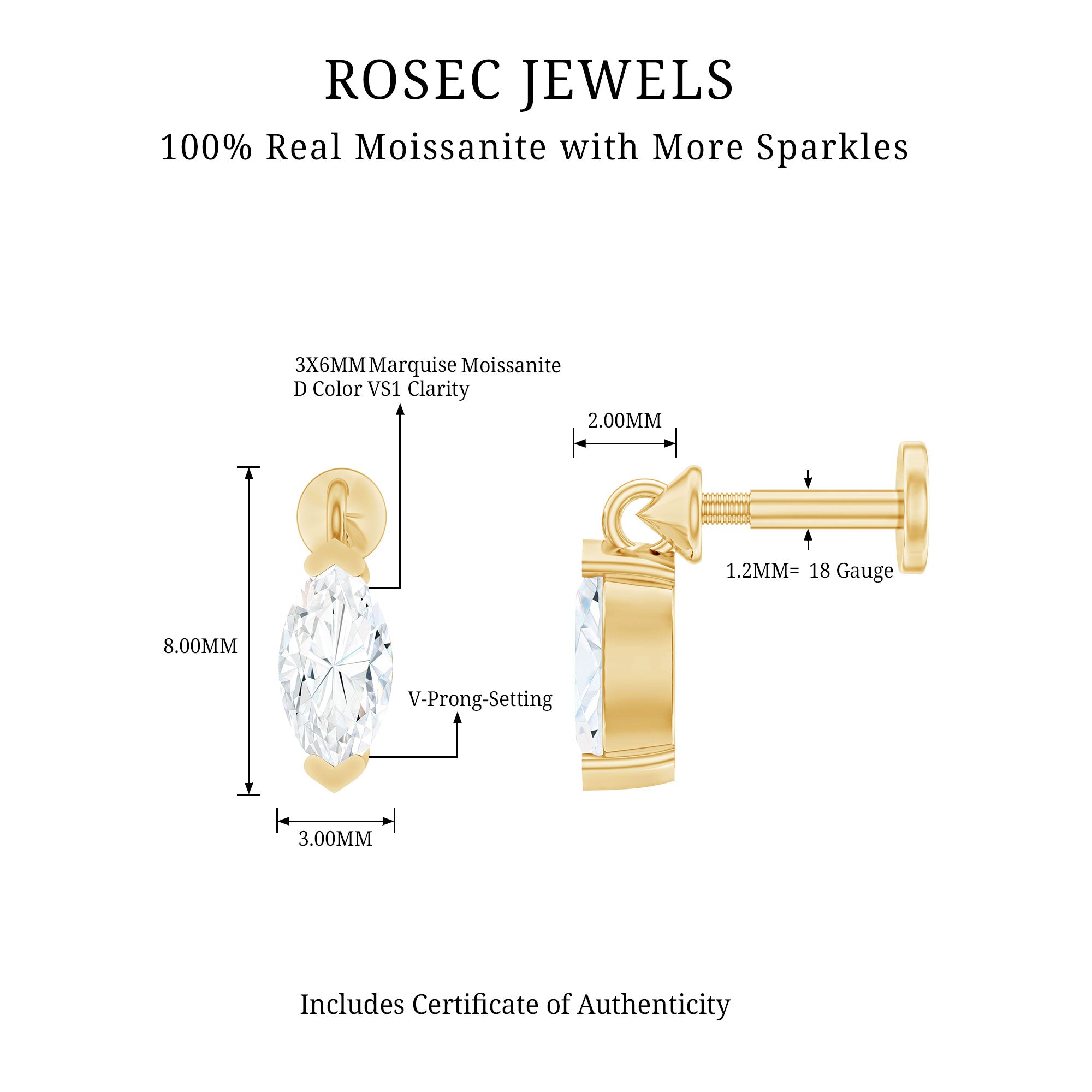 Marquise Moissanite Drop Earring for Tragus Piercing